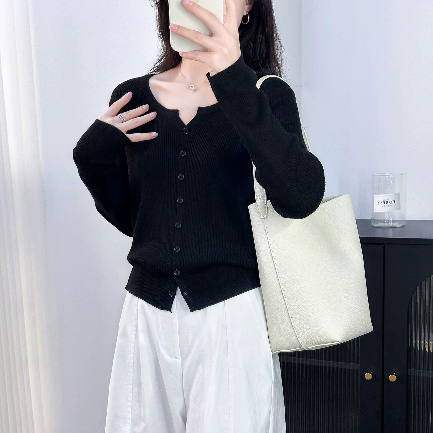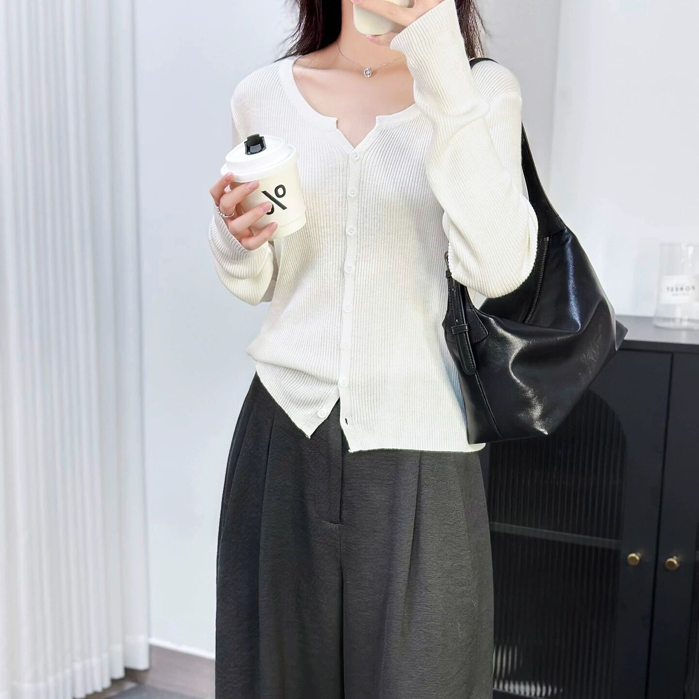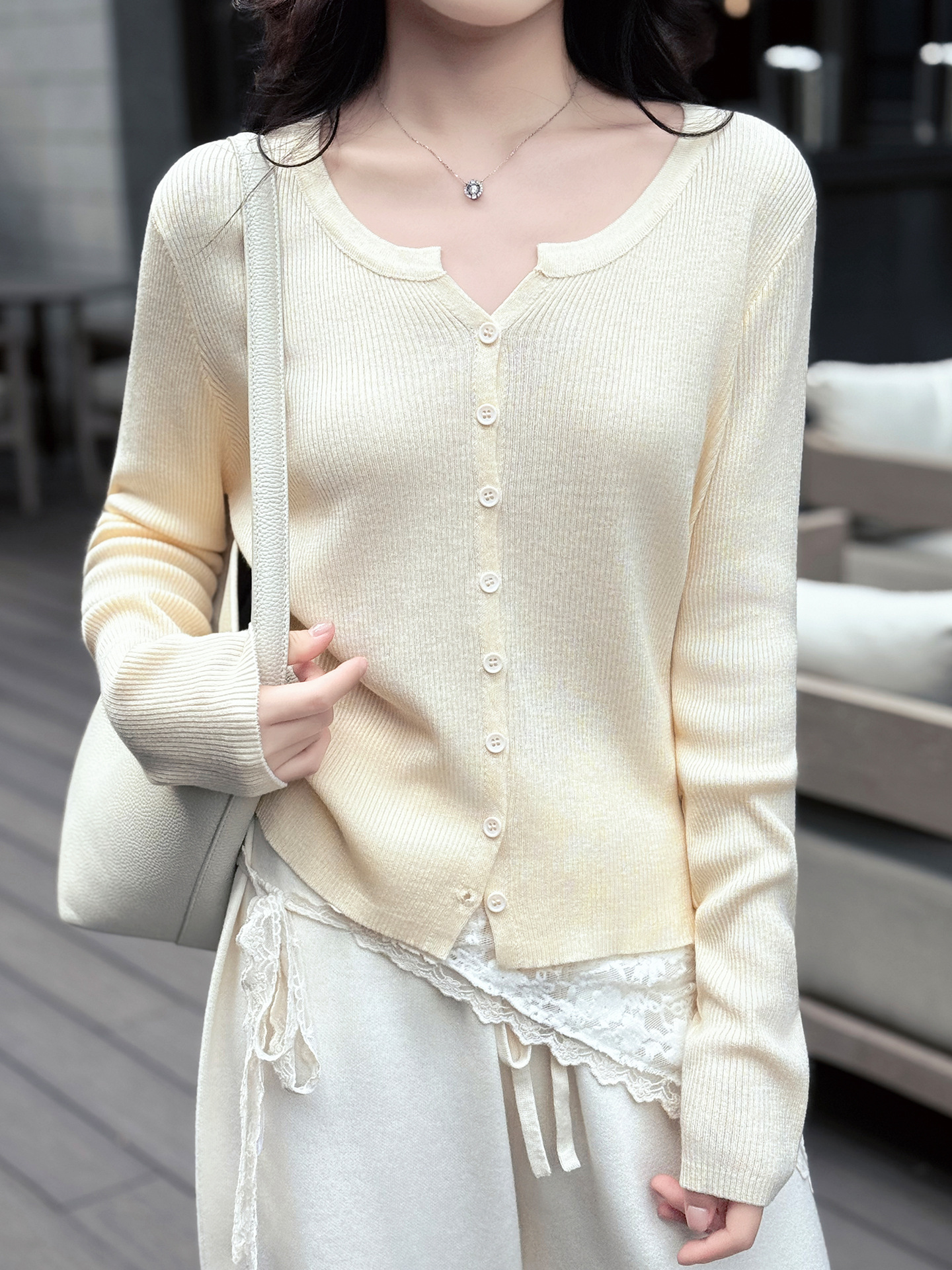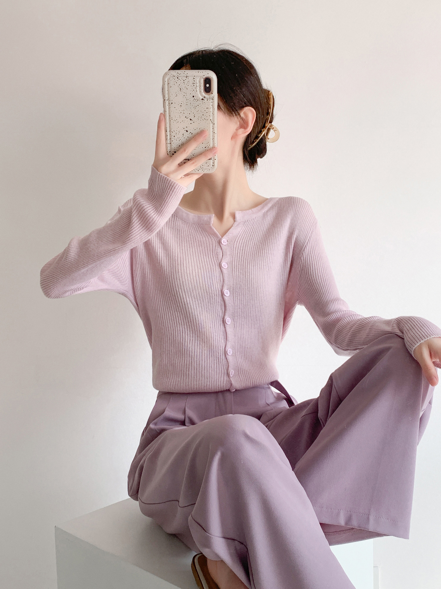 6 울 짧은 니트 가디건 여성 긴팔 2025 루즈하고 다재다능한 라운드 넥 스웨터 재킷 가을용 에어컨 셔츠스토어 가기