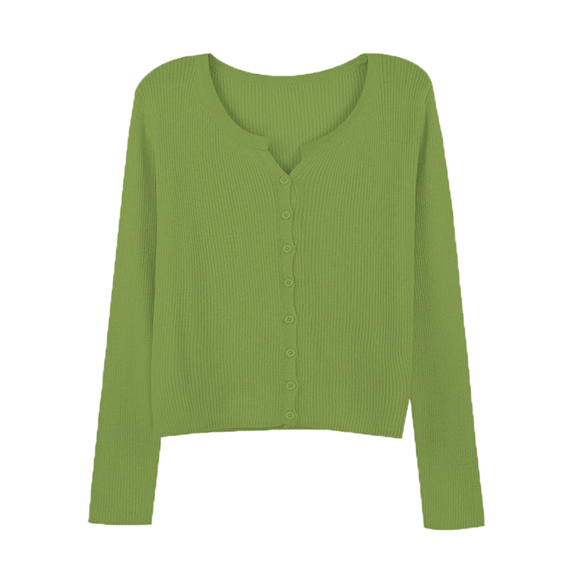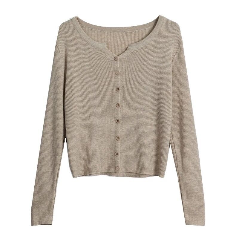 6 울 짧은 니트 가디건 여성 긴팔 2025 루즈하고 다재다능한 라운드 넥 스웨터 재킷 가을용 에어컨 셔츠
