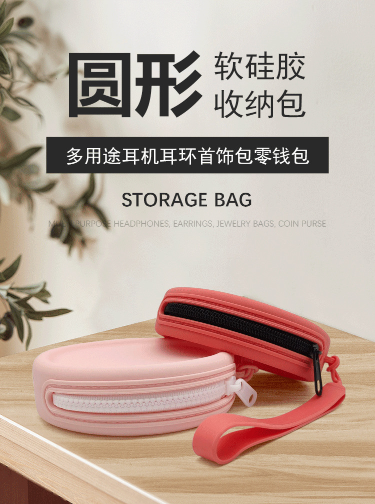 대형 라운드 실리콘 동전 지갑 휴대용 데이터 케이블 헤드셋 보관 가방 방수 및 방진 립스틱 쥬얼리 작은 가방스토어 가기
