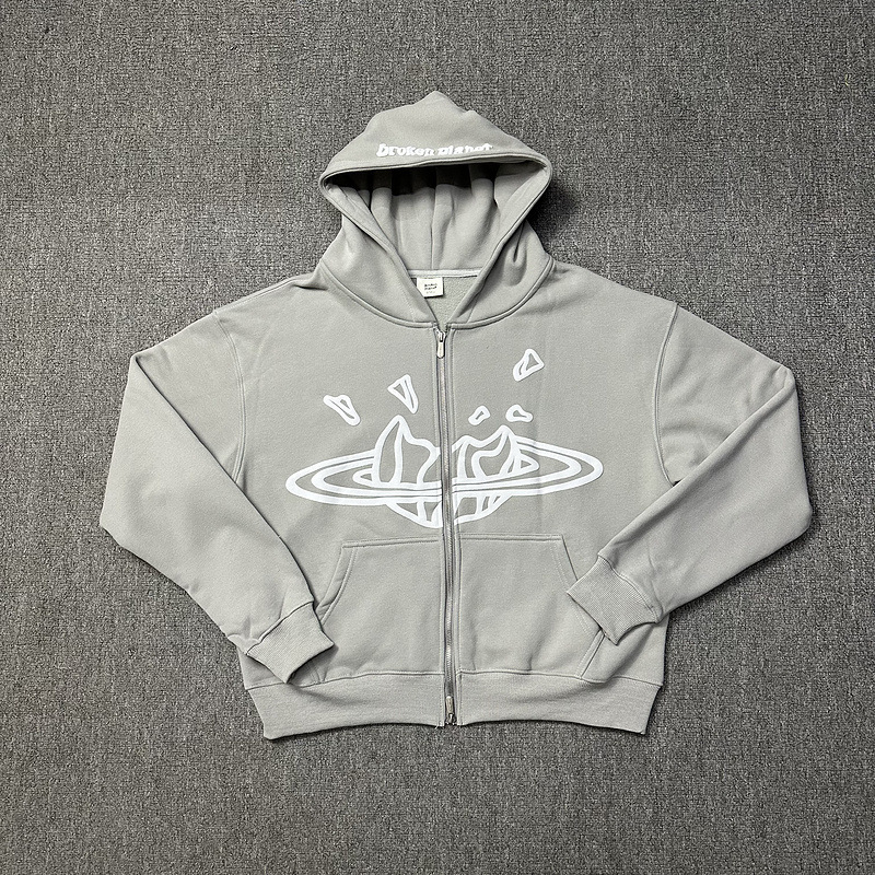 깨진 행성 깨진 행성 공간 회색 인쇄 후드 스웨트 셔츠 세트 미국 패션 브랜드 지퍼 재킷