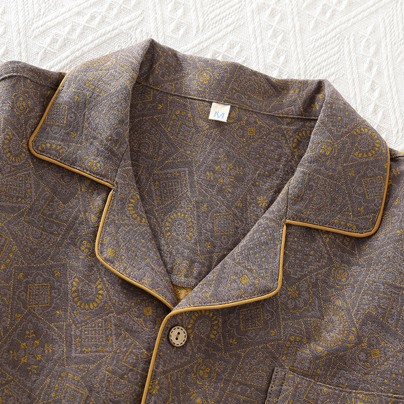새로운 원사 염색 코튼 더블 레이어 거즈 남성 잠옷 봄과 가을 얇은 긴팔 느슨한 겉옷 홈 의류 도매