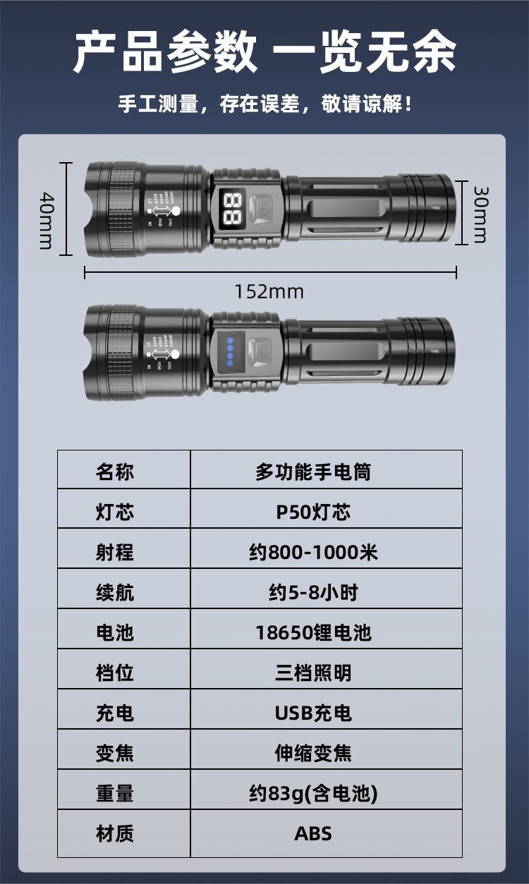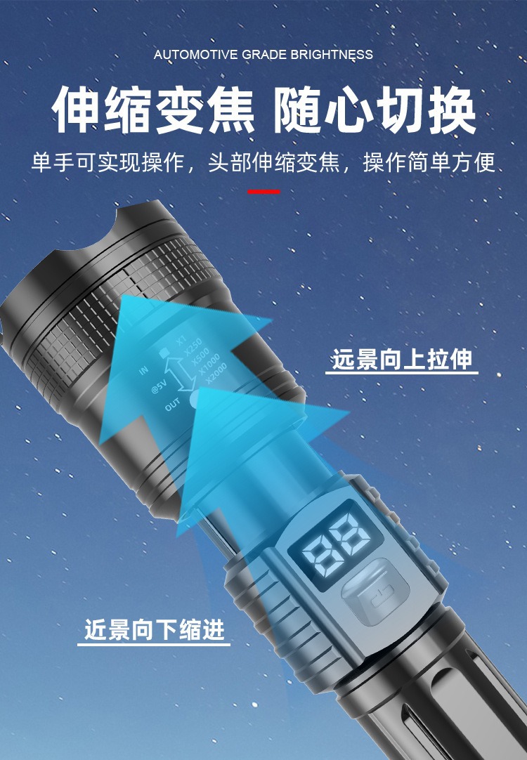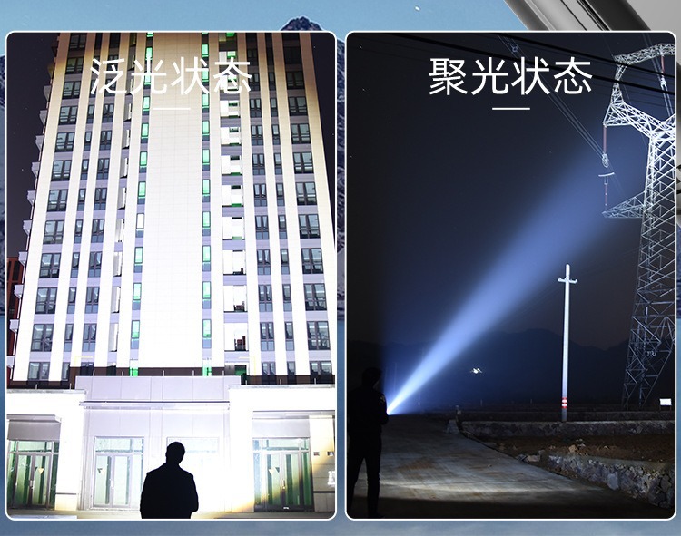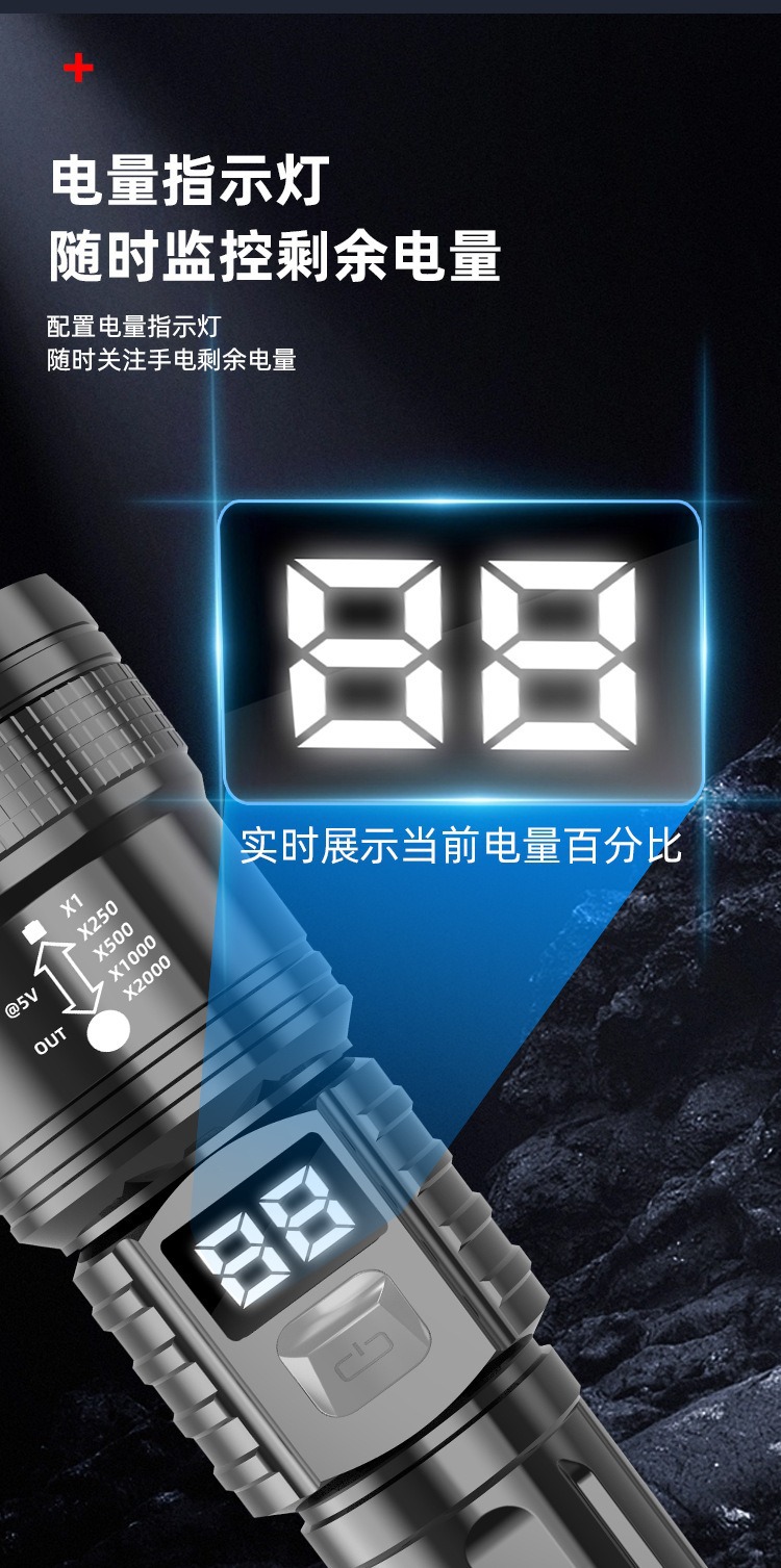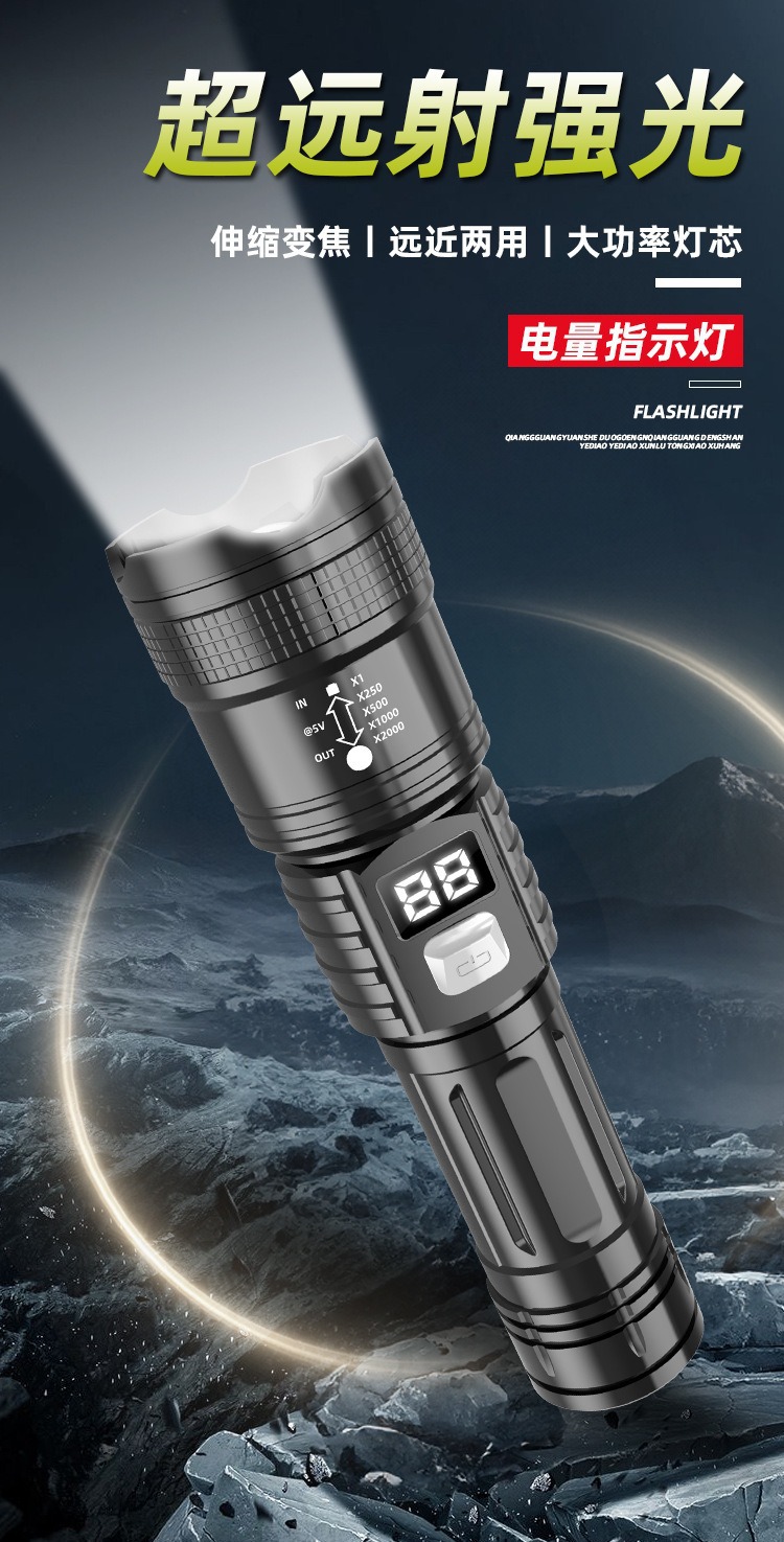 국경 강한 빛 디지털 디스플레이 손전등 장거리 충전 야외 휴대용 홈 조명 야간 낚시 비상 손전등