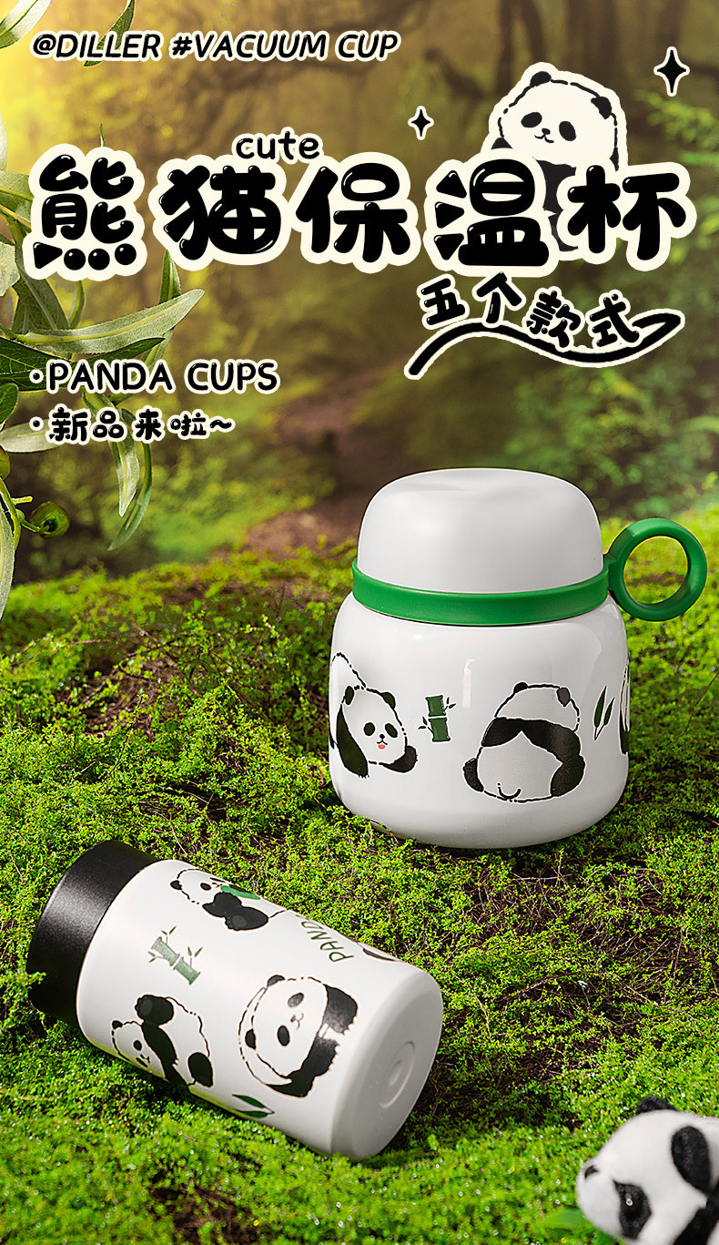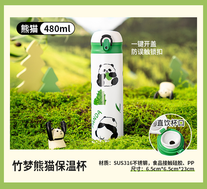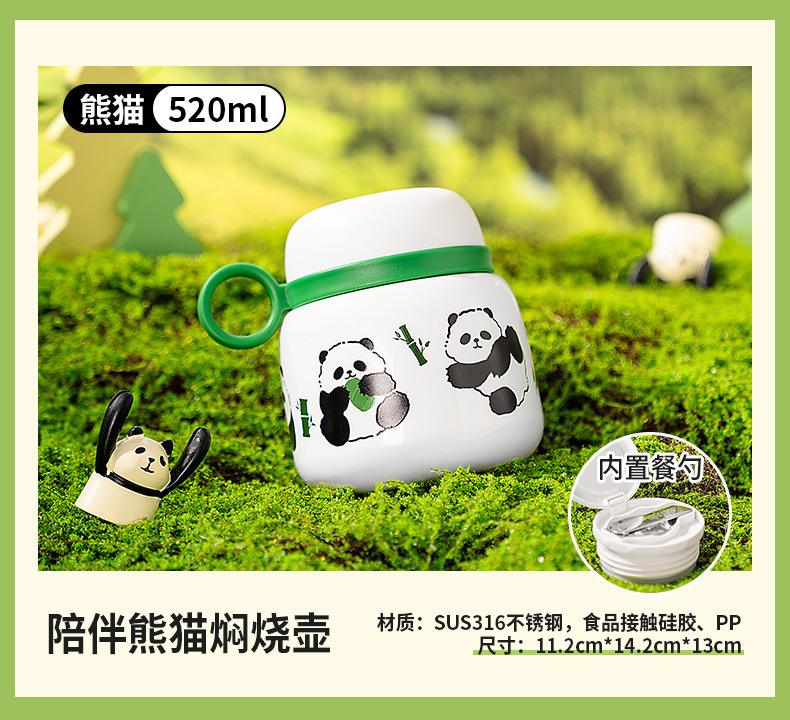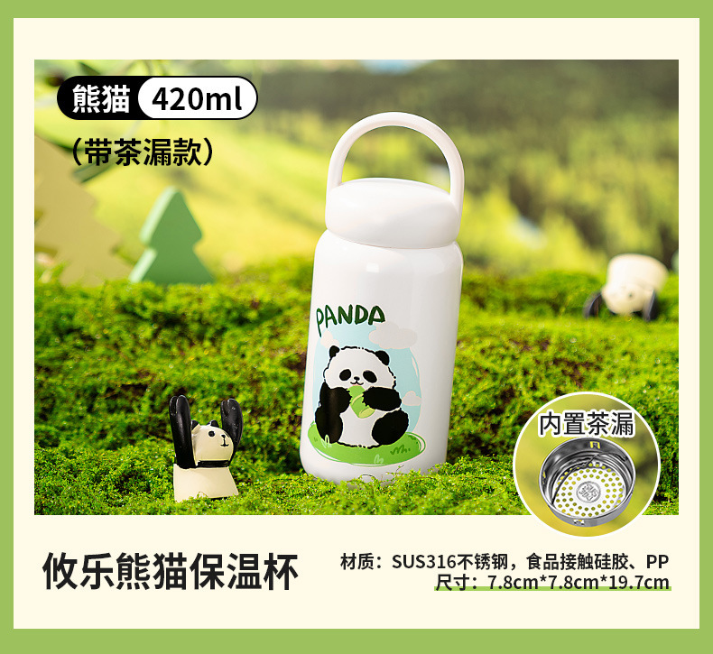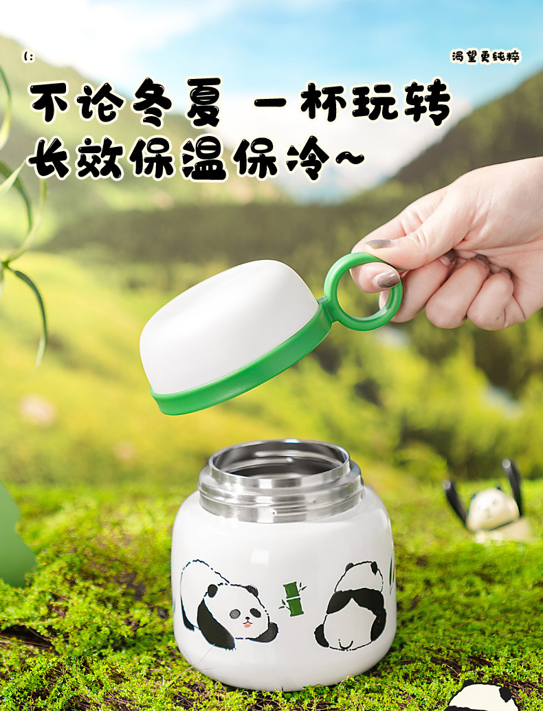높은 Yan 가치 316 스테인레스 스틸 보온병 팬더 창조적 인 귀여운 귀여운 귀여운 휴대용 컵 조식 컵스토어 가기
