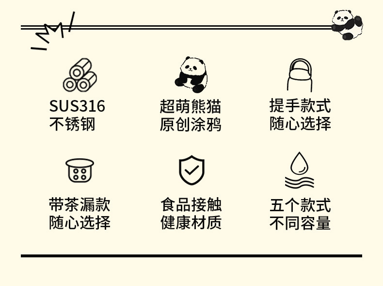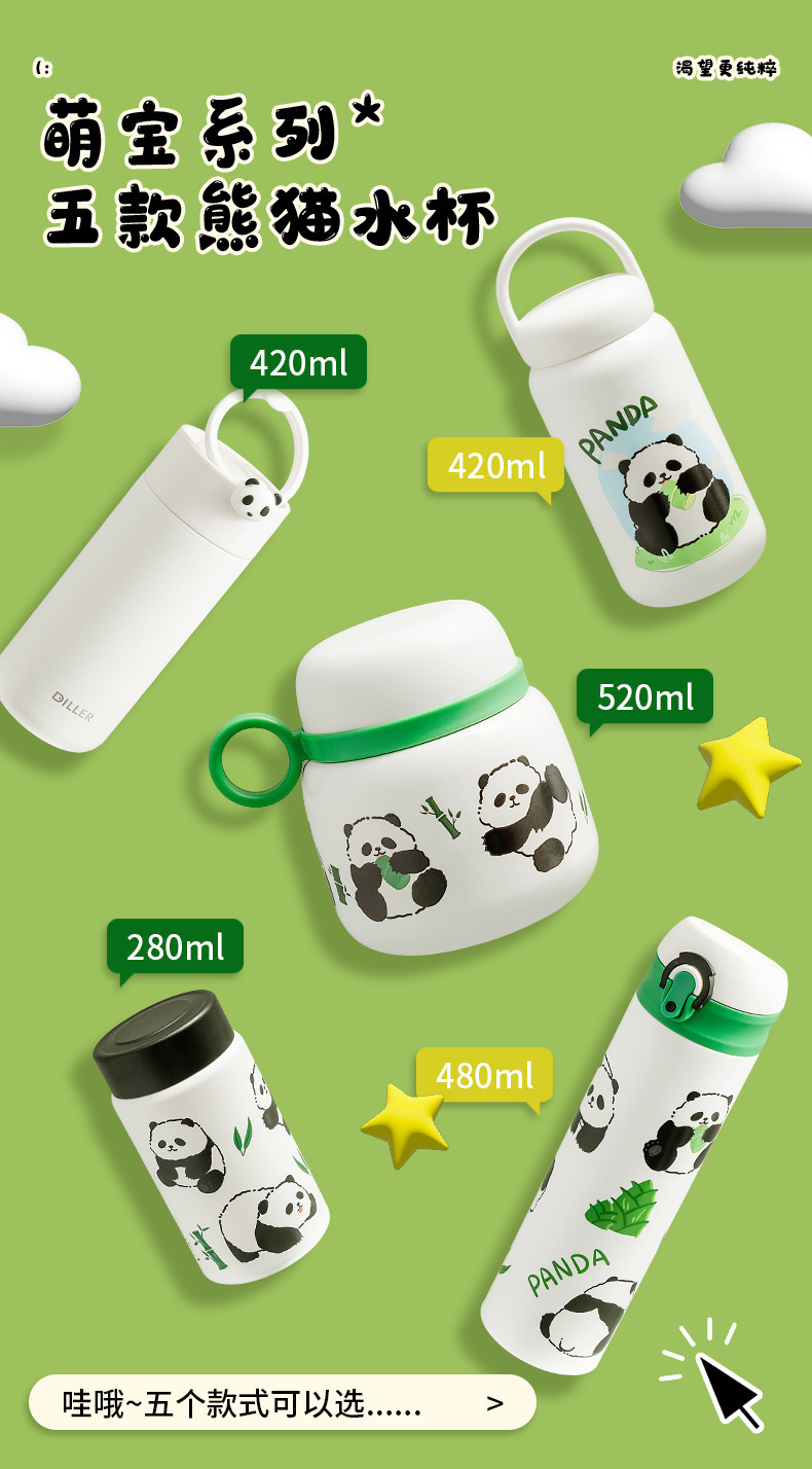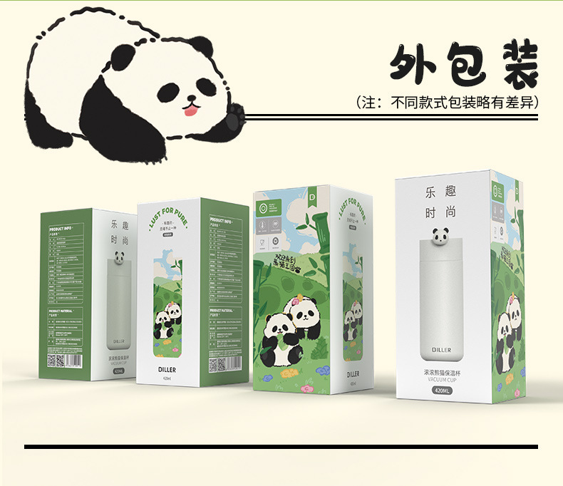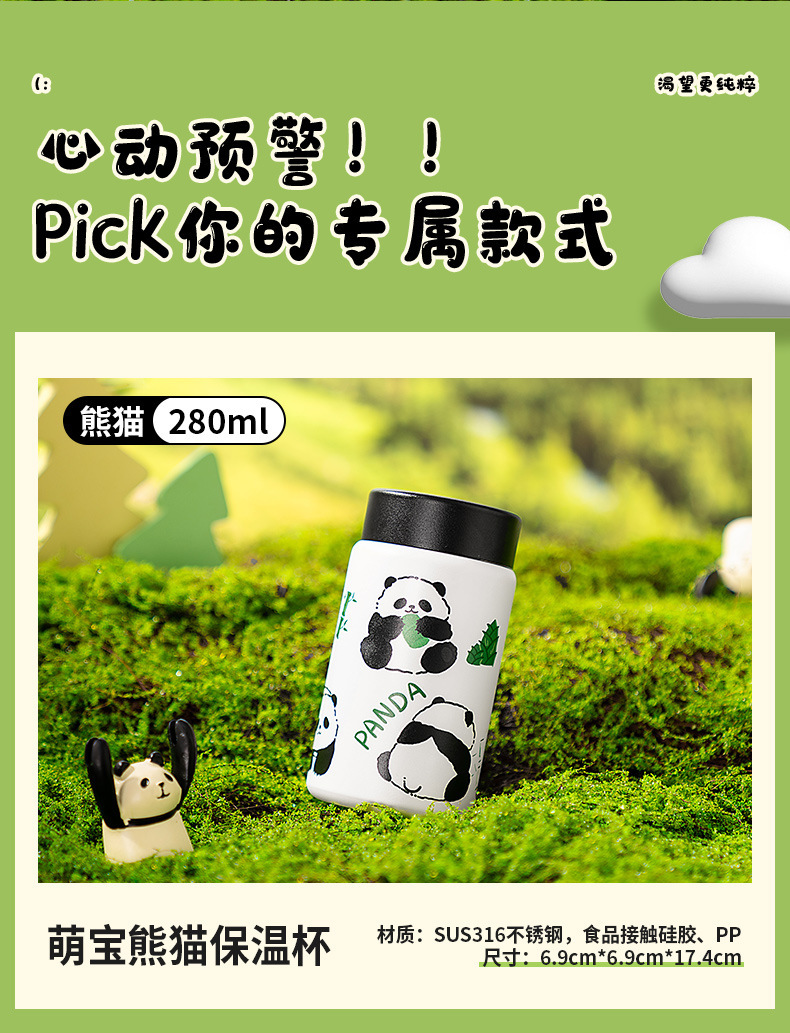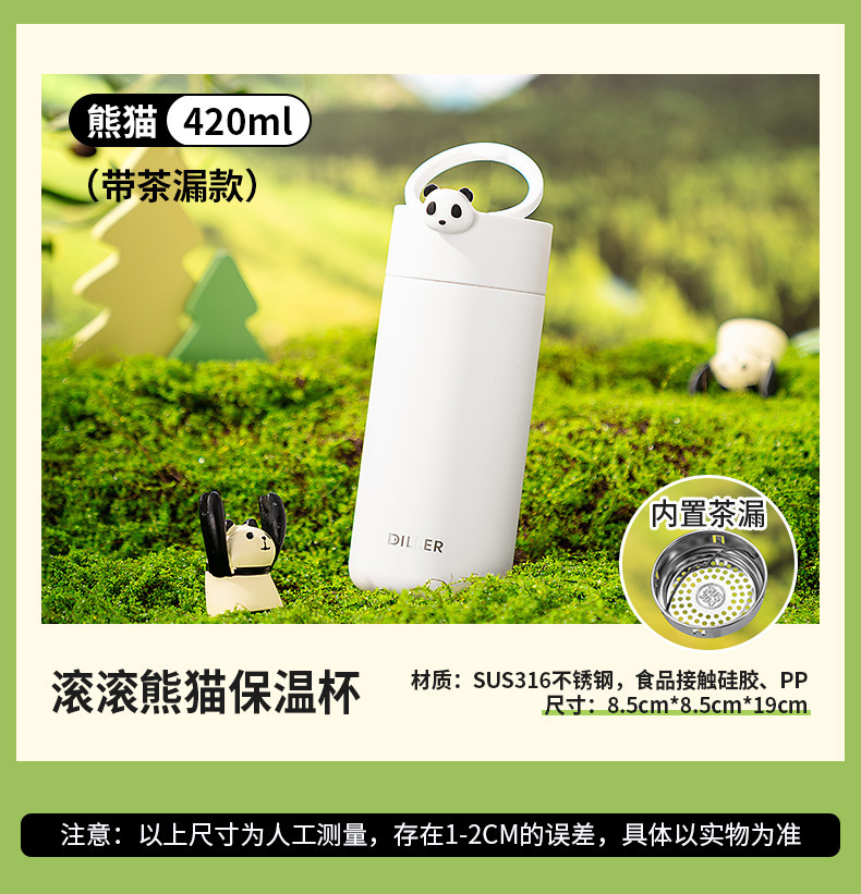 높은 Yan 가치 316 스테인레스 스틸 보온병 팬더 창조적 인 귀여운 귀여운 귀여운 휴대용 컵 조식 컵스토어 가기