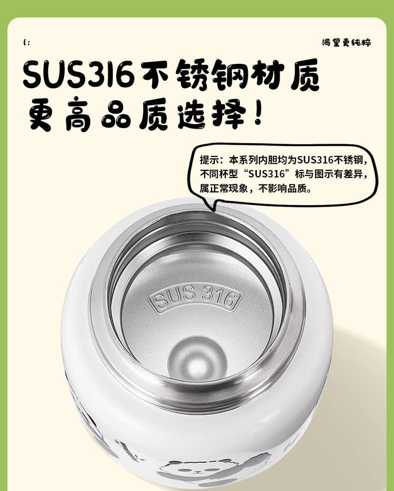 높은 Yan 가치 316 스테인레스 스틸 보온병 팬더 창조적 인 귀여운 귀여운 귀여운 휴대용 컵 조식 컵