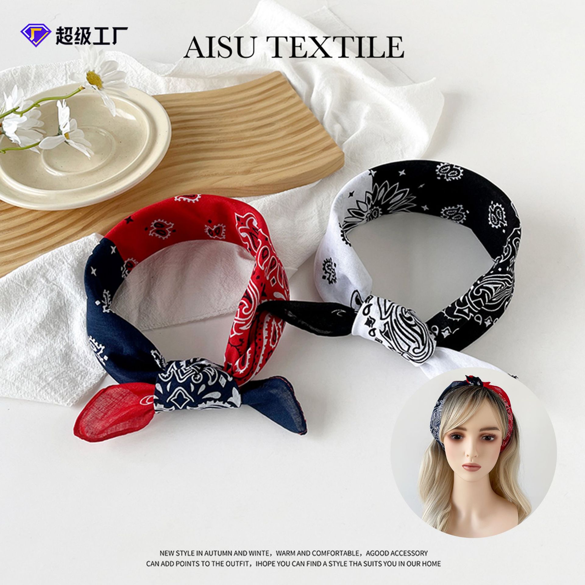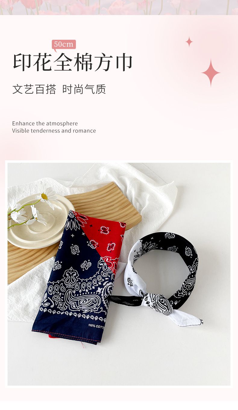 힙합 스카프 50cm 면 및 린넨 작은 사각형 스카프 작은 스카프 여성 새로운 유럽과 미국의 캐슈 너트 인쇄 조커 스카프 도매스토어 가기