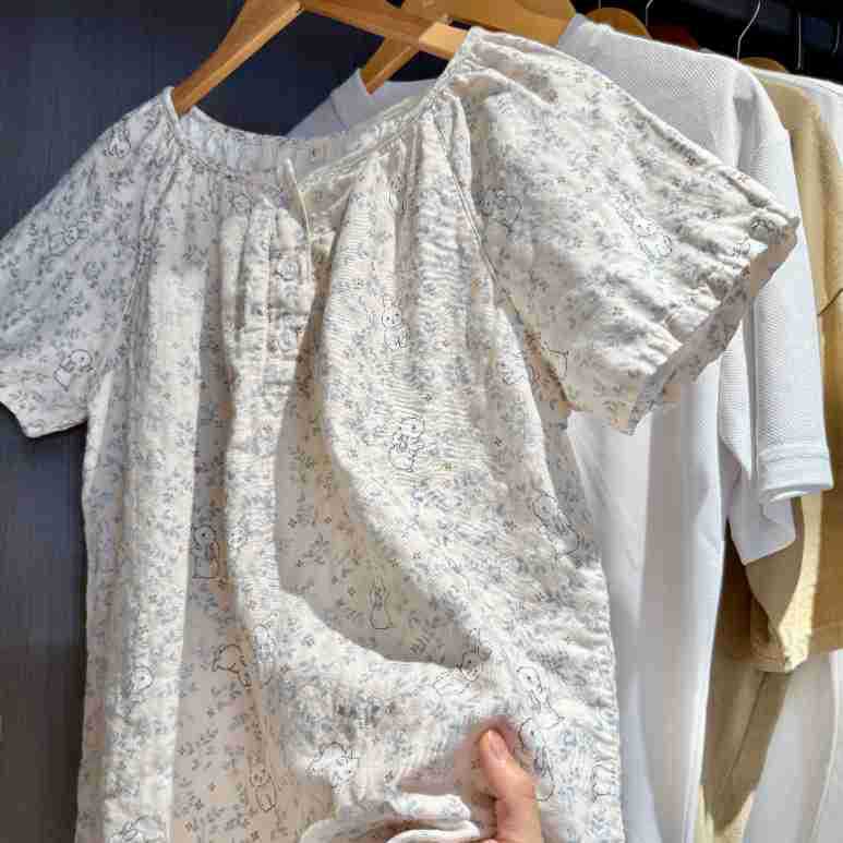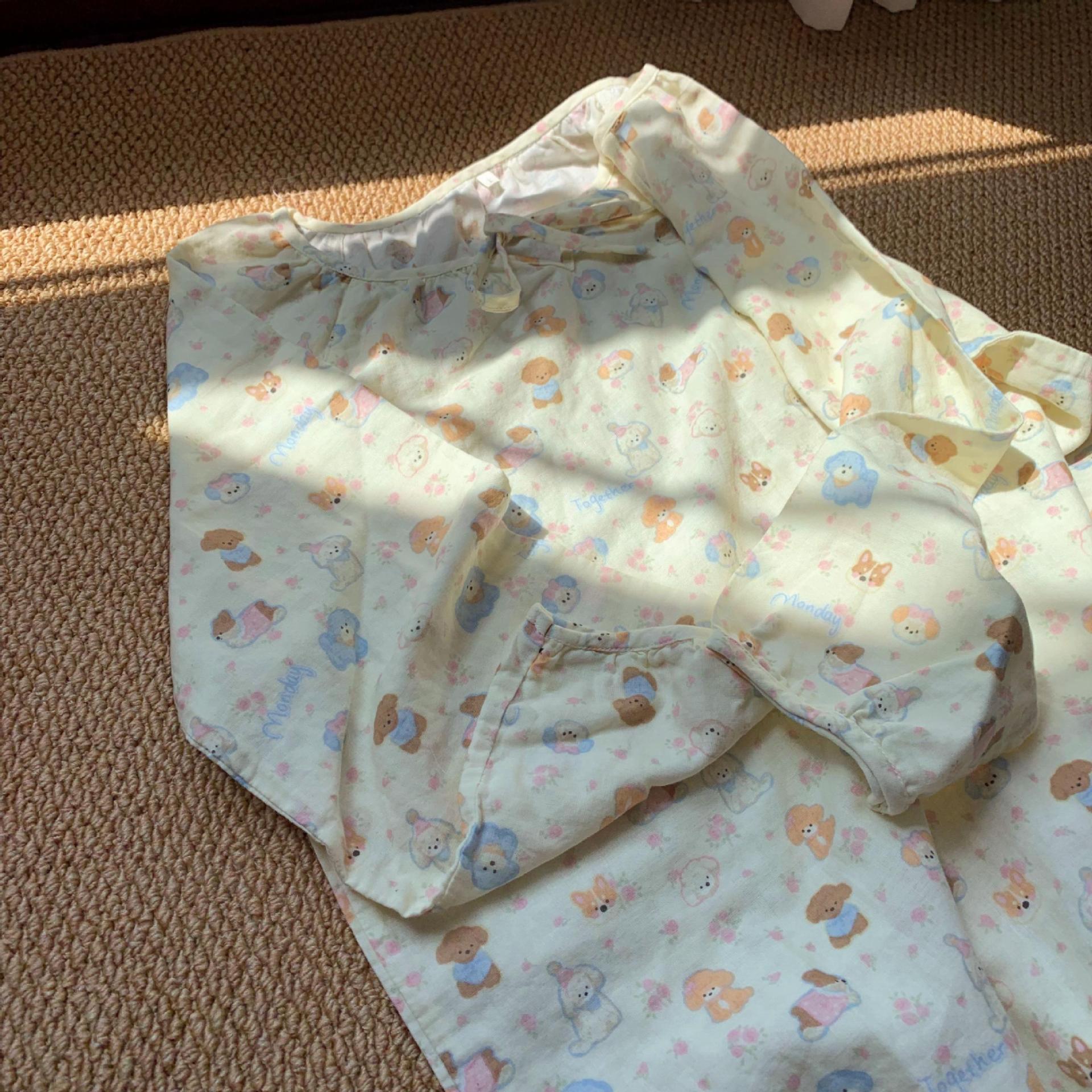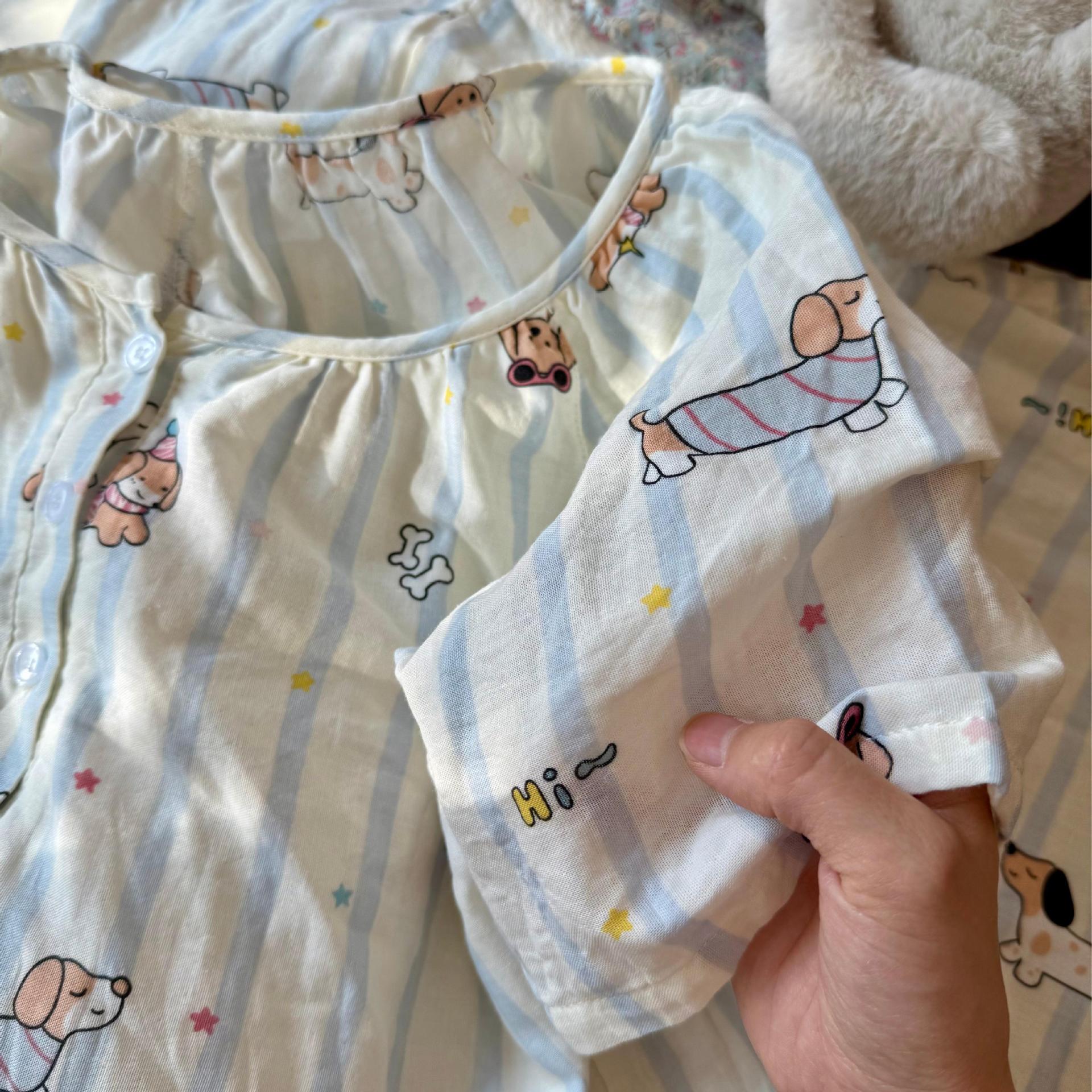 반팔 잠옷 A급 순면 이중 거즈 잠옷 홈웨어 순면 거즈 만화 긴팔 잠옷 슬립 잠옷스토어 가기
