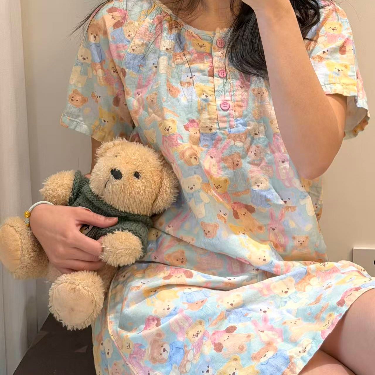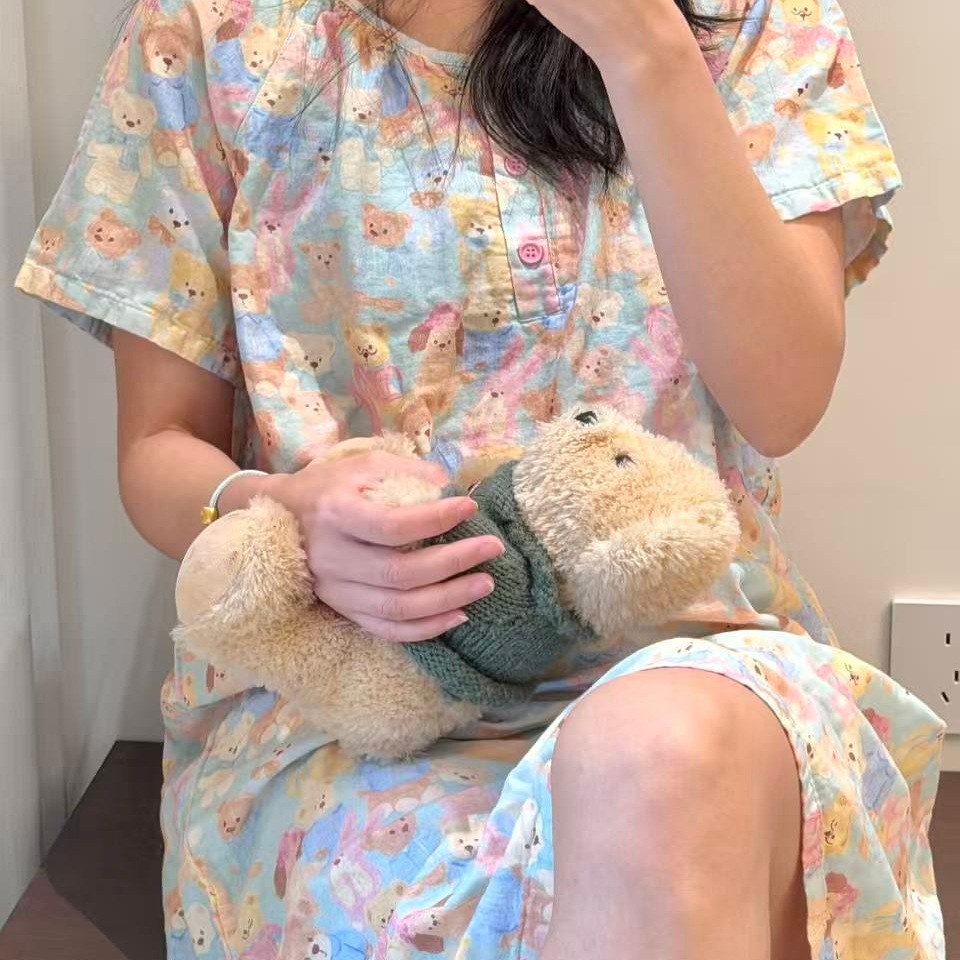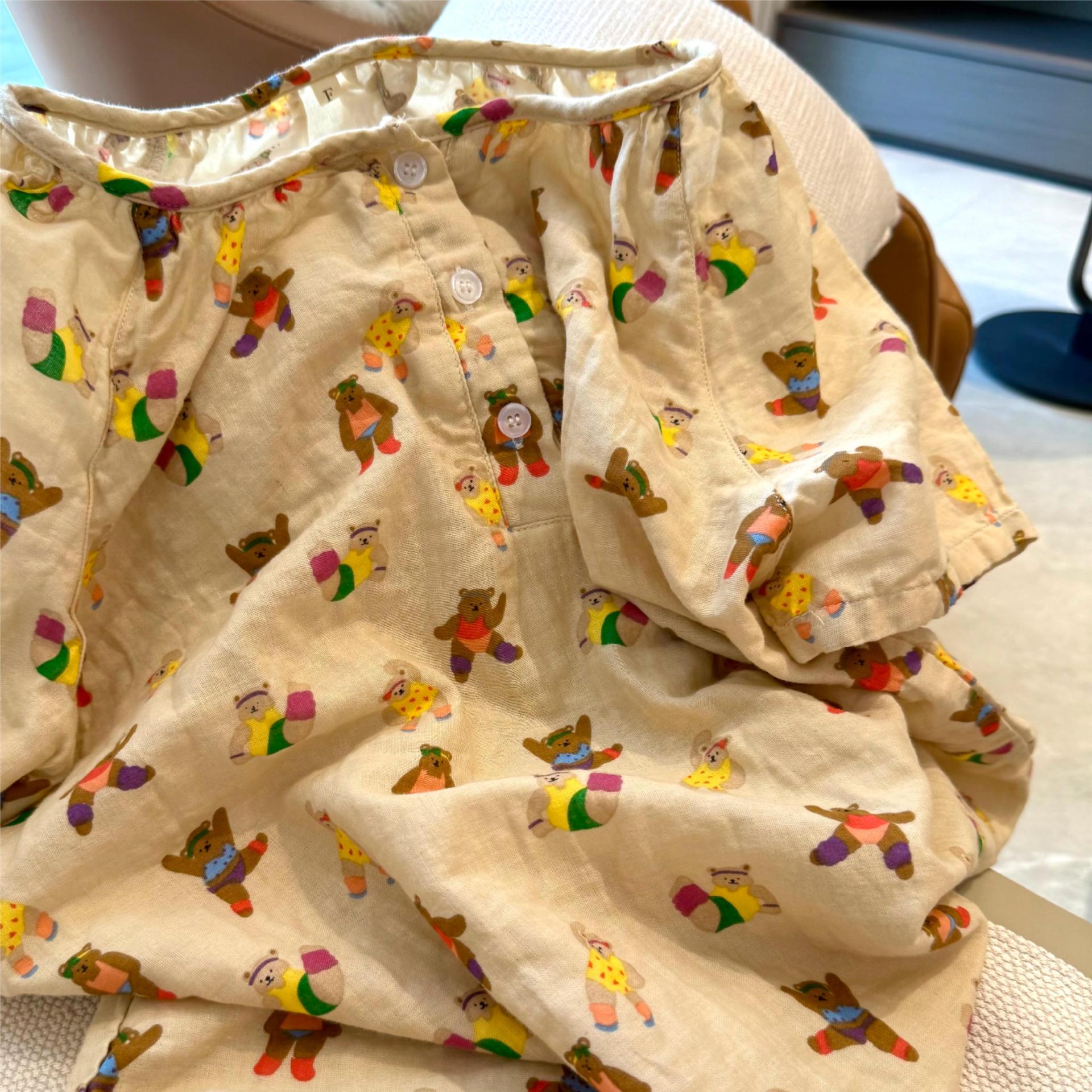 반팔 잠옷 A급 순면 이중 거즈 잠옷 홈웨어 순면 거즈 만화 긴팔 잠옷 슬립 잠옷스토어 가기