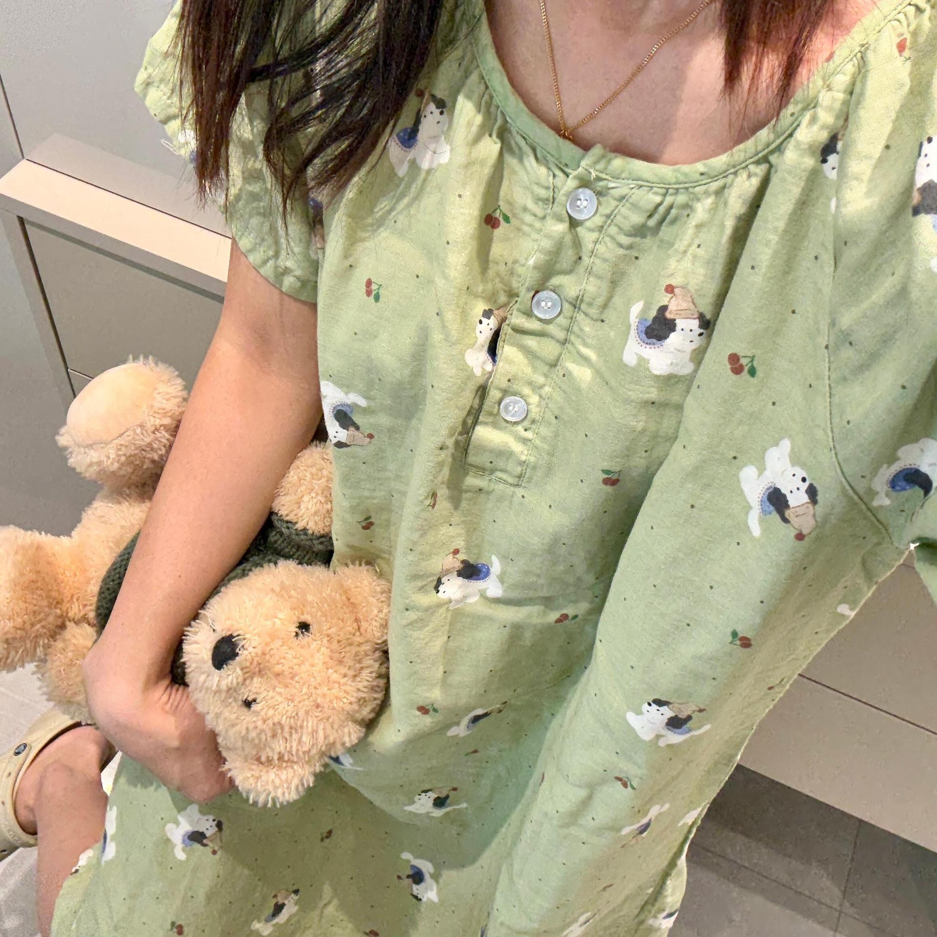 반팔 잠옷 A급 순면 이중 거즈 잠옷 홈웨어 순면 거즈 만화 긴팔 잠옷 슬립 잠옷