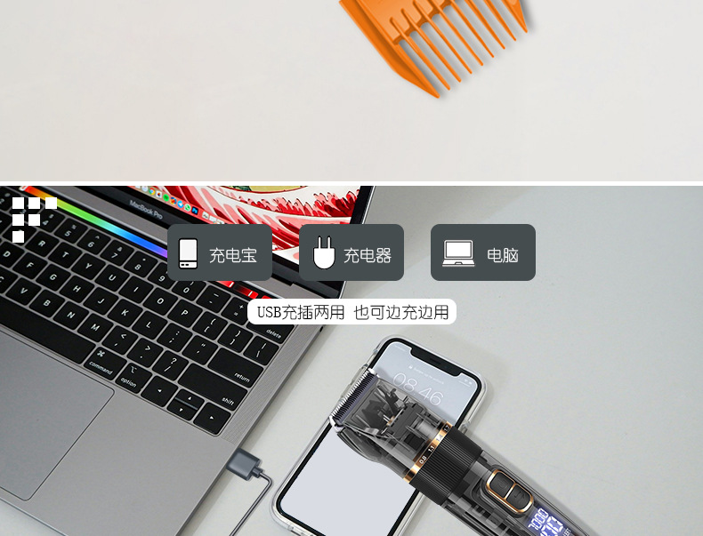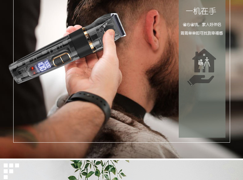 국경 방수 세척 헤어 클리퍼 전기 클리퍼 도매 LCD 디지털 디스플레이 투명 헤어 살롱 전문 전기 면도 헤어 클리퍼