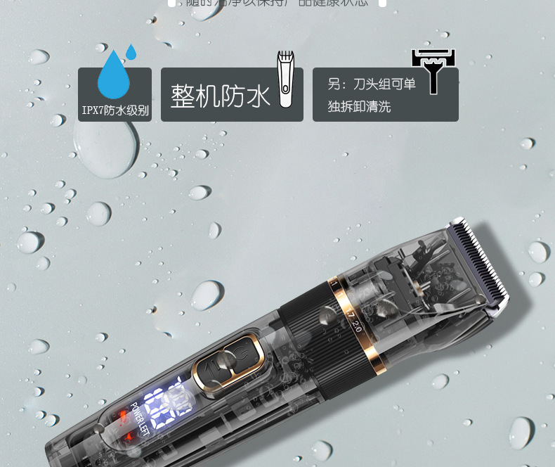국경 방수 세척 헤어 클리퍼 전기 클리퍼 도매 LCD 디지털 디스플레이 투명 헤어 살롱 전문 전기 면도 헤어 클리퍼스토어 가기