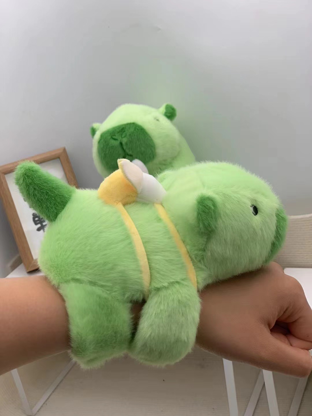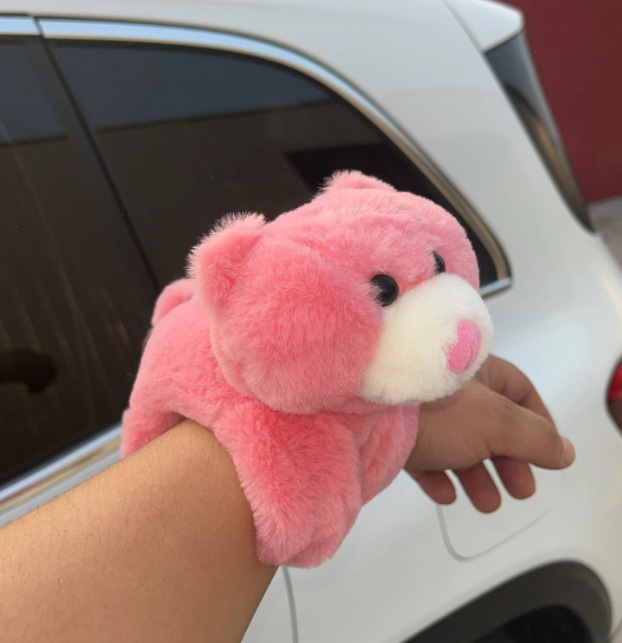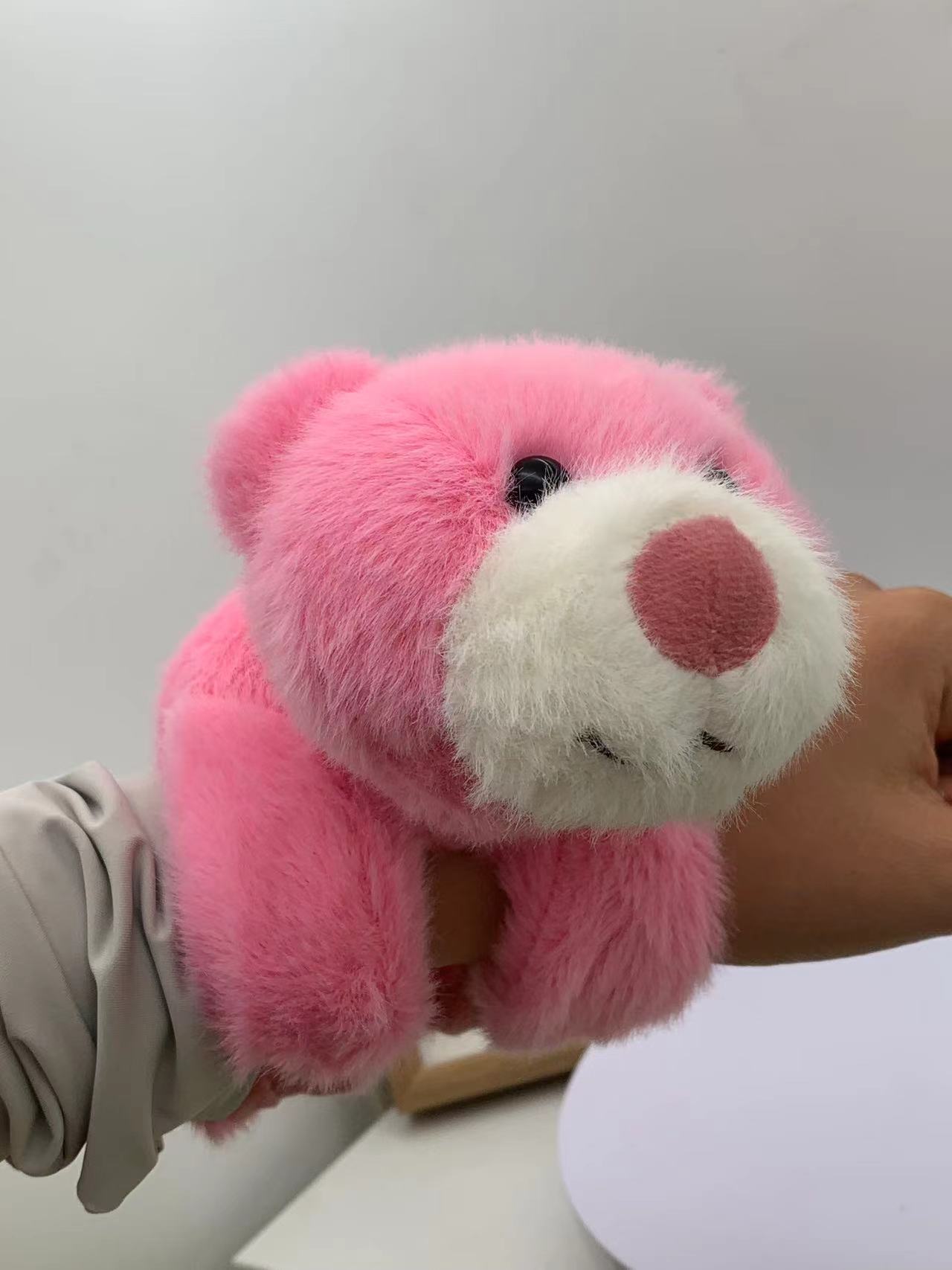 在拿到毛绒玩具后轻轻拍几下,抖动几下,或用胶带纸把多余浮毛清理下去即可