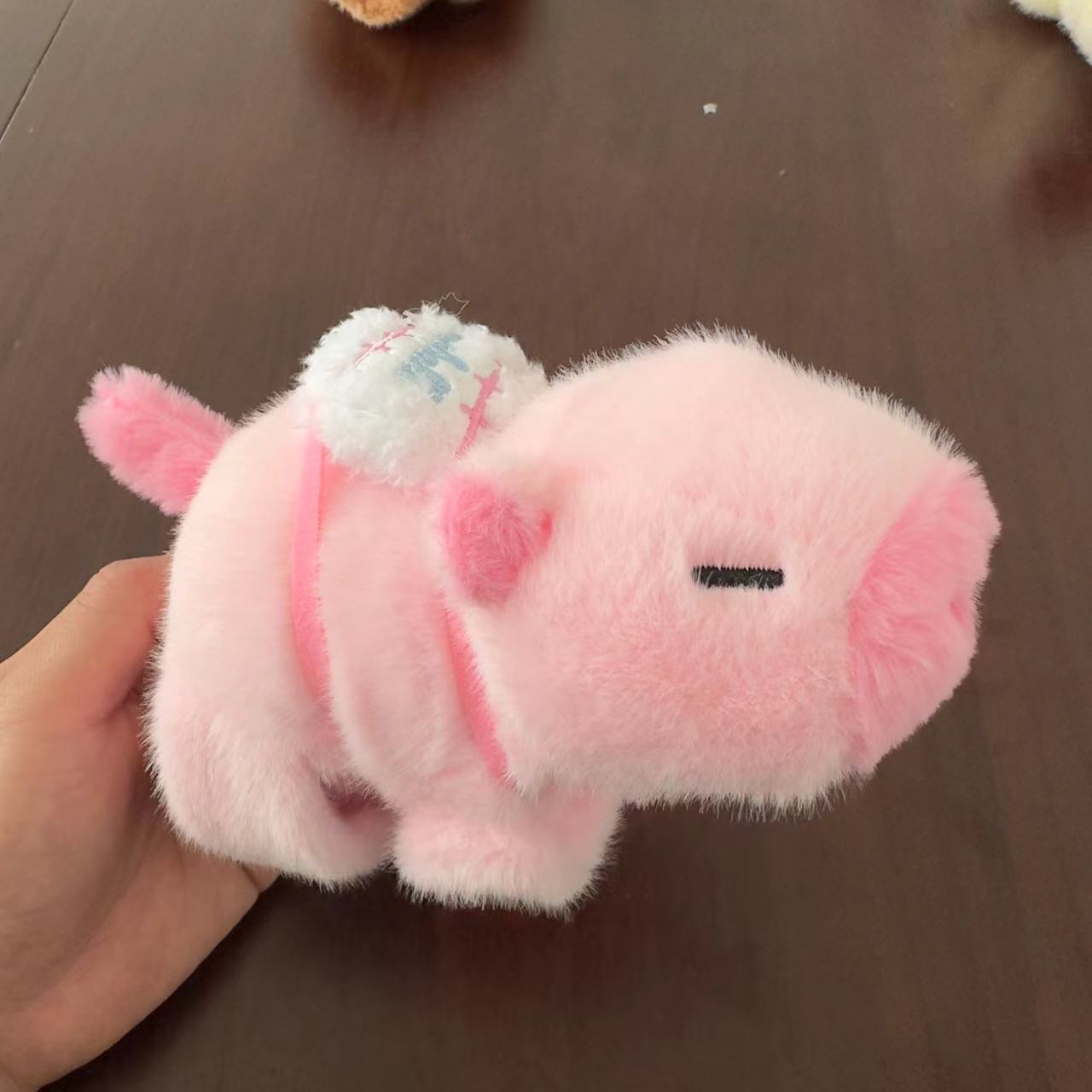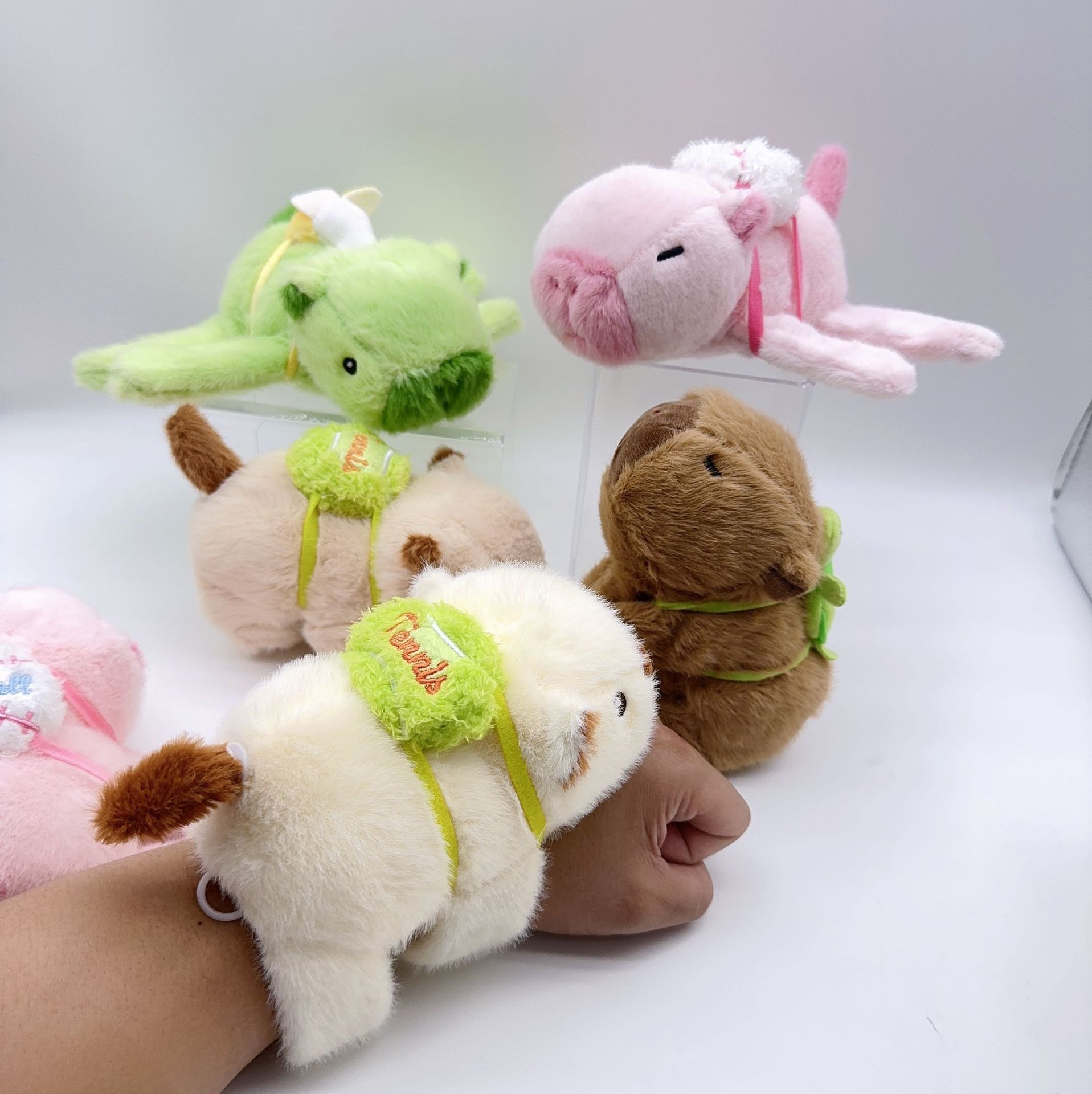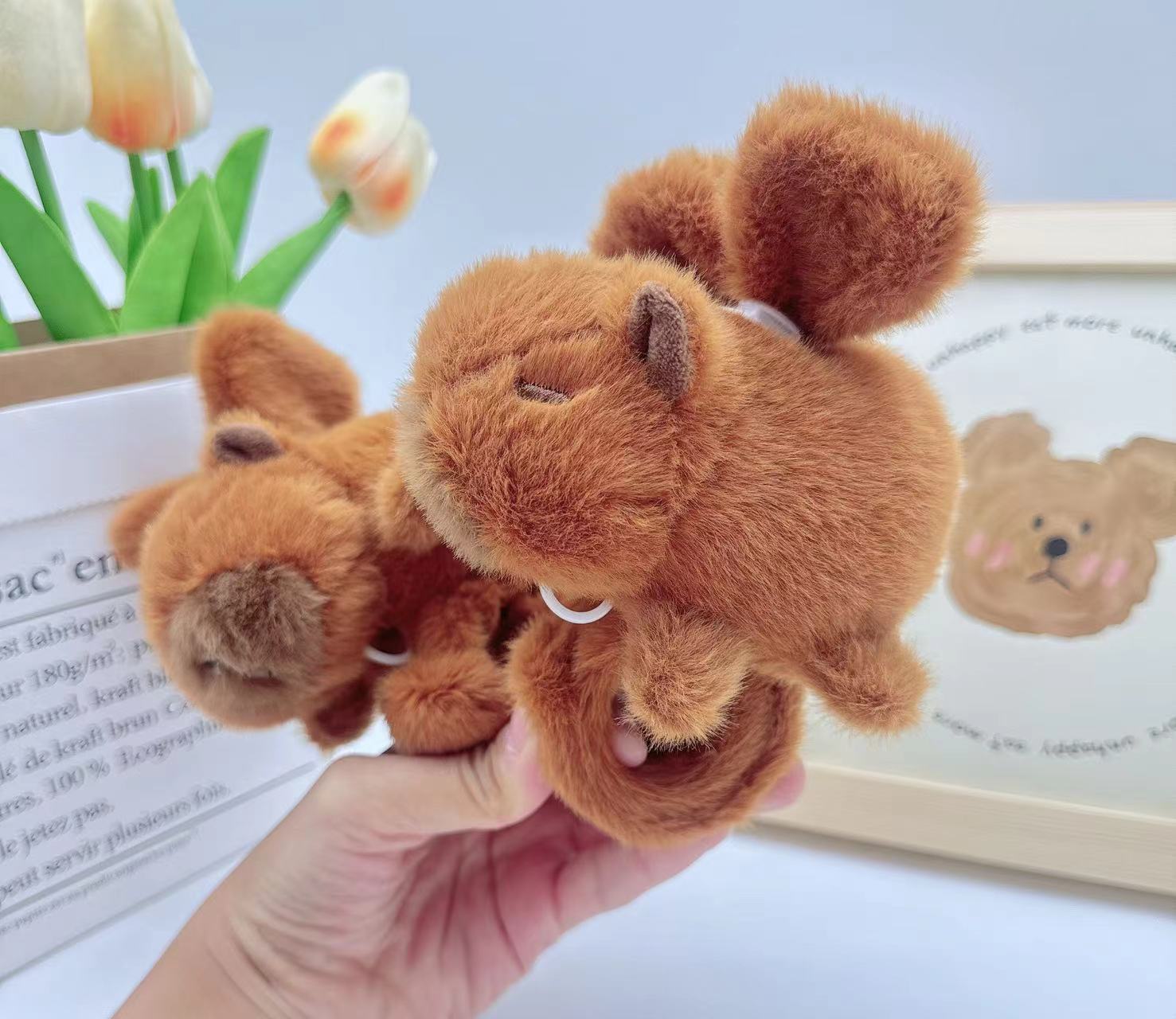在拿到毛绒玩具后轻轻拍几下,抖动几下,或用胶带纸把多余浮毛清理下去即可