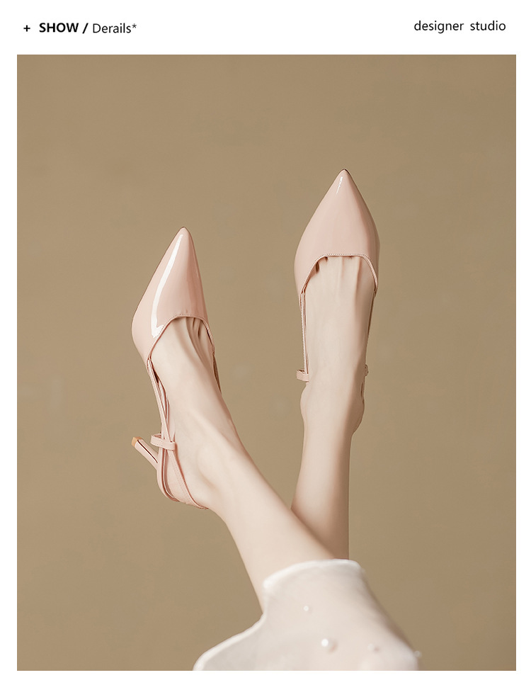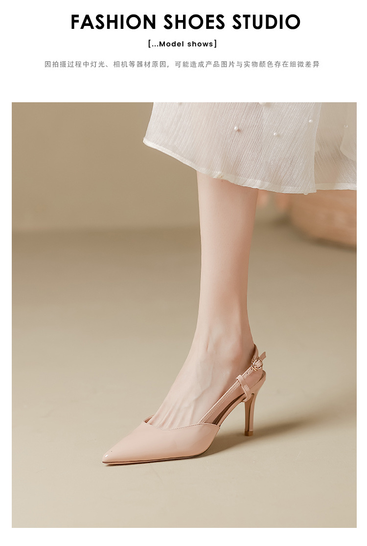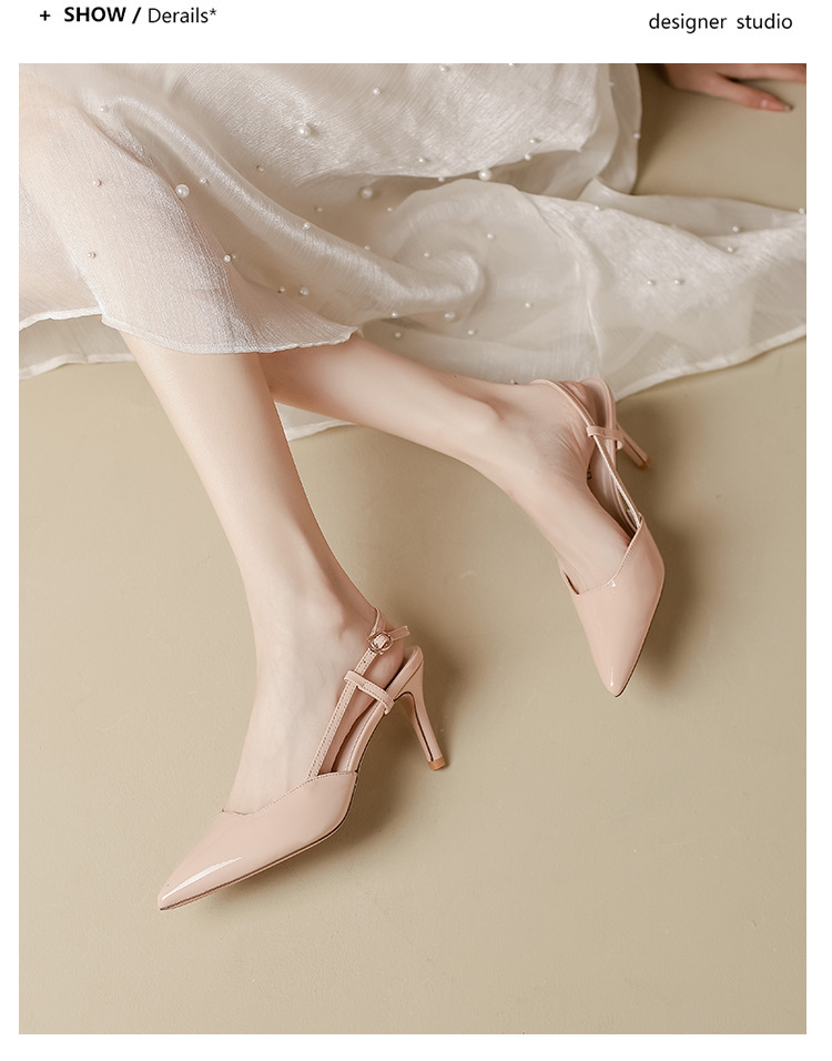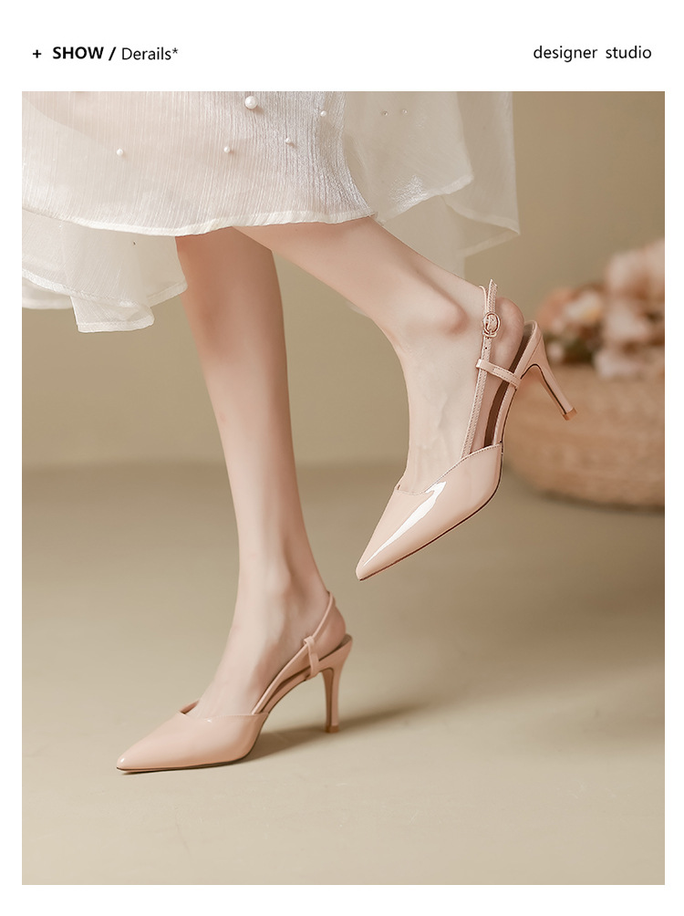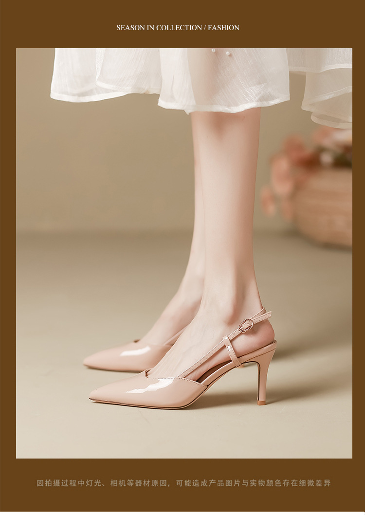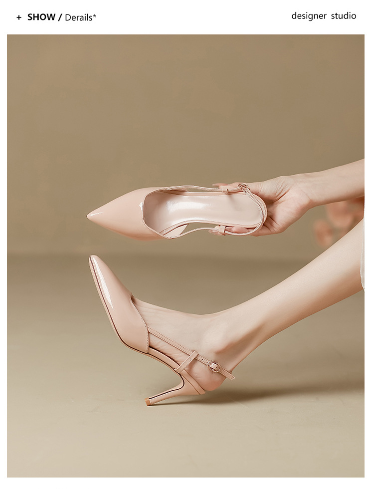 바오터우 여성용 하이힐 샌들 2025 봄 여름 신상 원스트랩 버클 스틸레토 힐 누드 컬러 오피스룩 뾰족코 뒤트임 슈즈스토어 가기