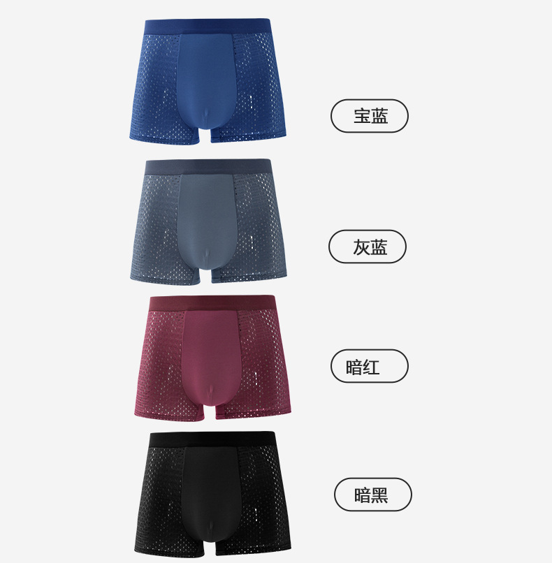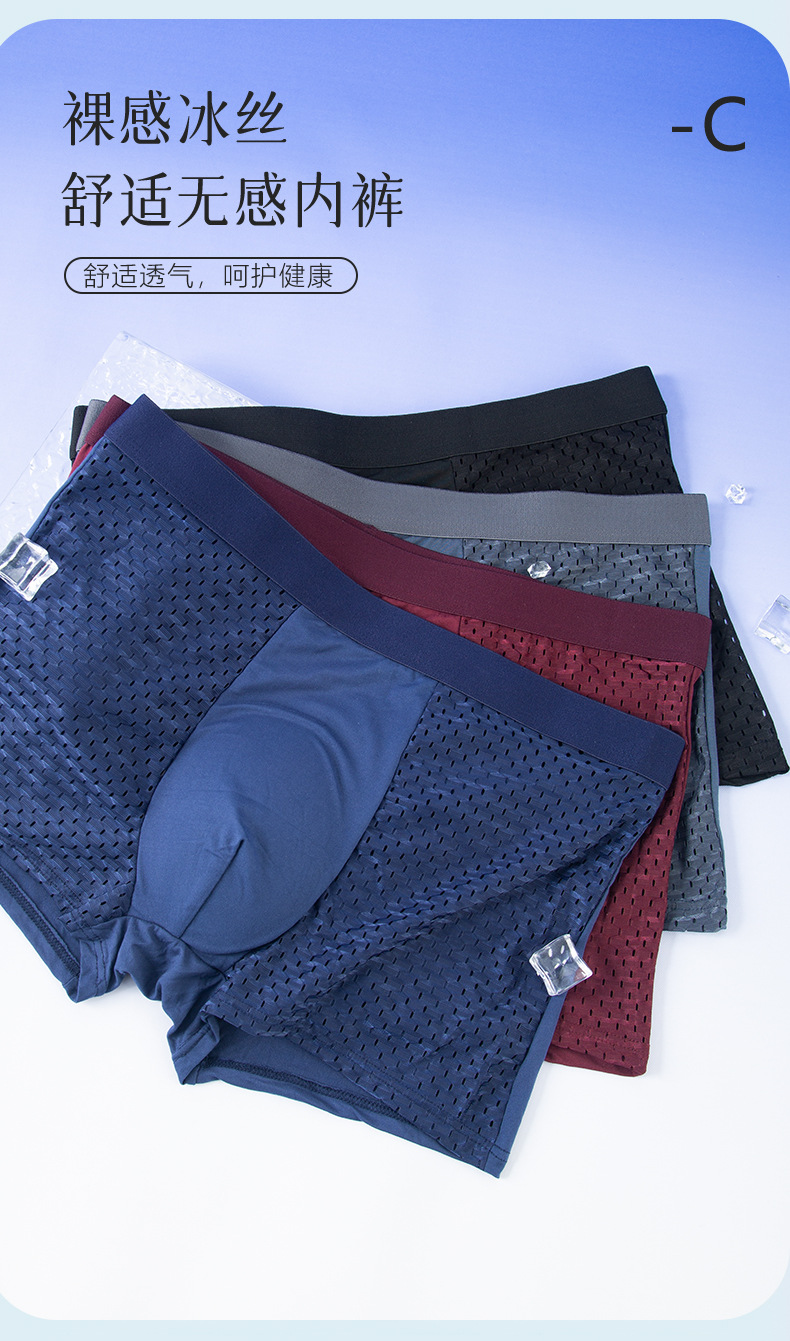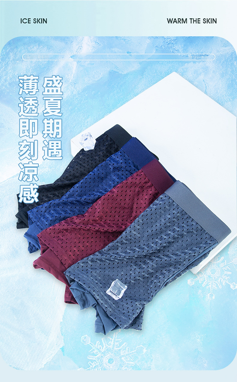 새로운 남성 속옷 남자 아이스 실크 메쉬 복서 통기성 메쉬 복서 반바지 청소년 반바지 여름