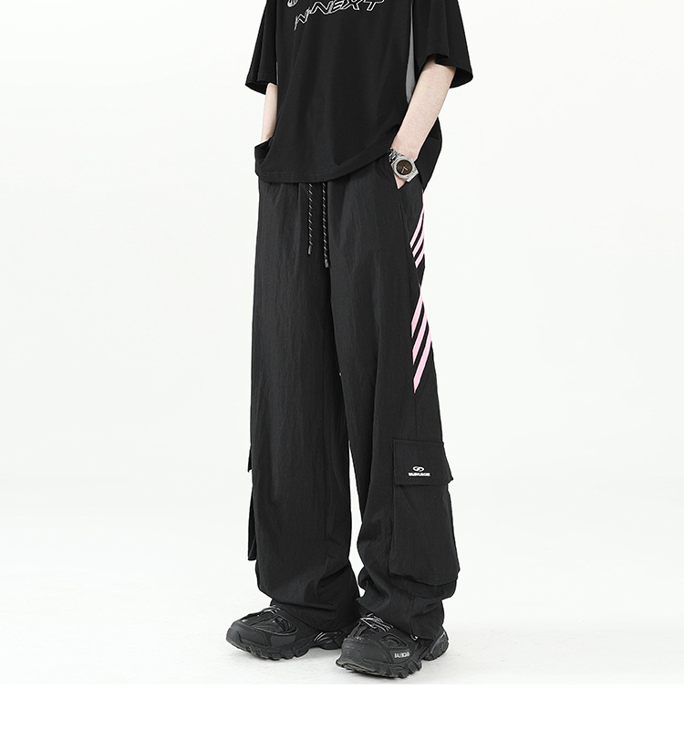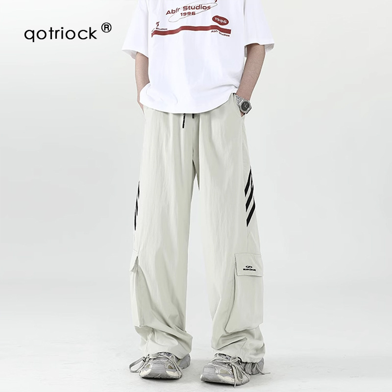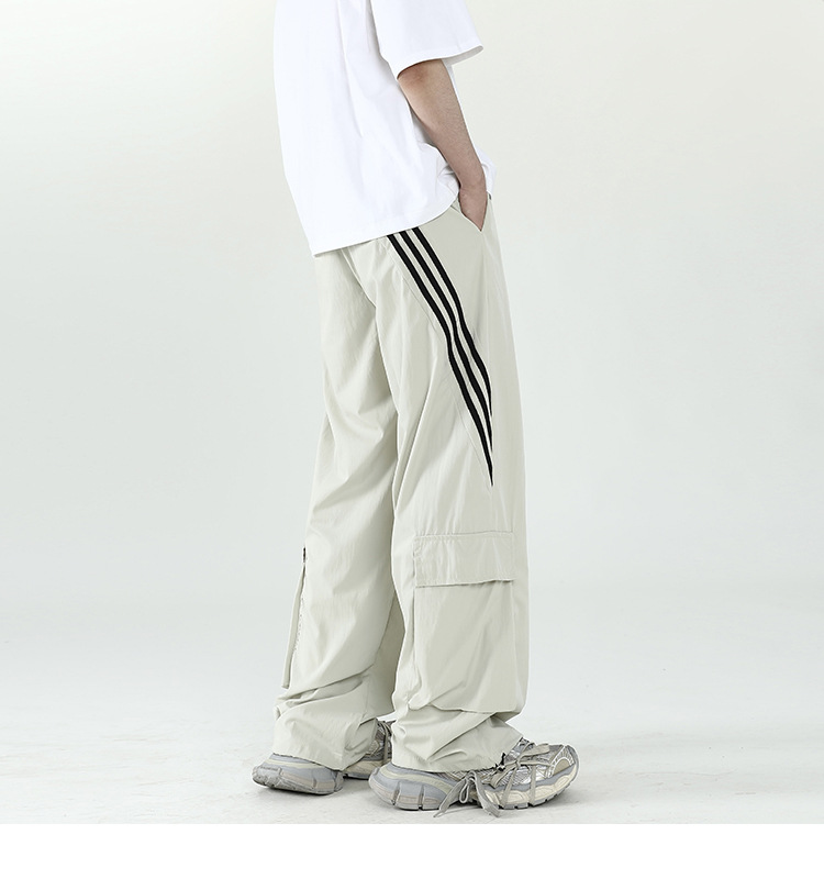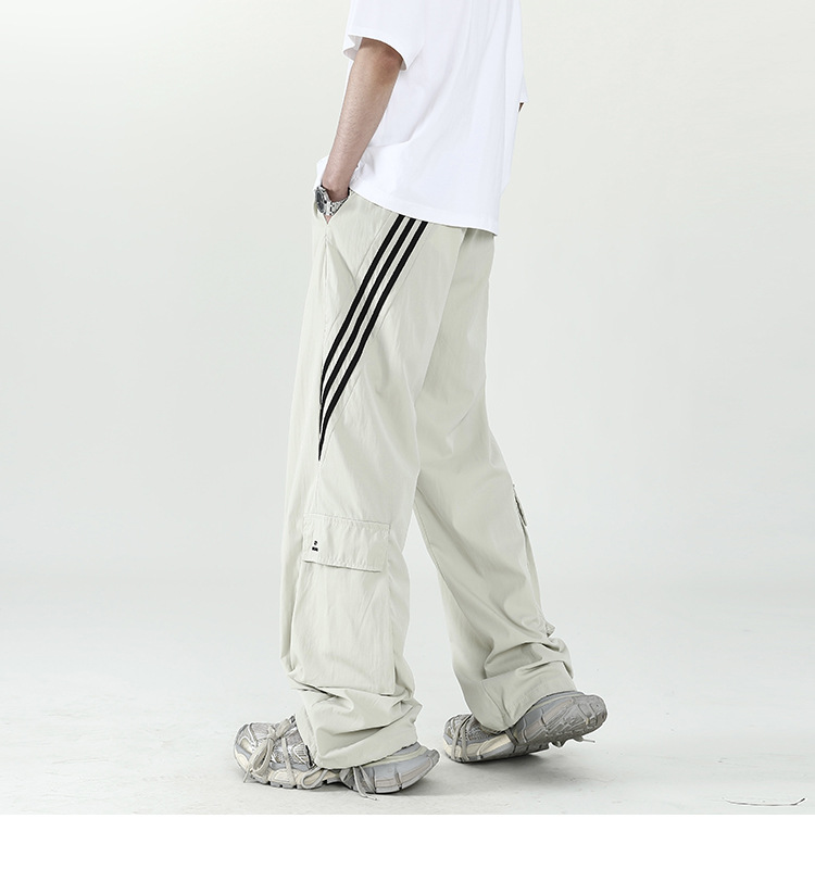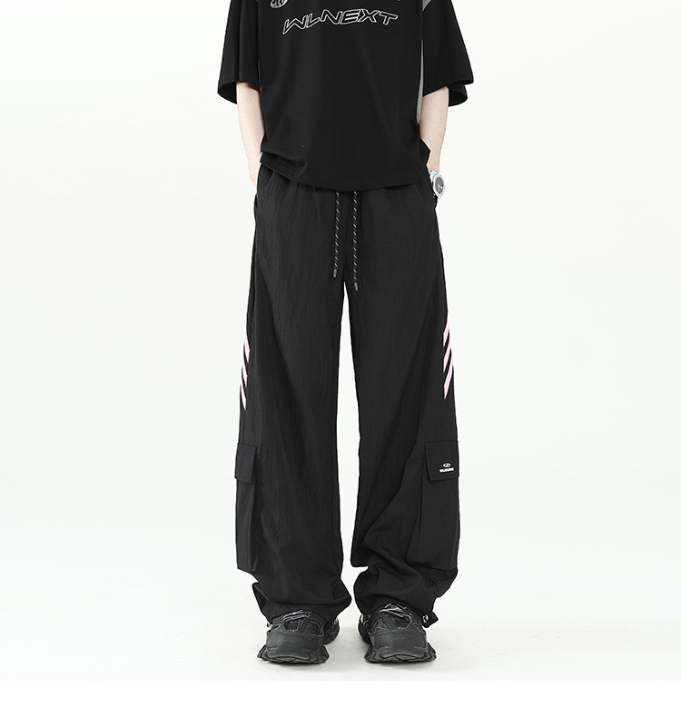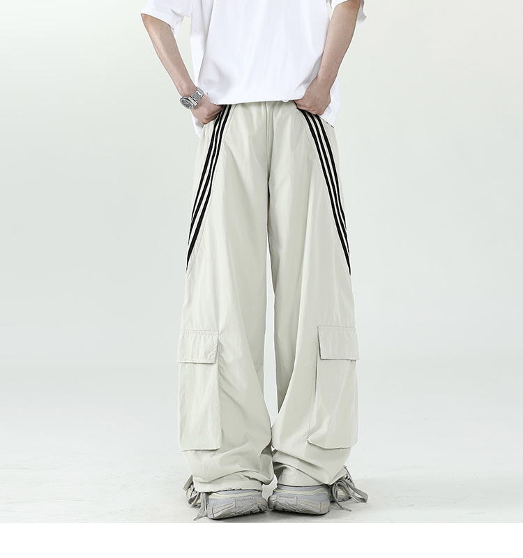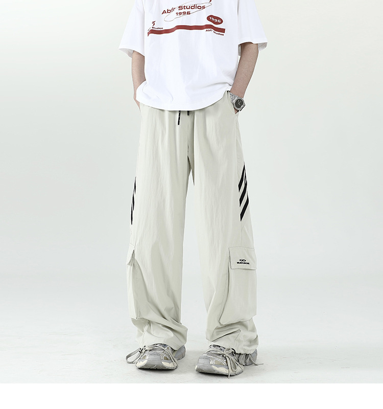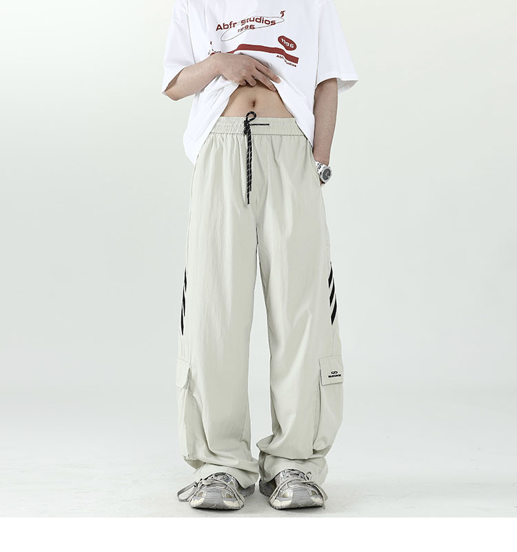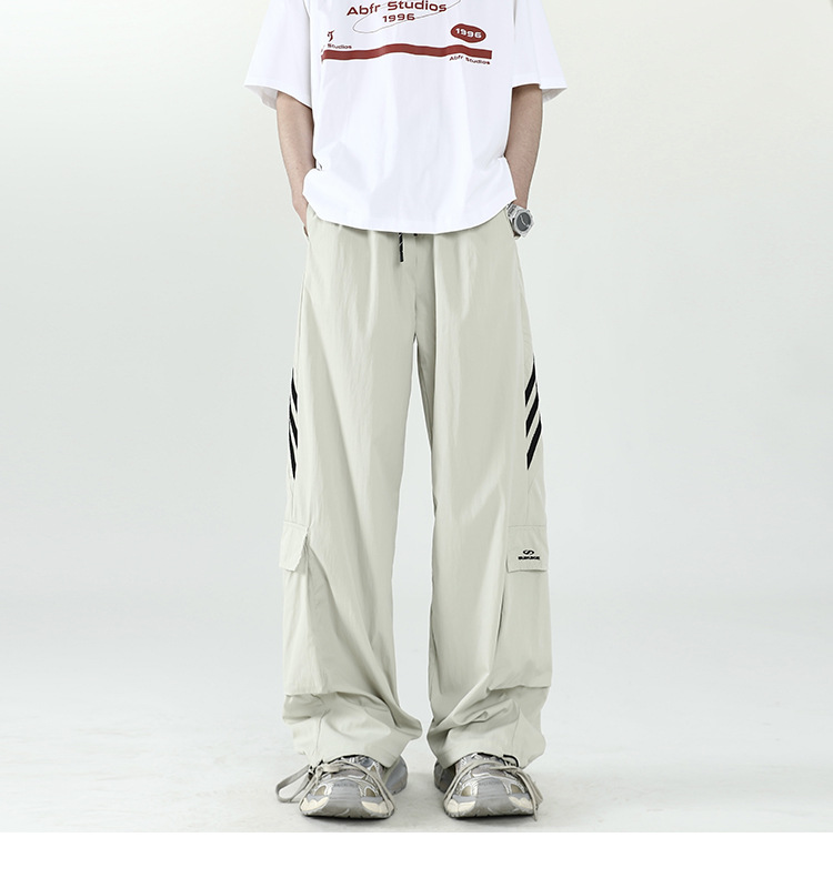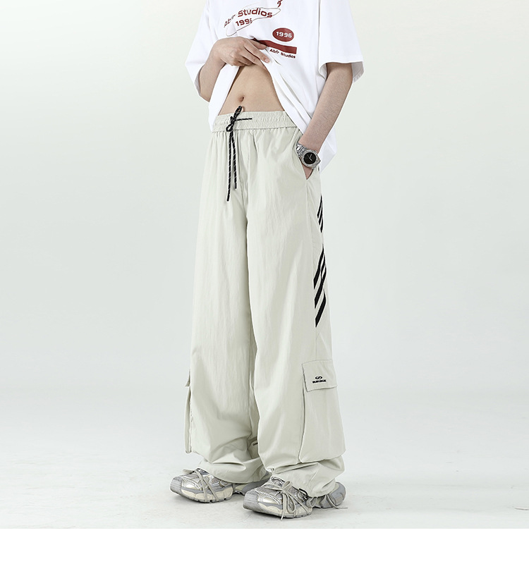 아메리칸 스타일 잘 생긴 낙하산 바지 남자 여름 유행 브랜드 느슨한 스트레이트 빠른 건조 스포츠 툴링 바지 캐주얼 2024