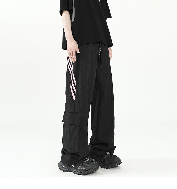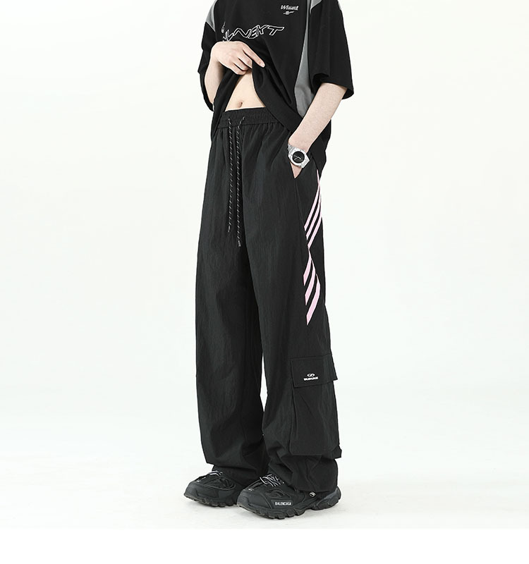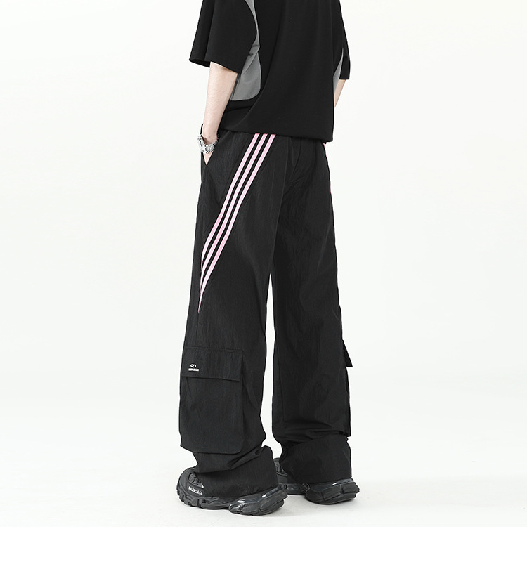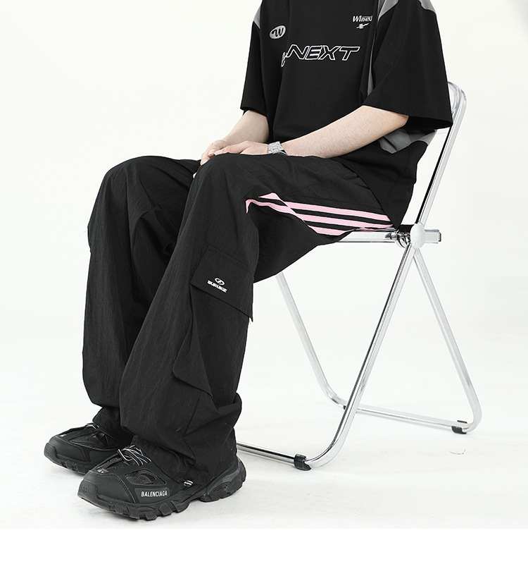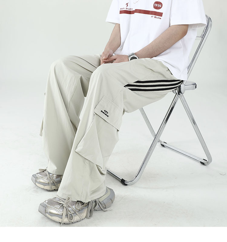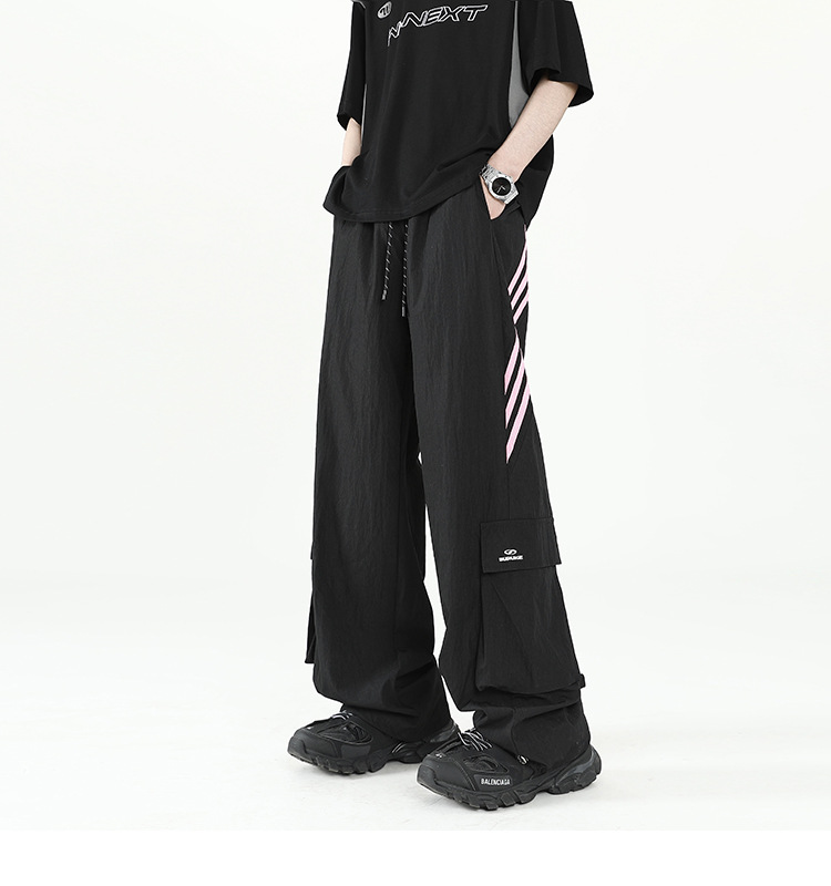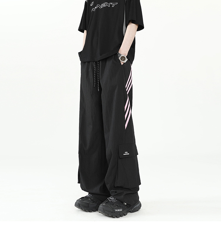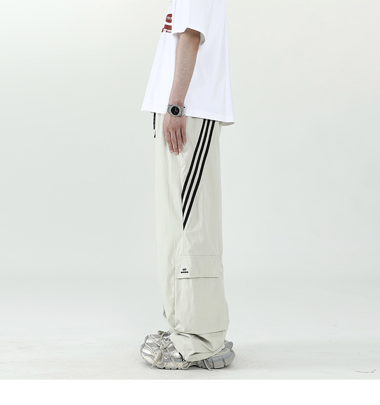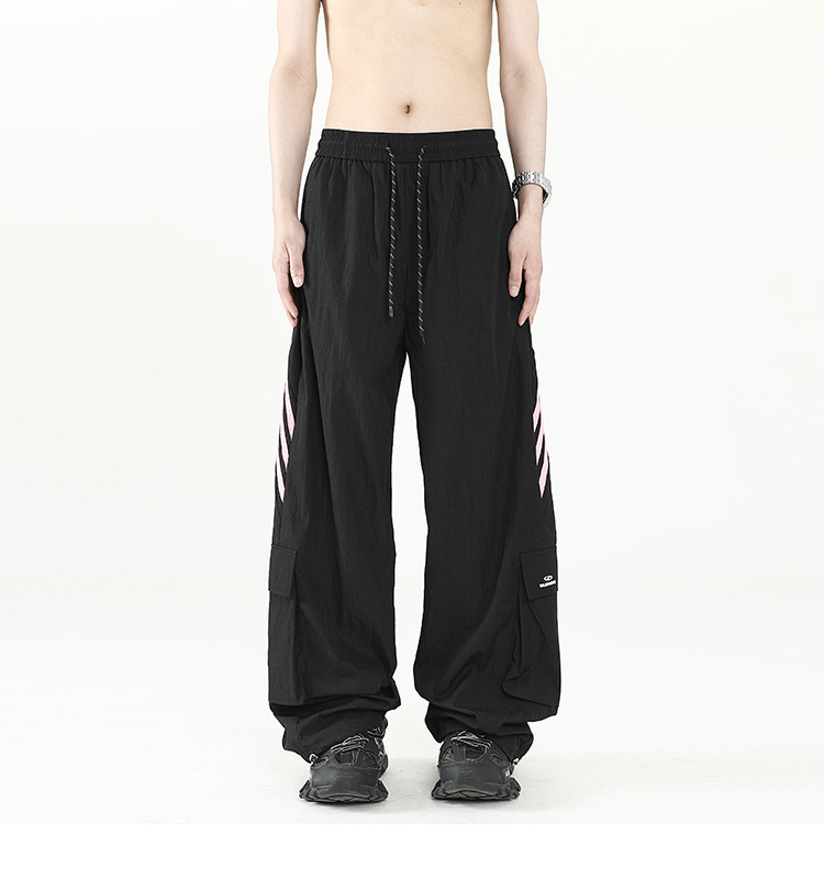아메리칸 스타일 잘 생긴 낙하산 바지 남자 여름 유행 브랜드 느슨한 스트레이트 빠른 건조 스포츠 툴링 바지 캐주얼 2024스토어 가기