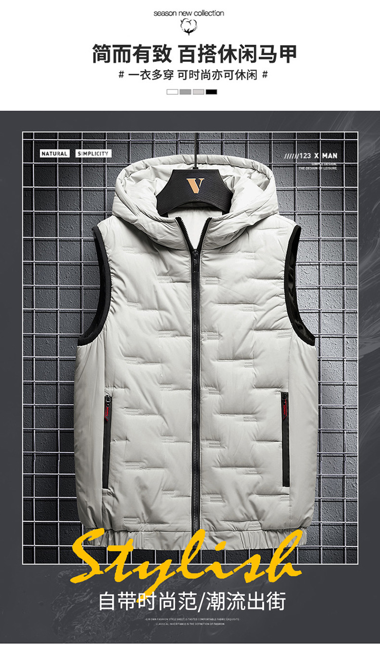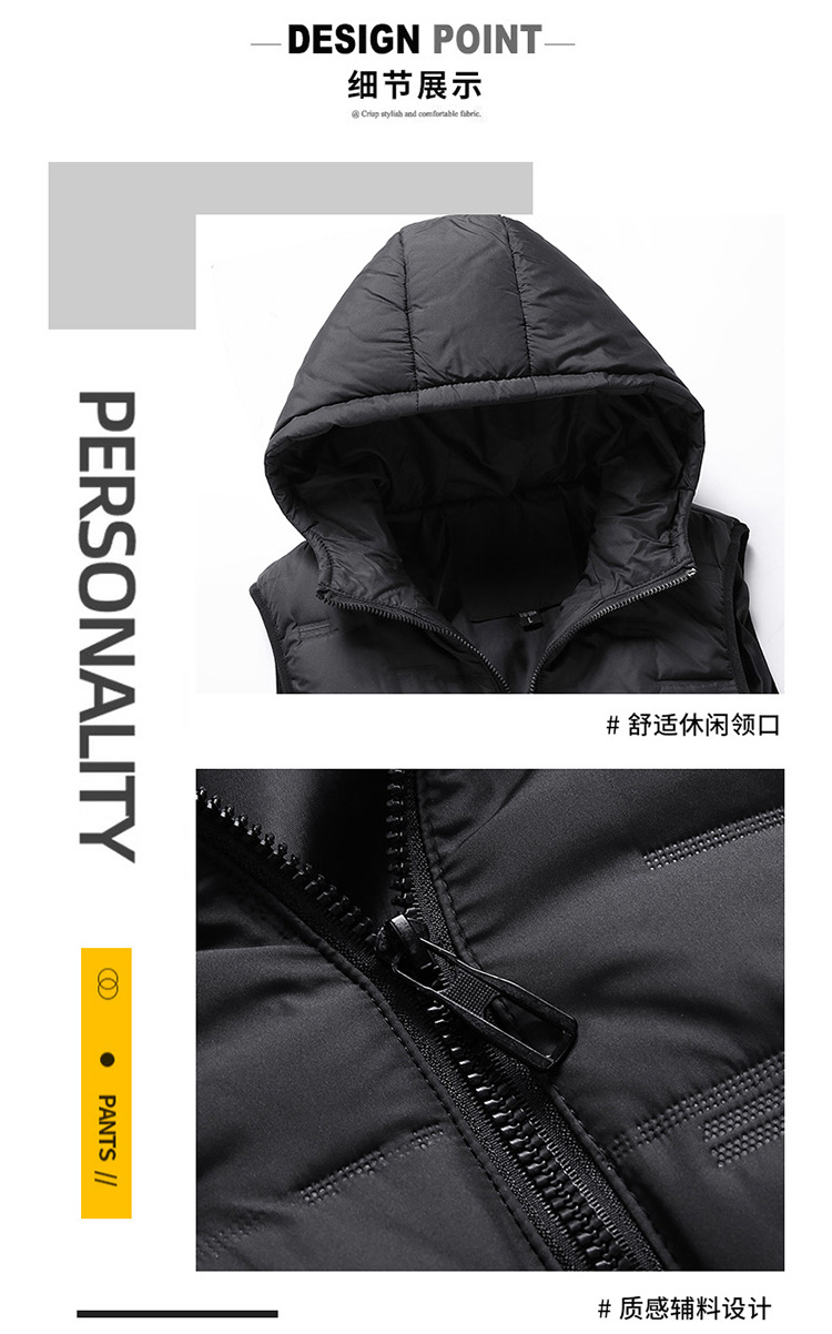 새로운 수출용 면 후드 조끼 남성용 루즈핏 대형 사이즈 보온 남성 겨울 민소매 재킷 조끼 남성복