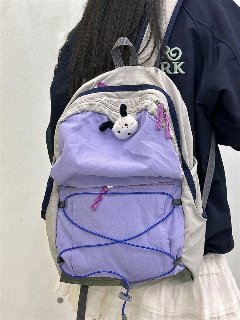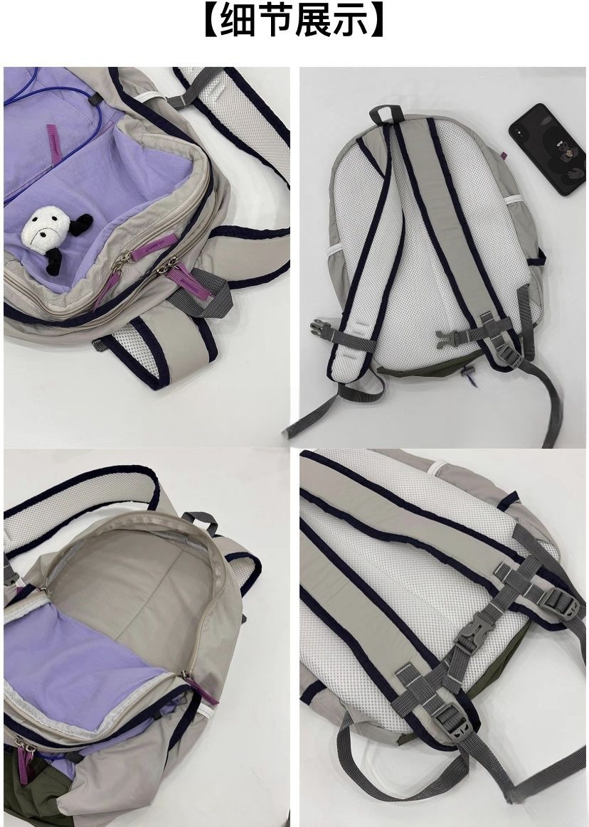 한국 스타일 야외 배낭 대비 컬러 하이킹 가방 스쿨백 경량 2024 새로운 여행 가방 경량 통근 작은 배낭스토어 가기
