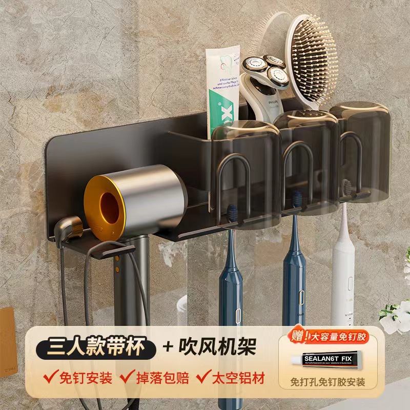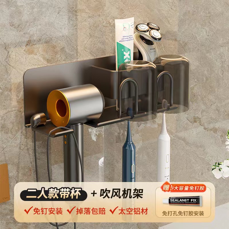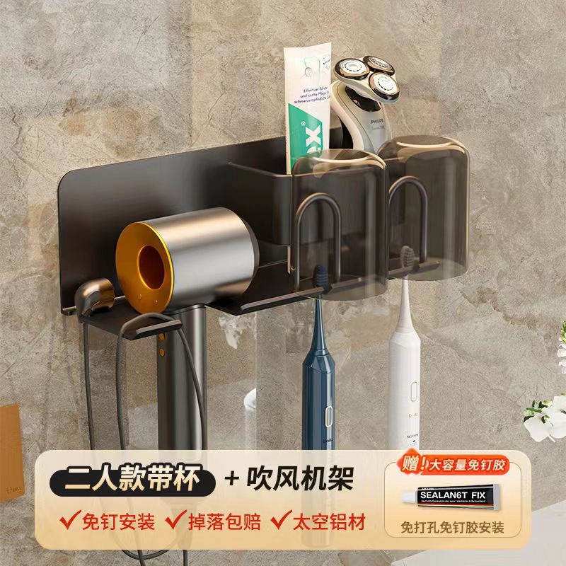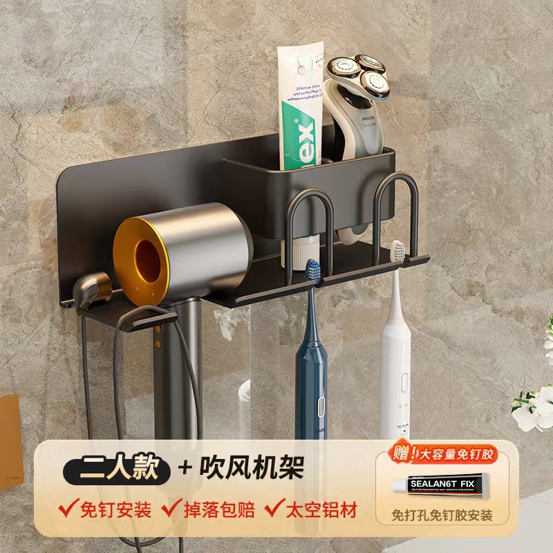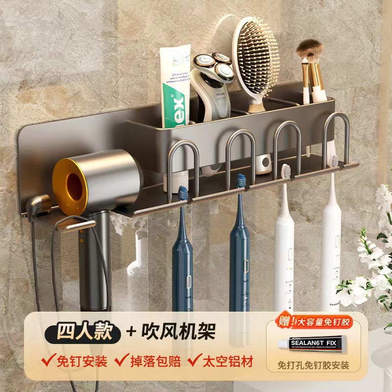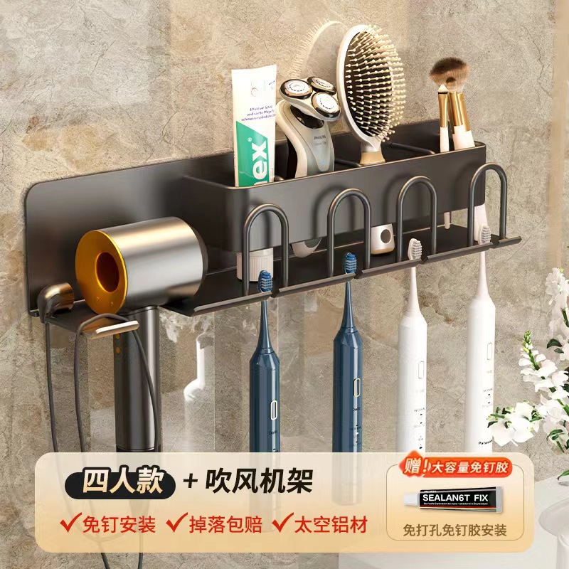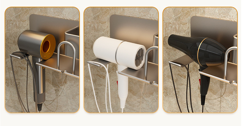 무타공 알루미늄 칫솔 거치대 욕실 헤어드라이어 수납 선반 양치컵 정리 벽걸이 선반