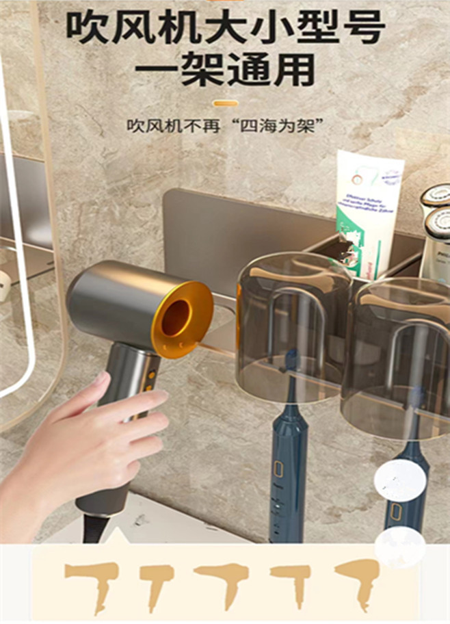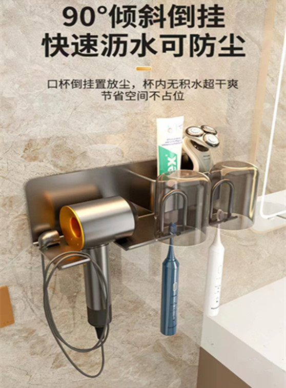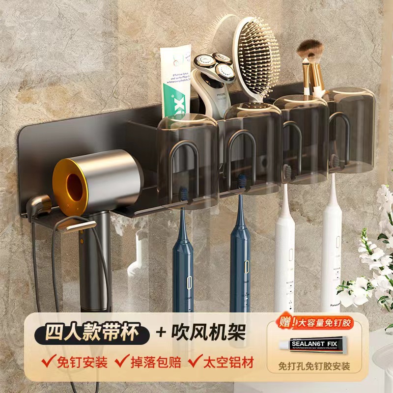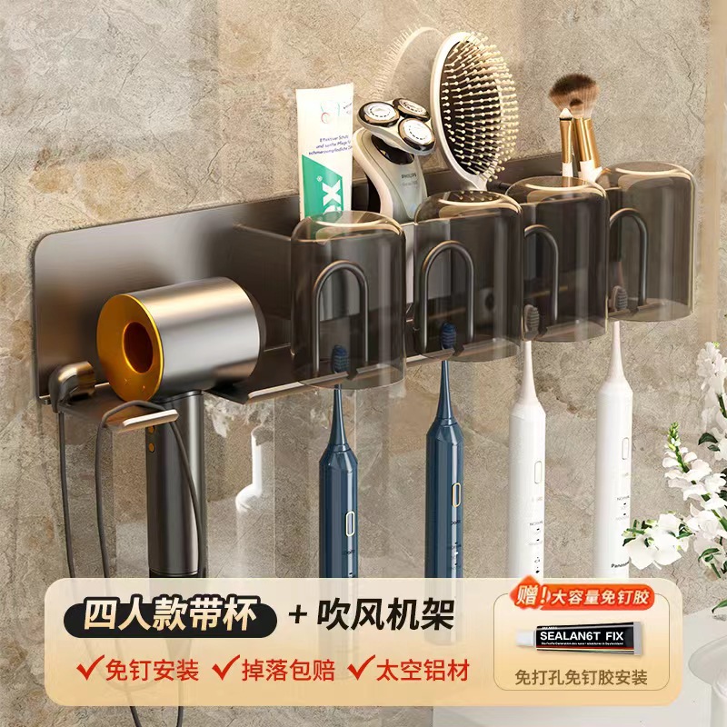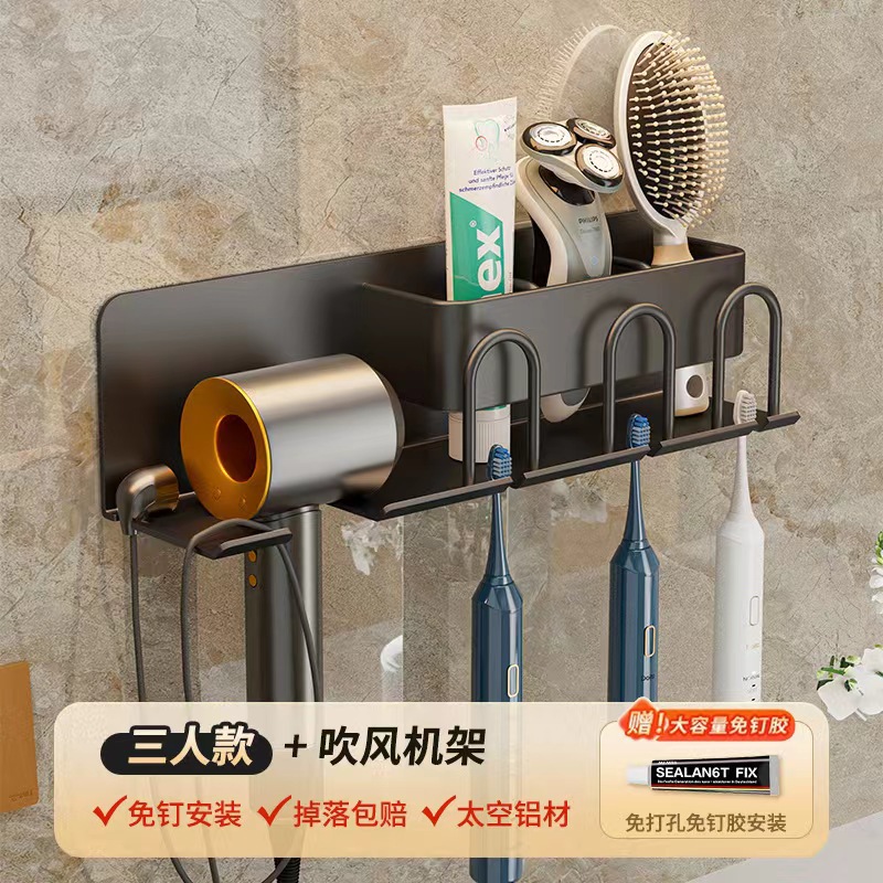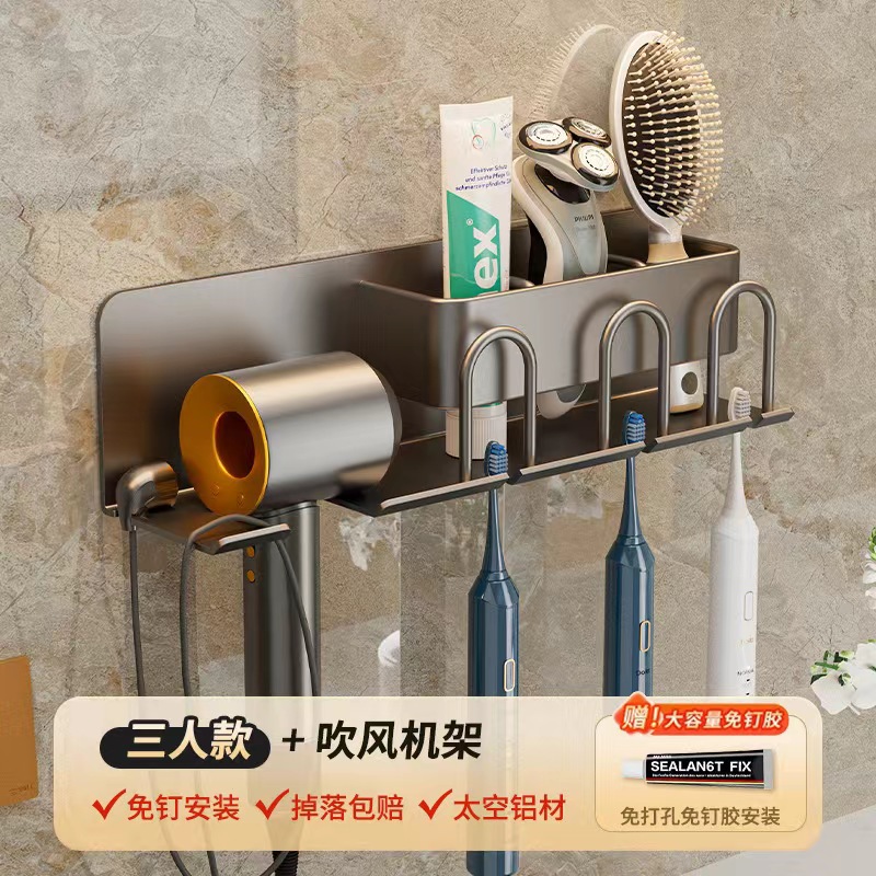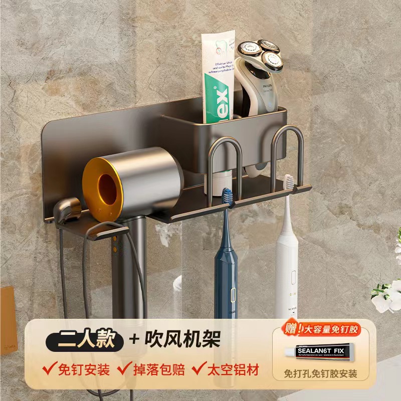 무타공 알루미늄 칫솔 거치대 욕실 헤어드라이어 수납 선반 양치컵 정리 벽걸이 선반