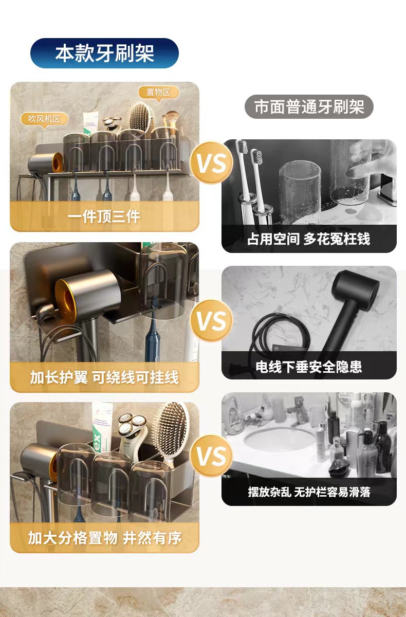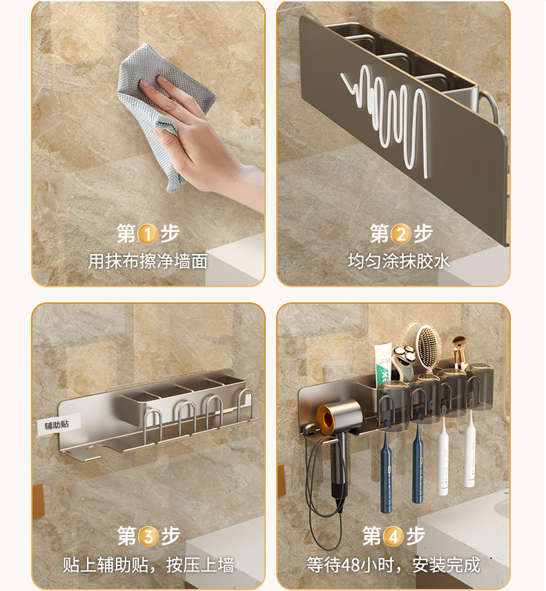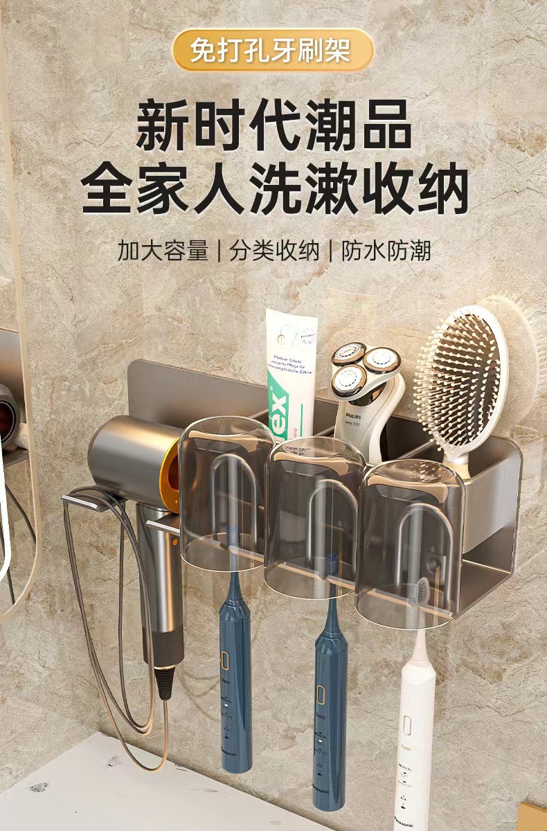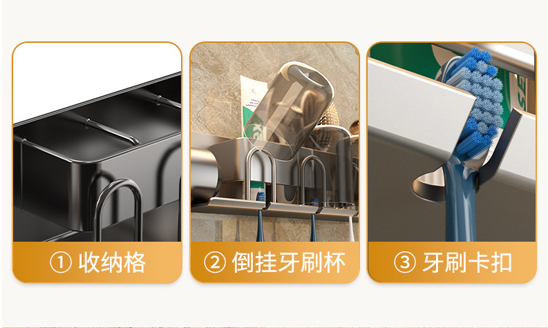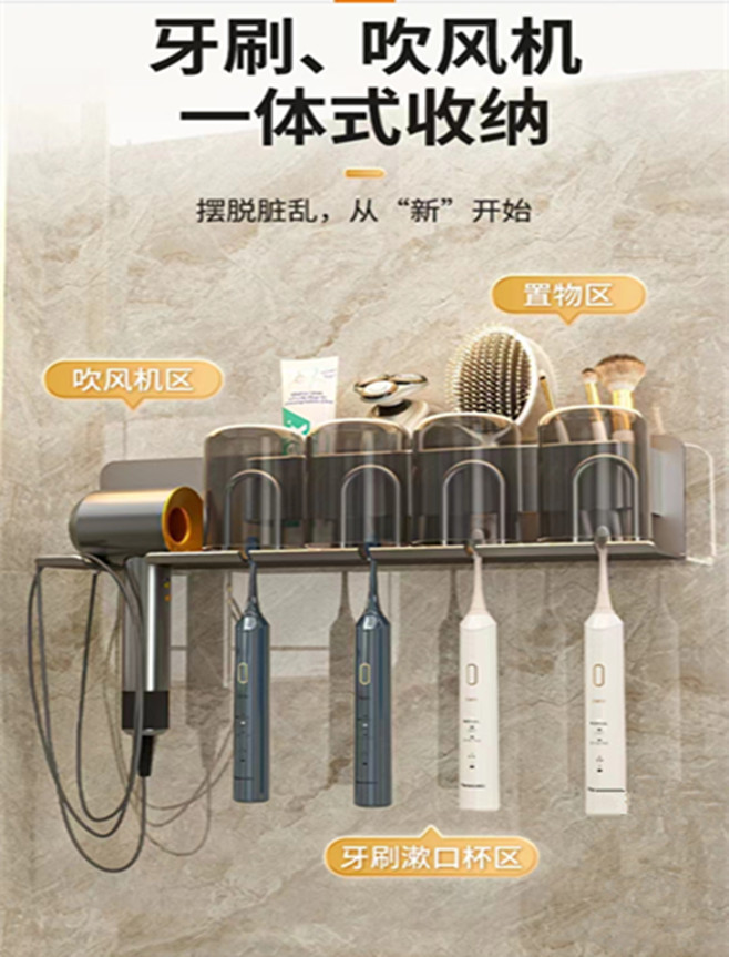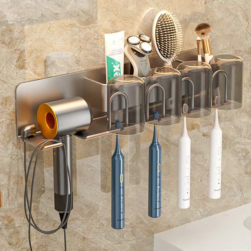 무타공 알루미늄 칫솔 거치대 욕실 헤어드라이어 수납 선반 양치컵 정리 벽걸이 선반