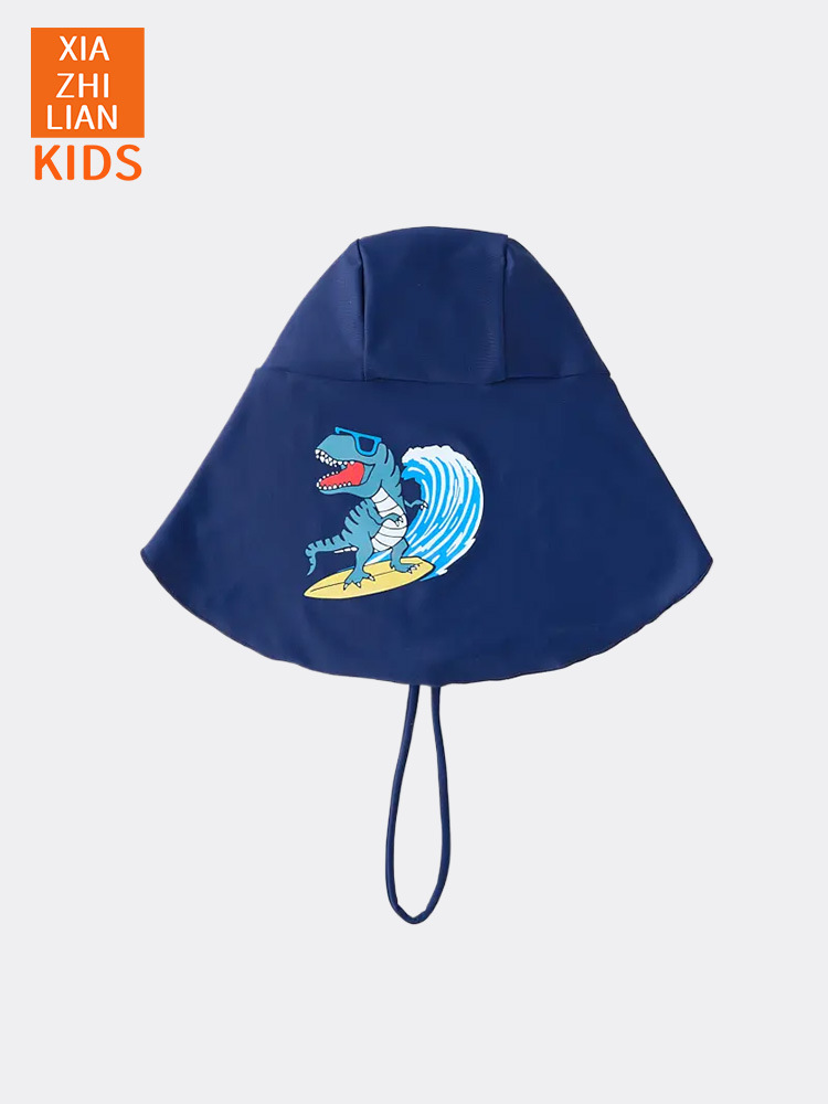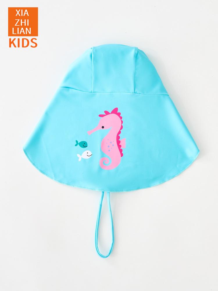 韩国潮范儿童防晒泳帽UPF50+速干男童女童沙滩护颈帽宝宝防风帽潮