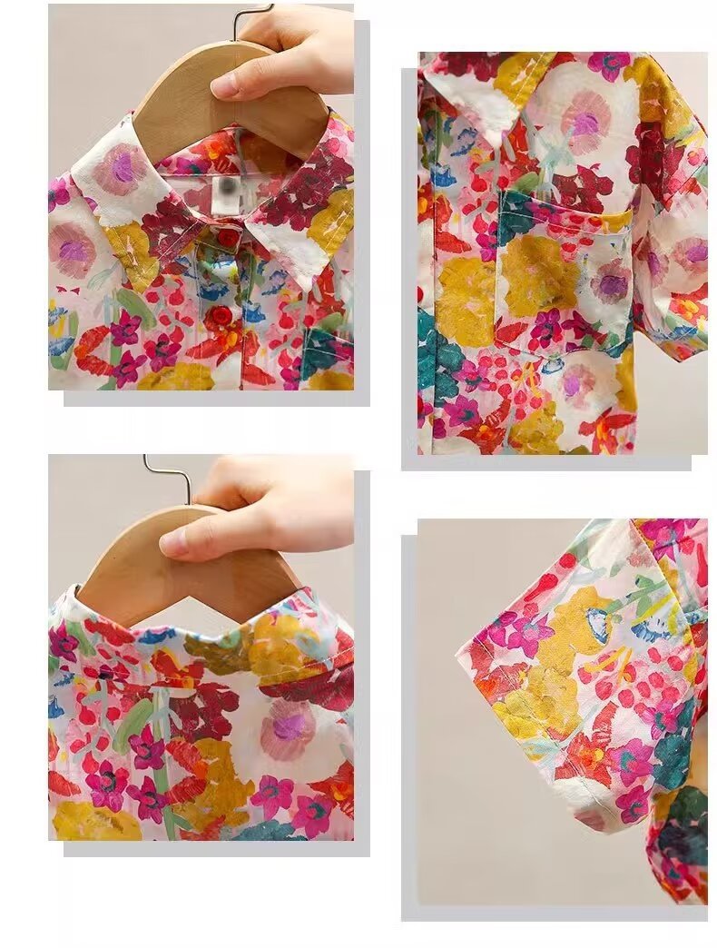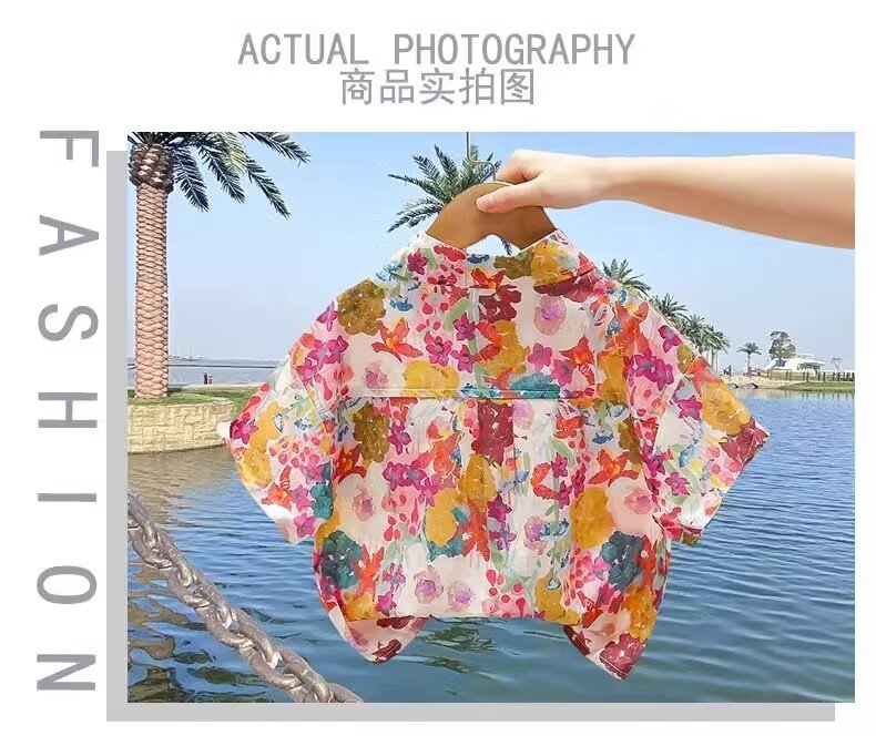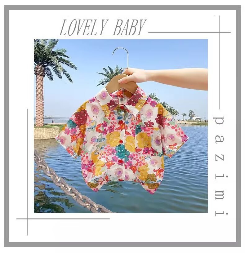 소년 여름 잘 생긴 반팔 셔츠 2025 새로운 스타일 어린이 거리 꽃 셔츠 아기 여름 반팔 얇은스토어 가기