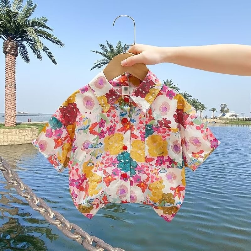 소년 여름 잘 생긴 반팔 셔츠 2025 새로운 스타일 어린이 거리 꽃 셔츠 아기 여름 반팔 얇은