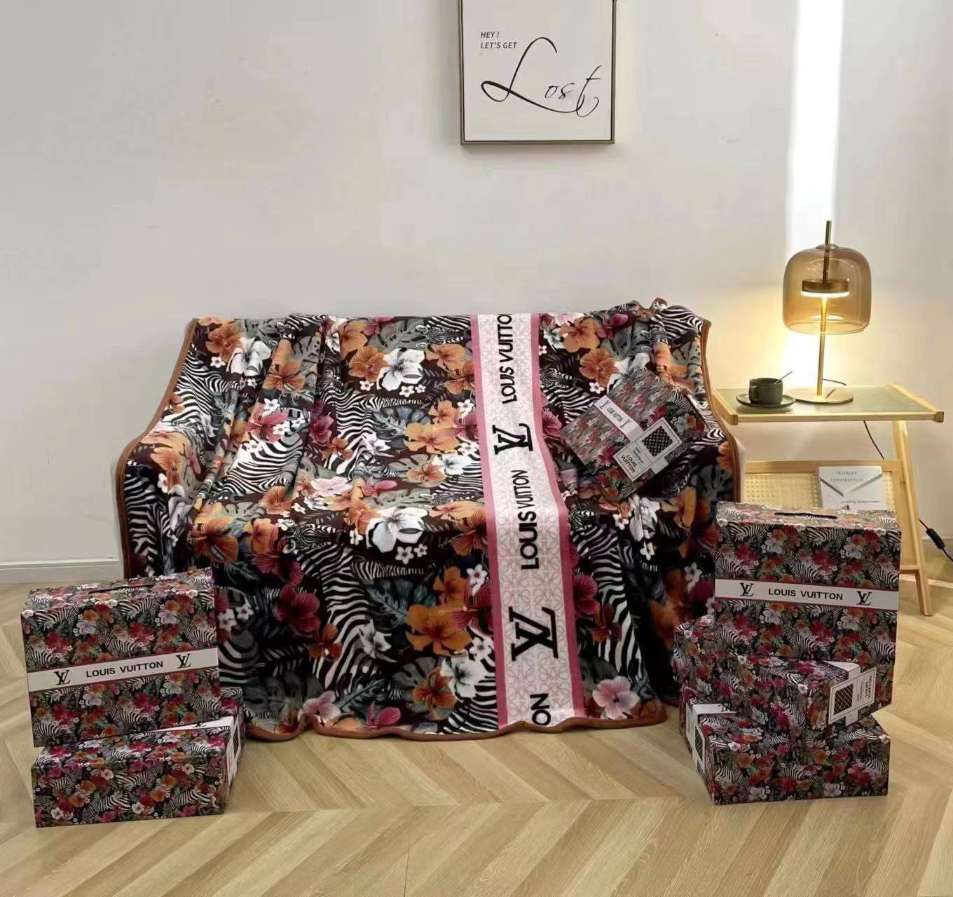 트렌디 한 브랜드 대외 무역 담요 담요 큰 브랜드 폭발 골드 마르텐 담요 사무실 점심 식사 담요 선물 상자