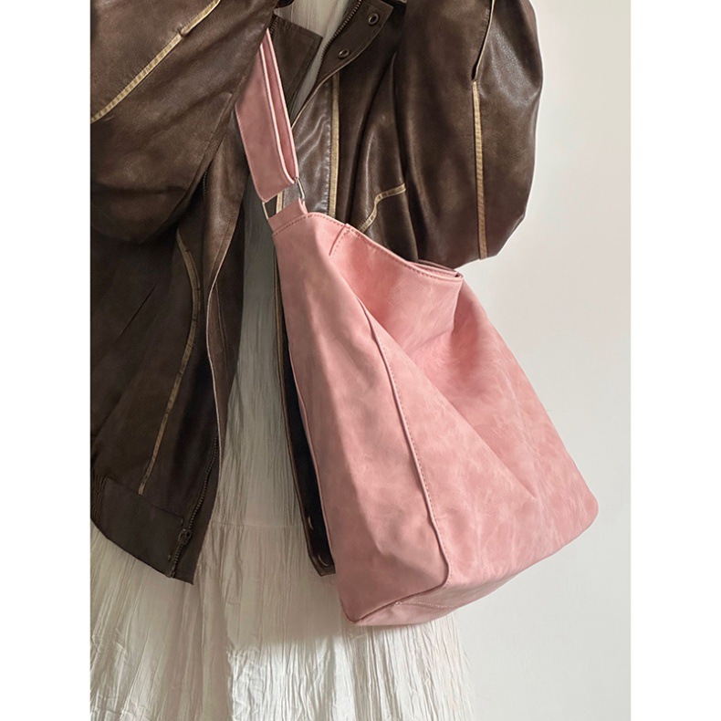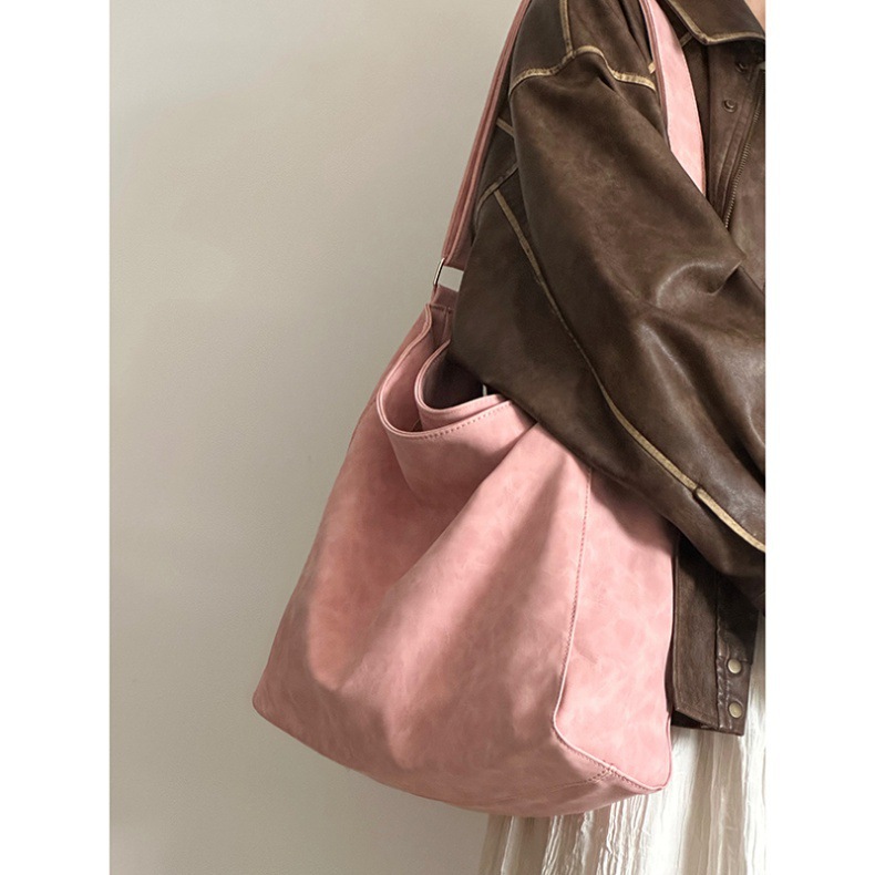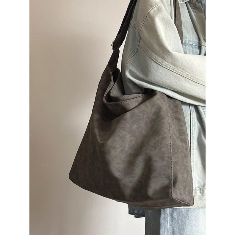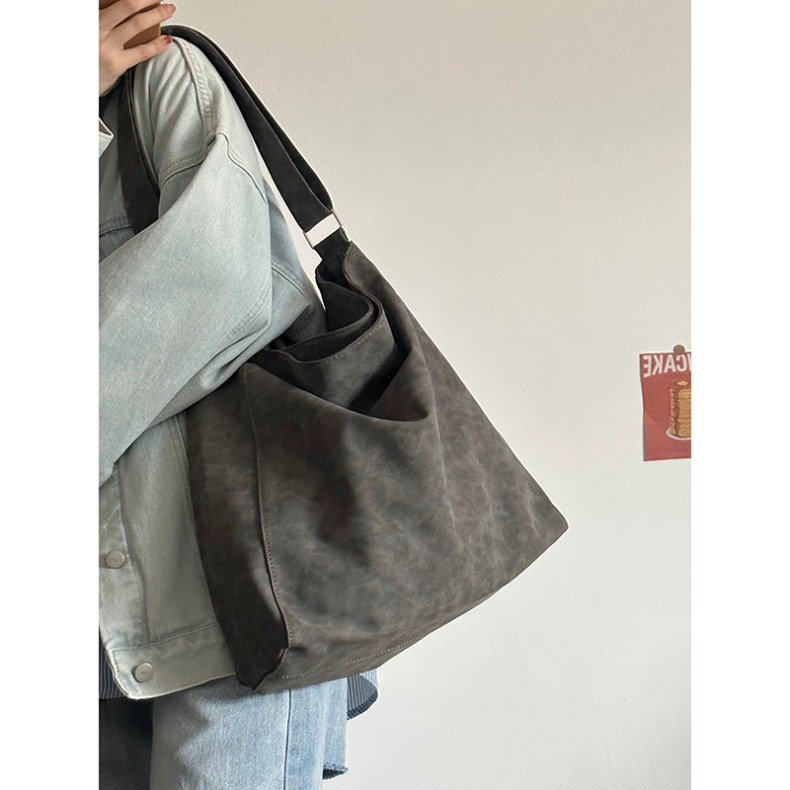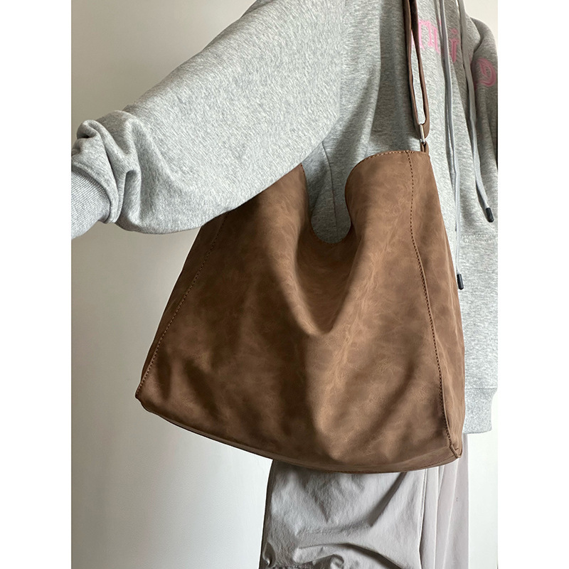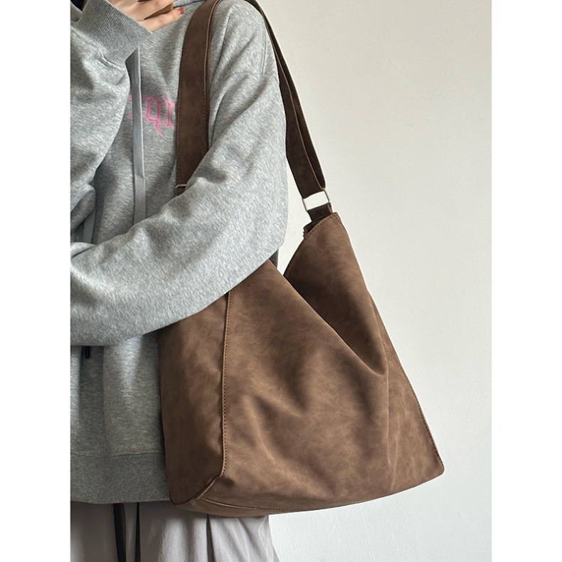 慵懒风大容量包包女2024新款学生上课通勤托特包美拉德单肩斜挎包