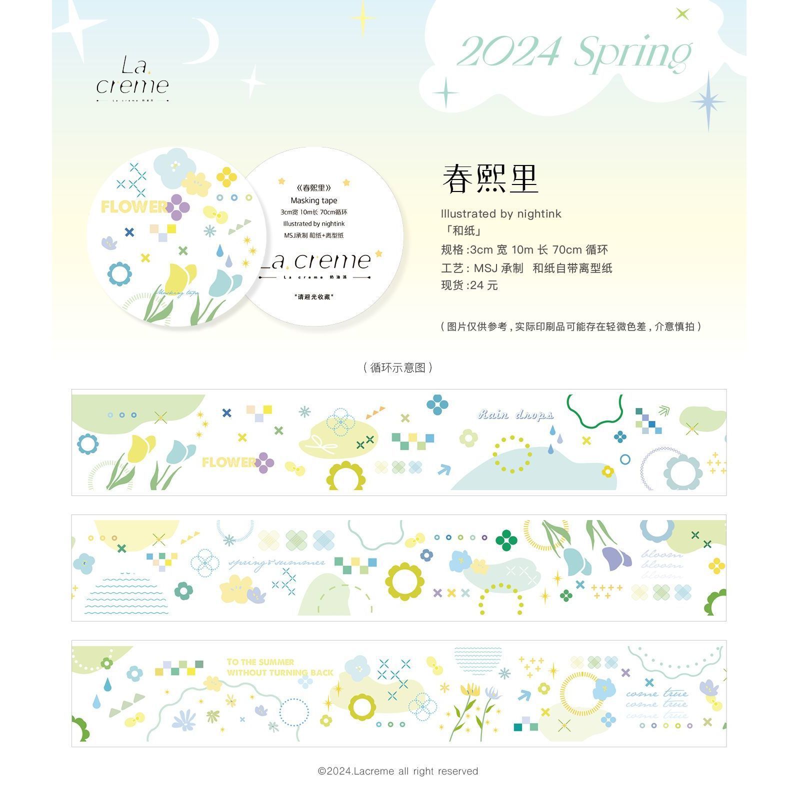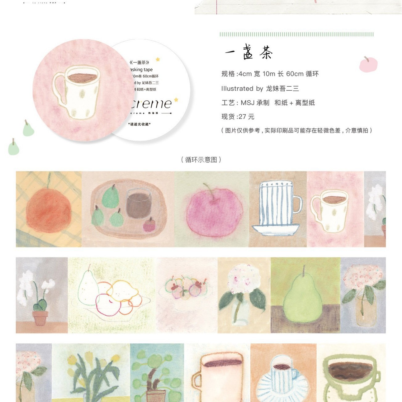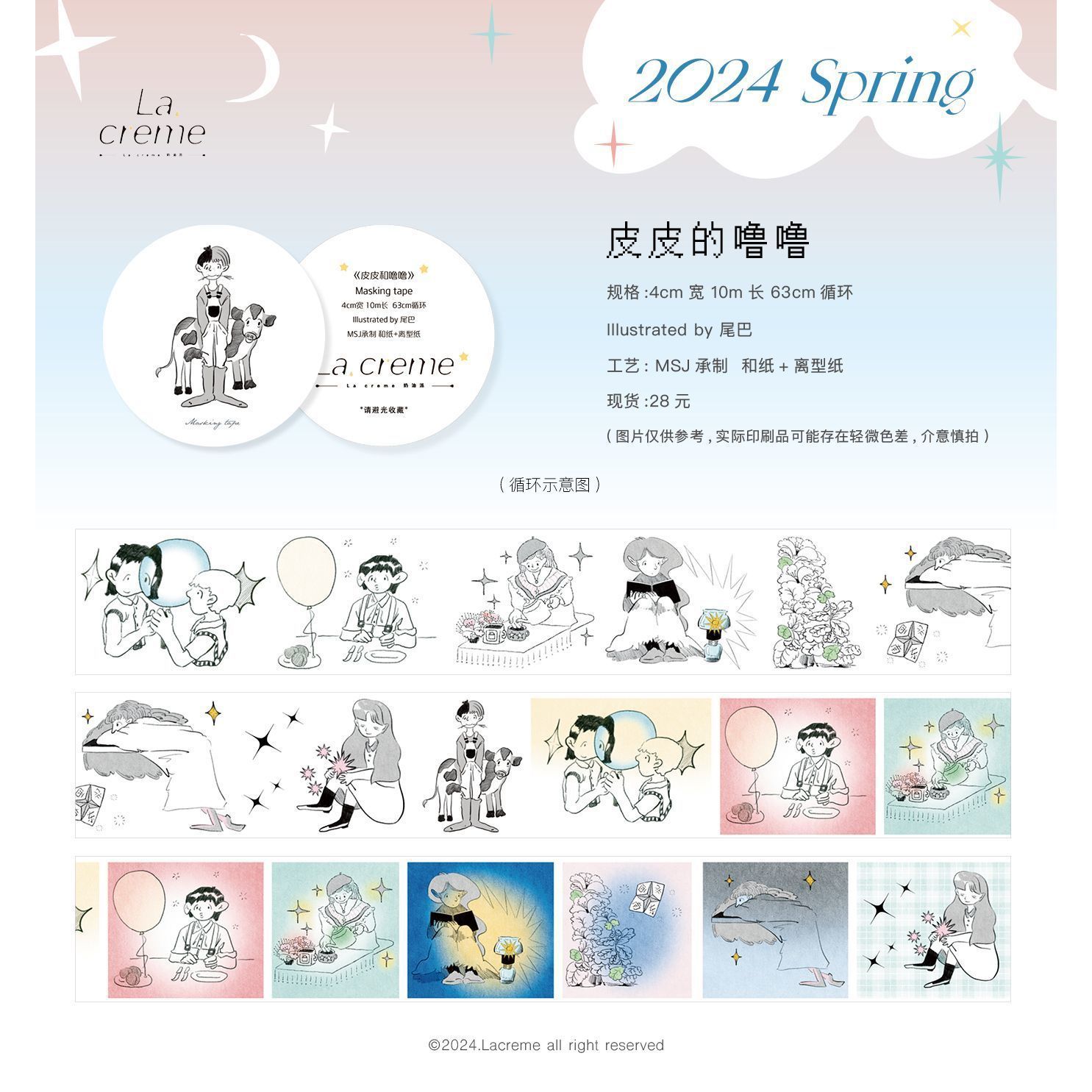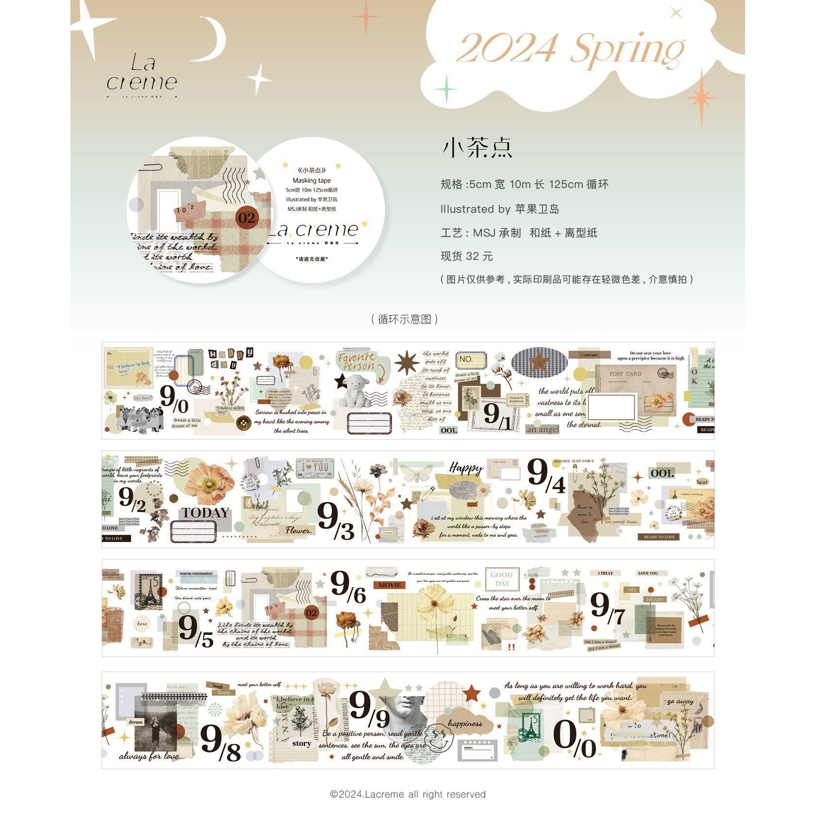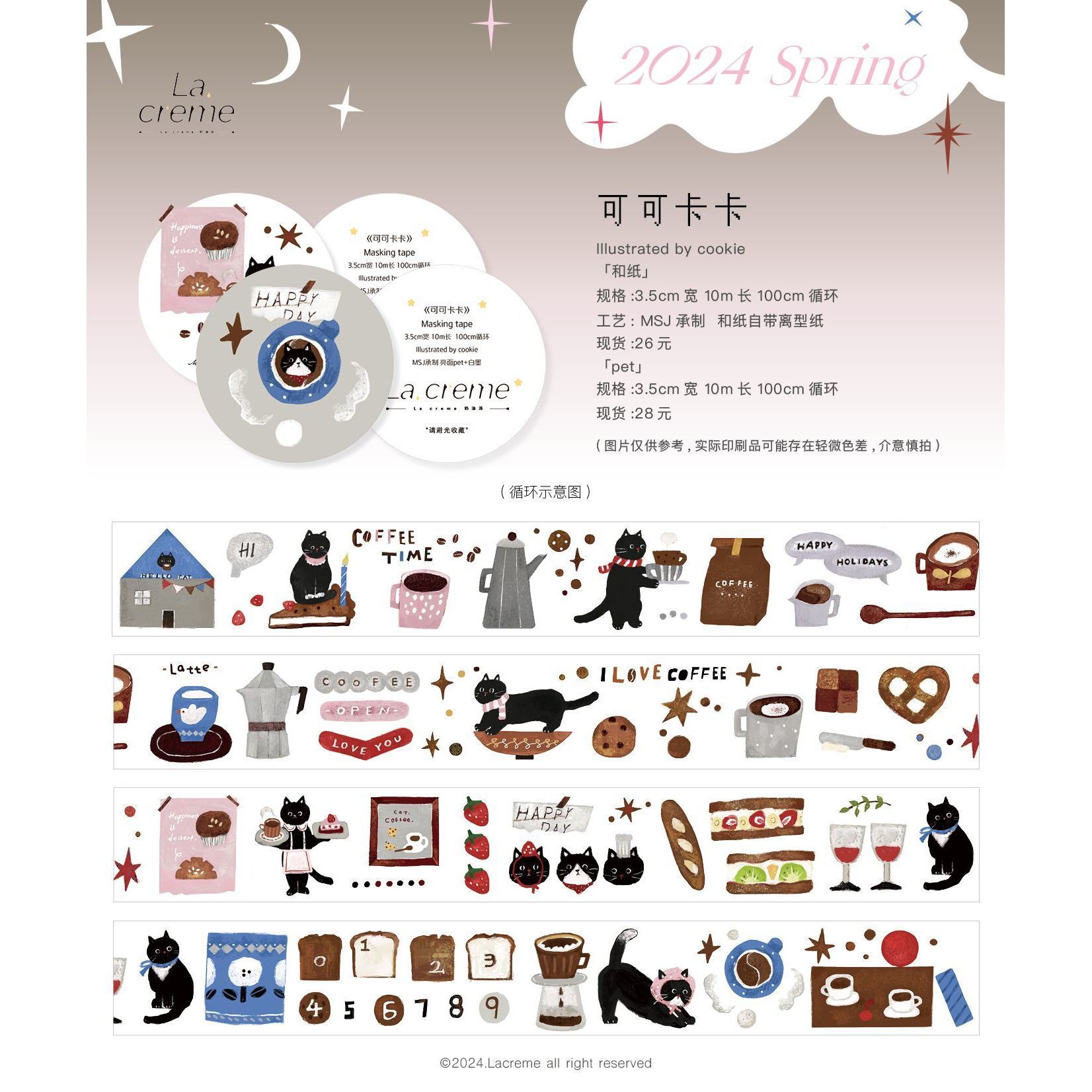 Meow pa Ji Lacreme 크림 파이 원본과 종이 테이프 봄 콜라주 장식 텍스트 귀여운 손 계정스토어 가기