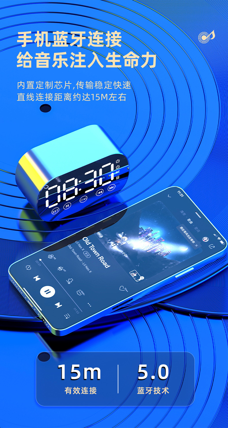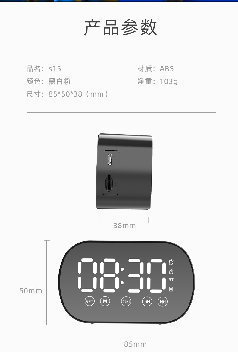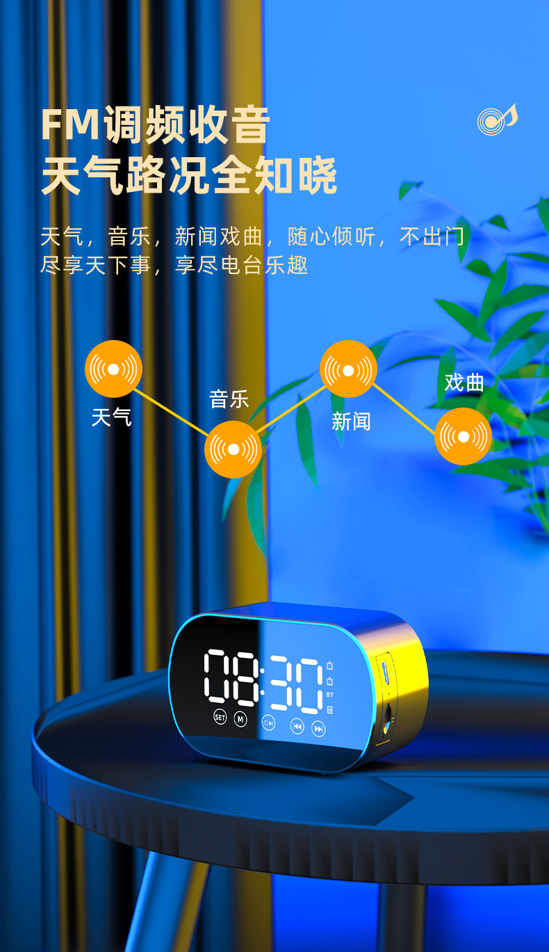 S15 공장 패트라이트 블루투스 스피커 가정용 알람시계 미니 선물용 오디오 서브우퍼 데스크탑 블루투스 스피커스토어 가기