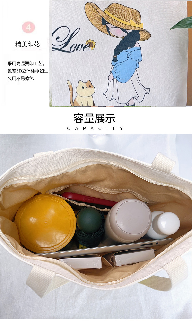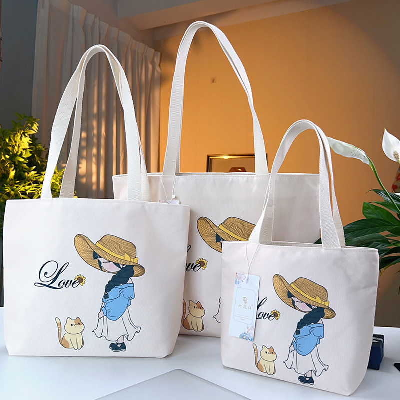 캔버스 가방 여성의 대용량 만화 귀여운 2024 새로운 어깨 핸드백 토트 가방 쇼핑백 핸드백 핸드백스토어 가기