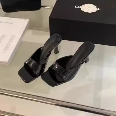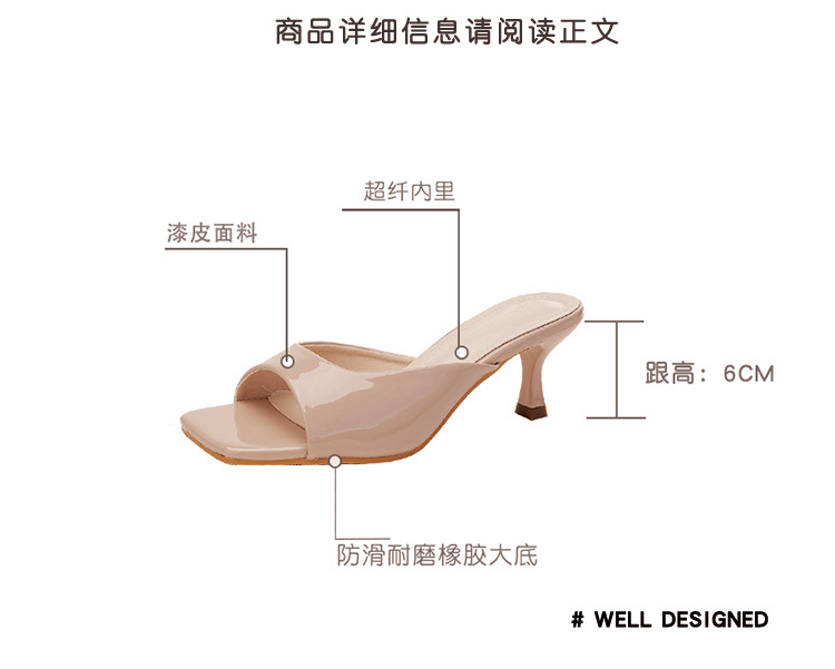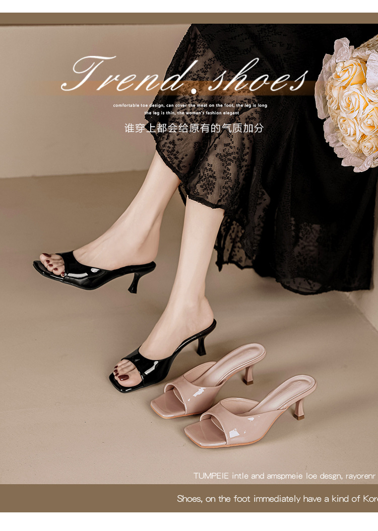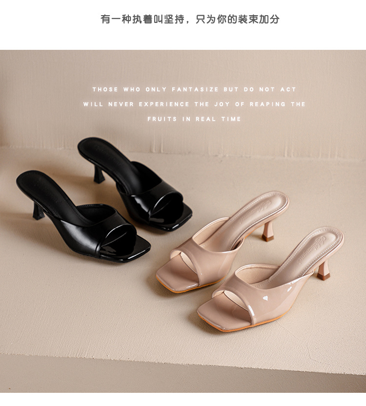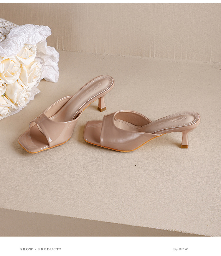 아름다운 하이힐 여성 여름 새로운 레트로 스퀘어 발가락 얇은 힐 누드 샌들 틈새 디자인 슬리퍼