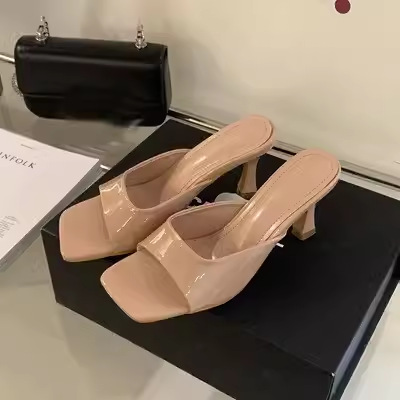 아름다운 하이힐 여성 여름 새로운 레트로 스퀘어 발가락 얇은 힐 누드 샌들 틈새 디자인 슬리퍼스토어 가기