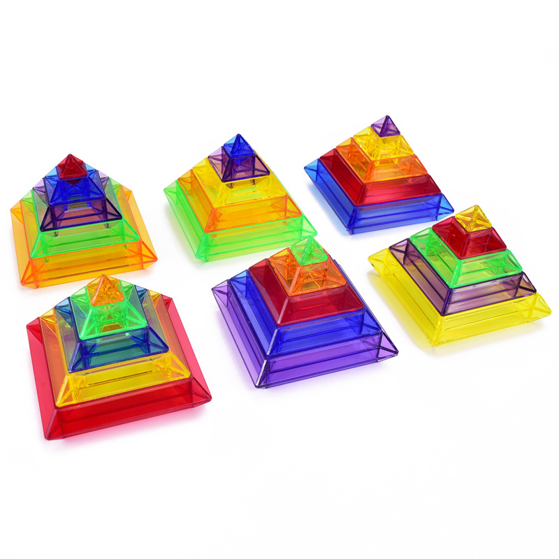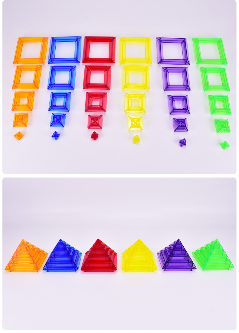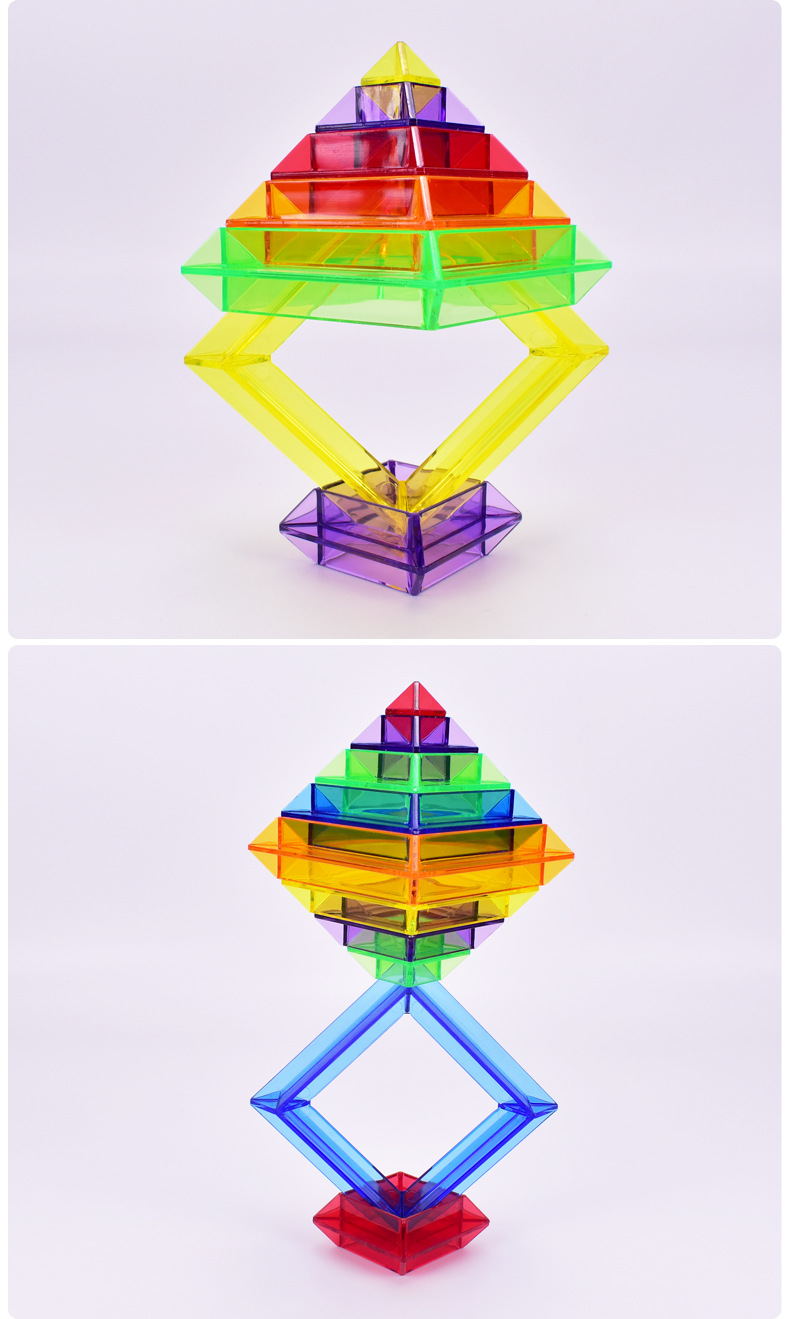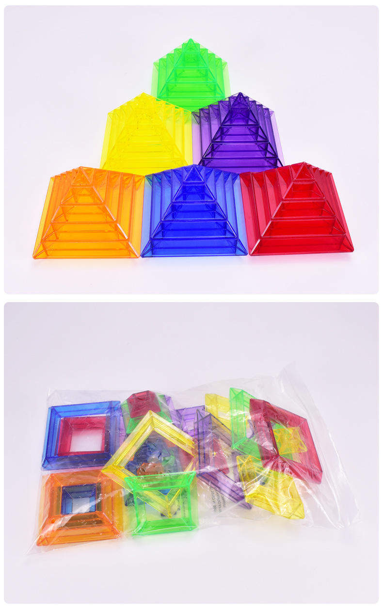국경 간 어린이 교육 장난감 색상 투명 피라미드 매직 타워 다이아몬드 빌딩 블록