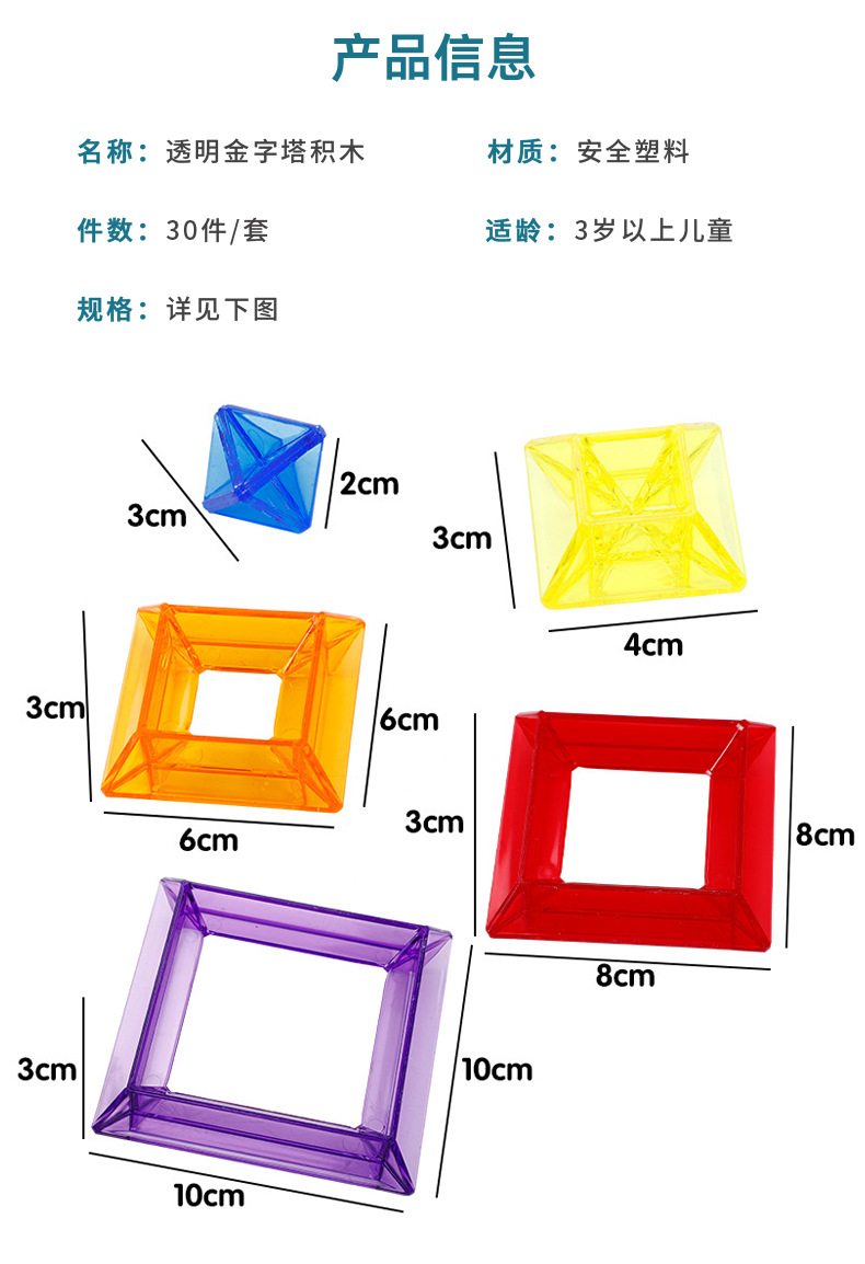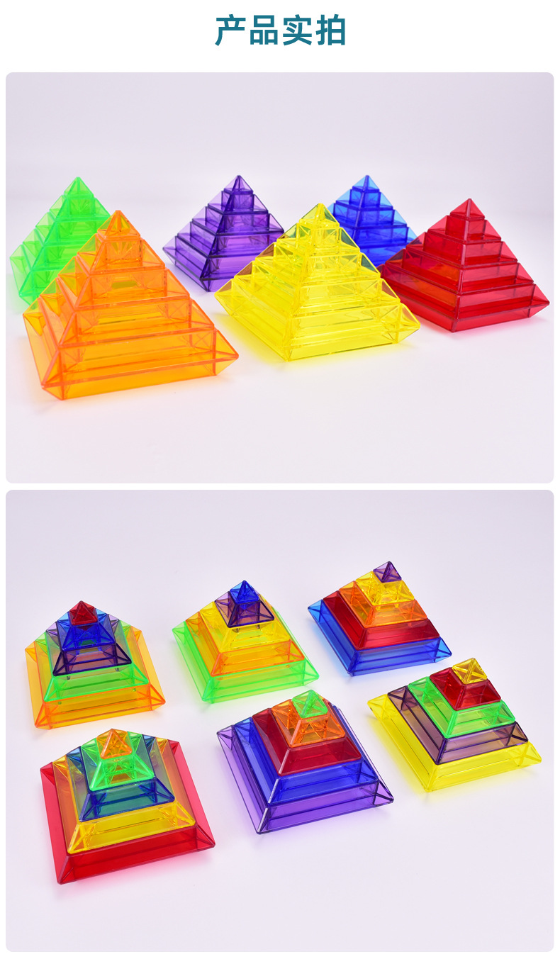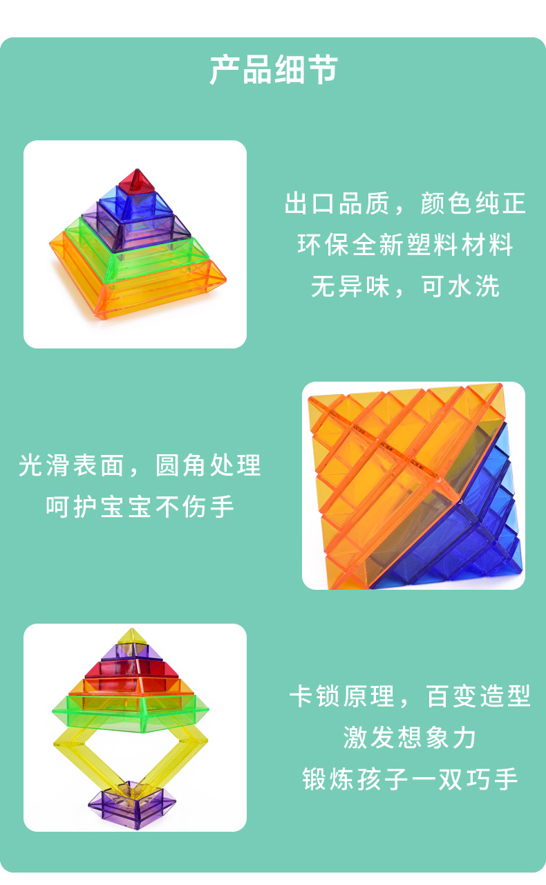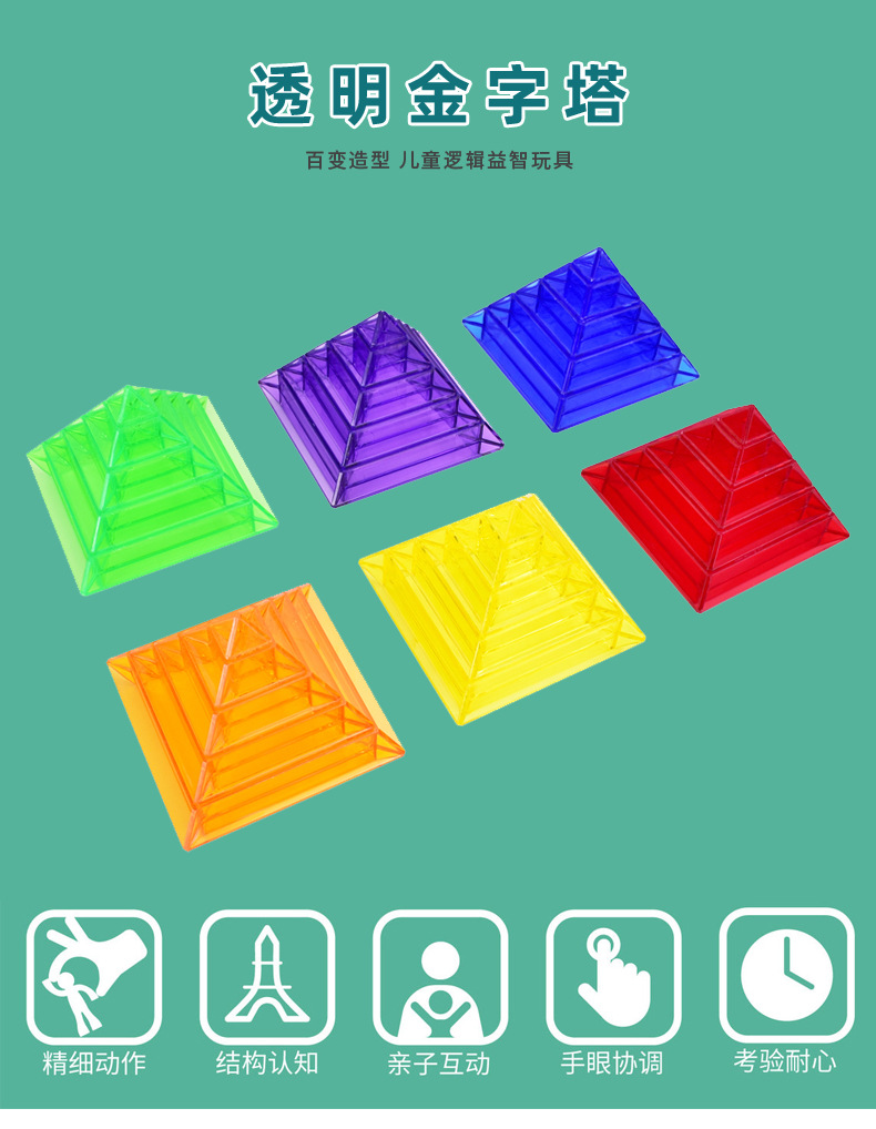 국경 간 어린이 교육 장난감 색상 투명 피라미드 매직 타워 다이아몬드 빌딩 블록