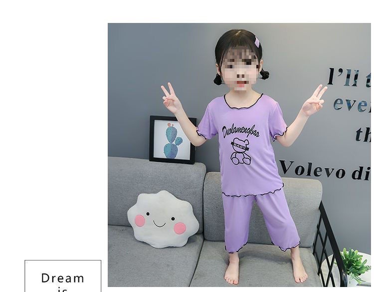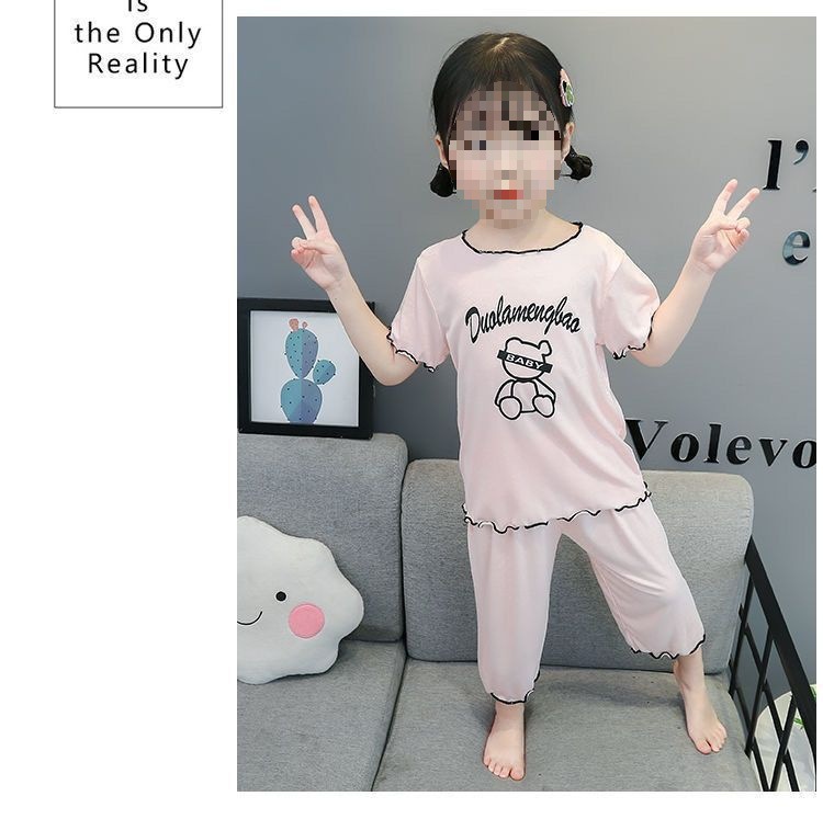 소녀 잠옷 여름 옷 외국식 세트 어린이 집 옷 아기 소녀 에어컨 세트 투피스 여름 0188A054스토어 가기