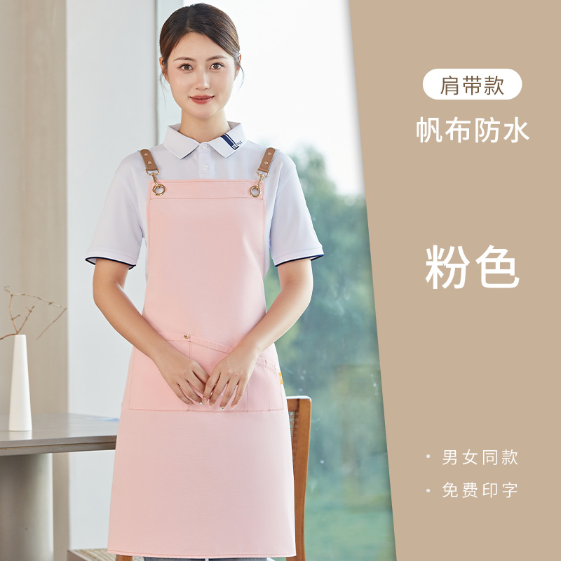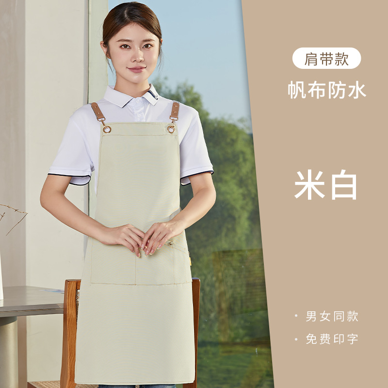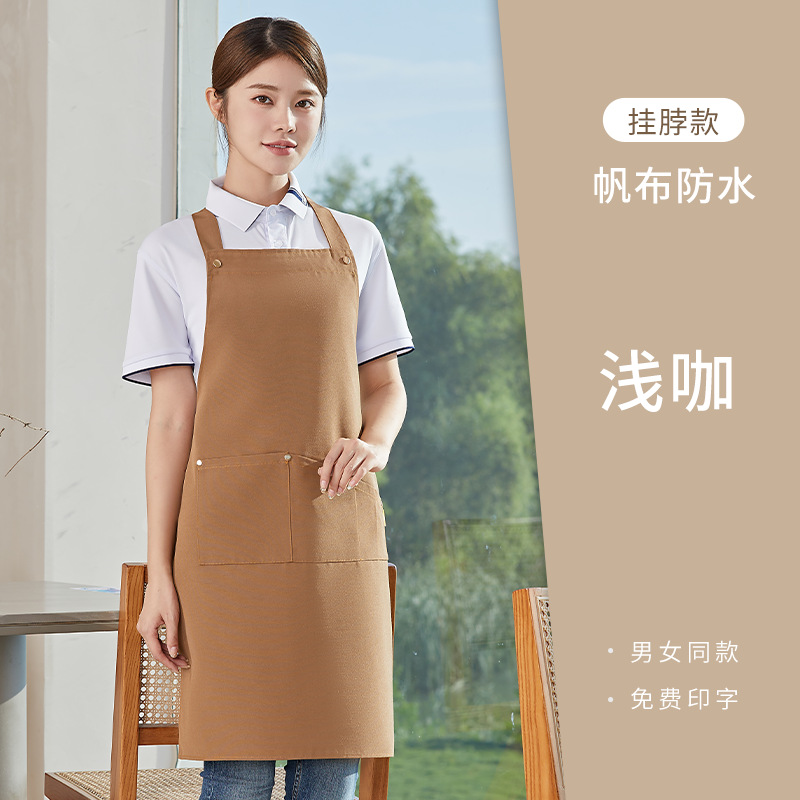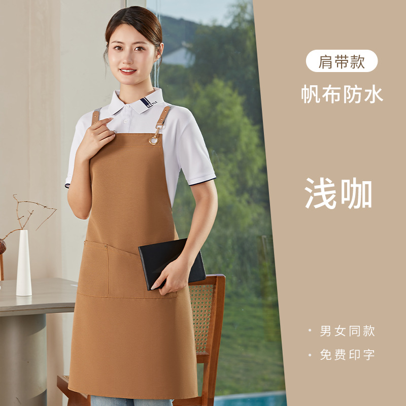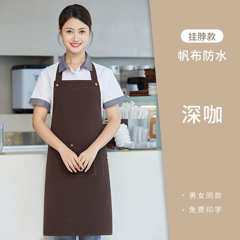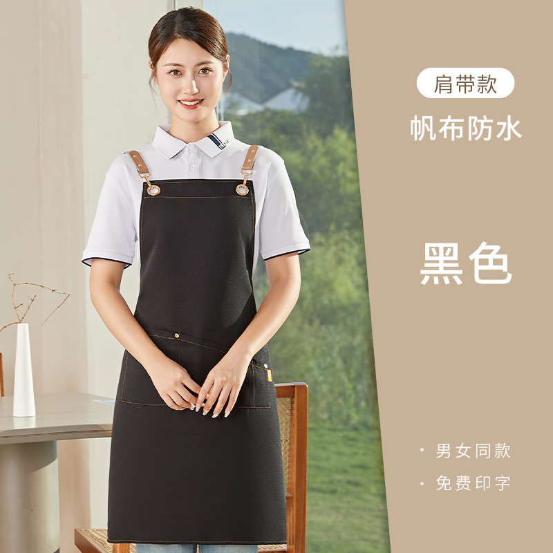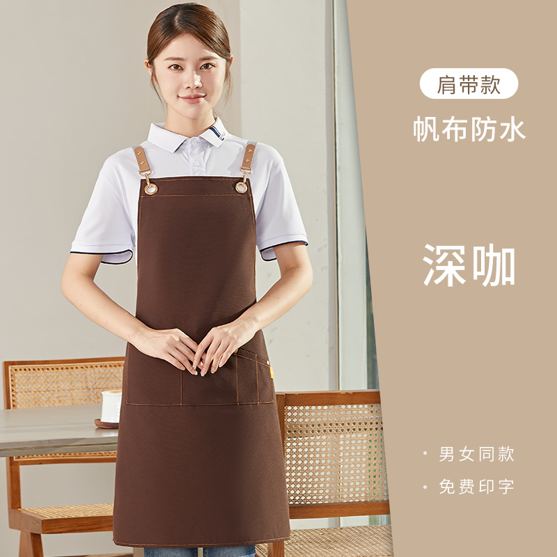 어깨 스트랩 방수 앞치마 맞춤형 로고 인쇄 케이터링 특별 레스토랑 밀크티 호텔 슈퍼마켓 캔버스 작업복 여성용스토어 가기