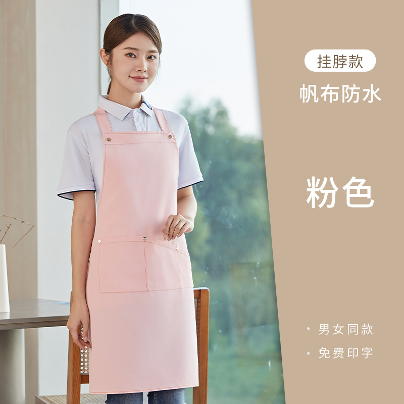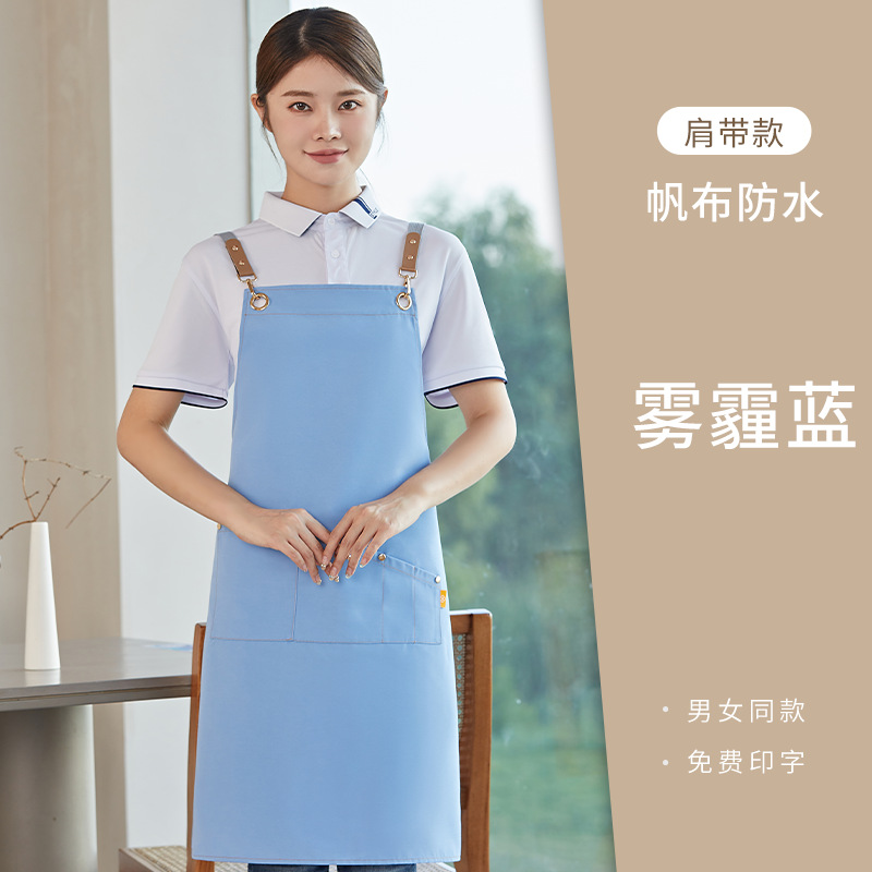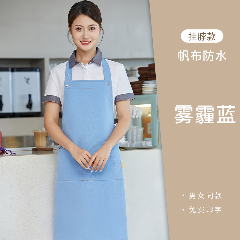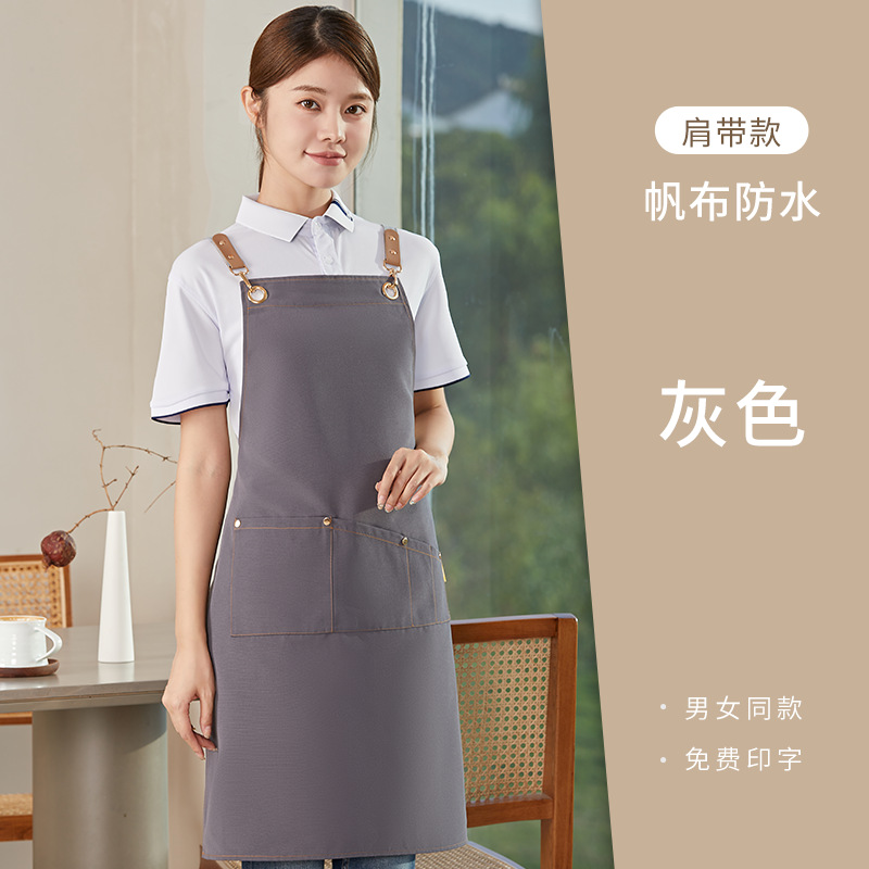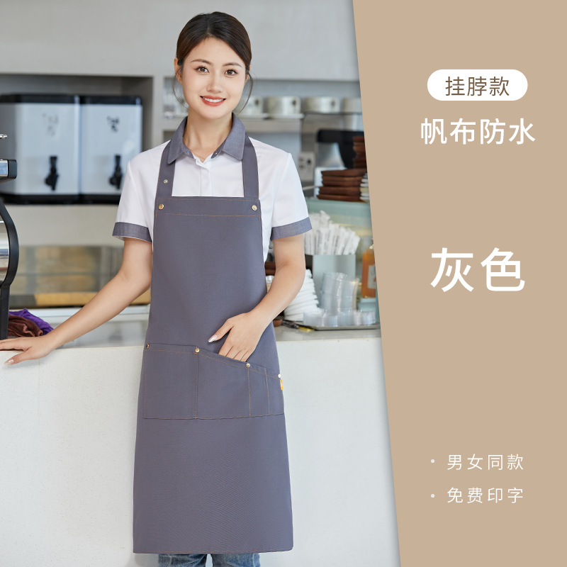 어깨 스트랩 방수 앞치마 맞춤형 로고 인쇄 케이터링 특별 레스토랑 밀크티 호텔 슈퍼마켓 캔버스 작업복 여성용