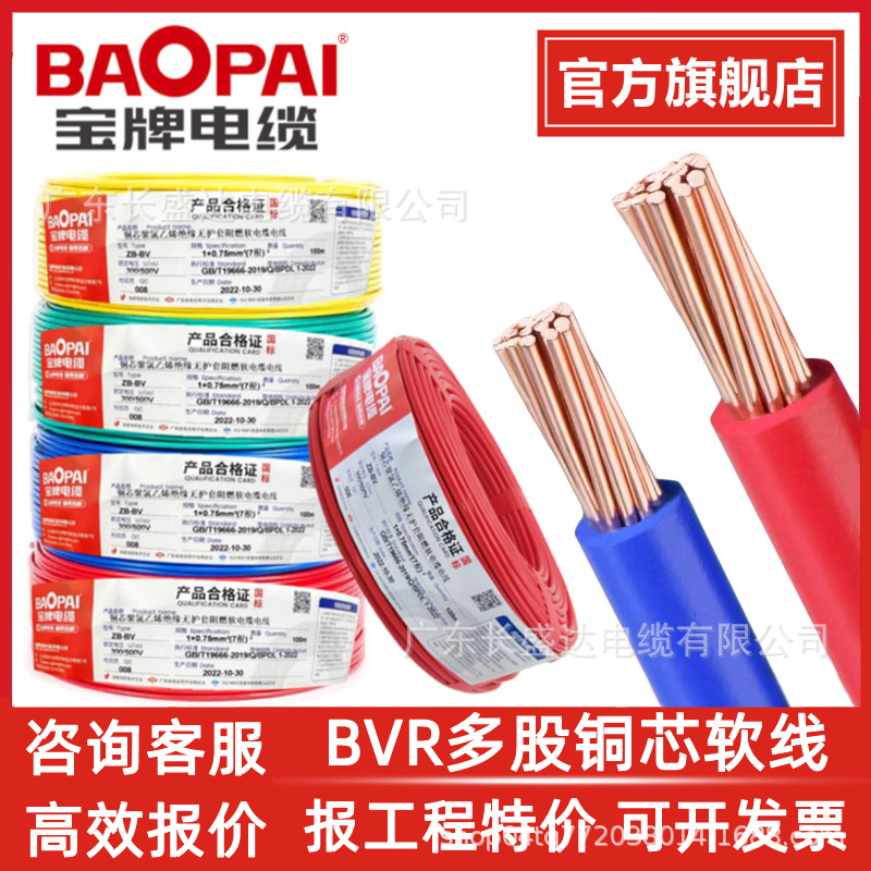 국가 표준 난연 순수 구리 멀티 스트랜드 유연한 와이어 ZC-BVR1.5/2.5/4/6/10 바오 브랜드 케이블 홈 장식 와이어스토어 가기