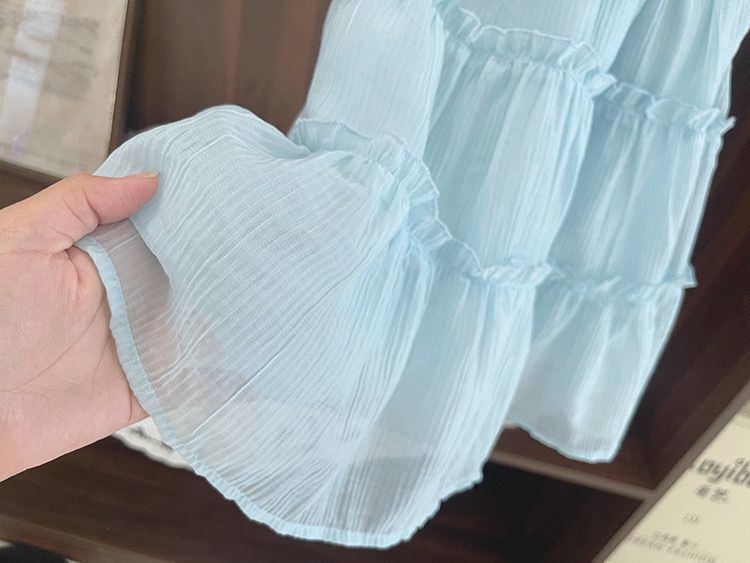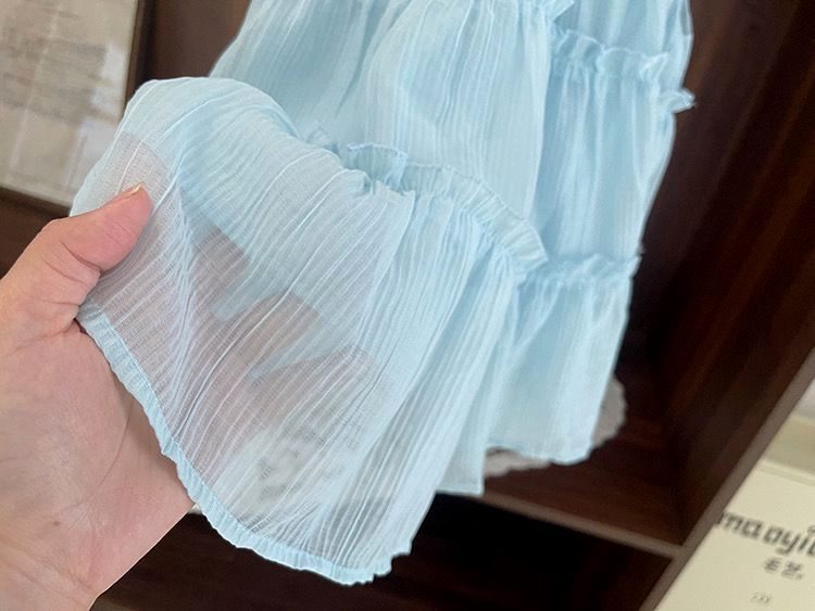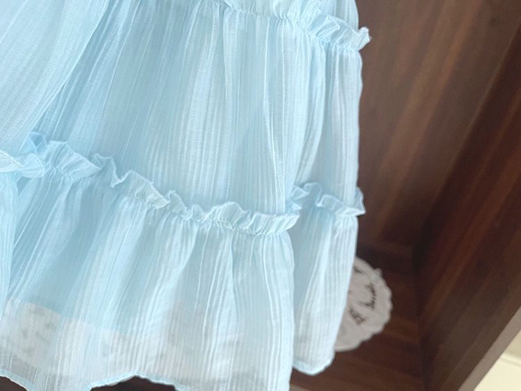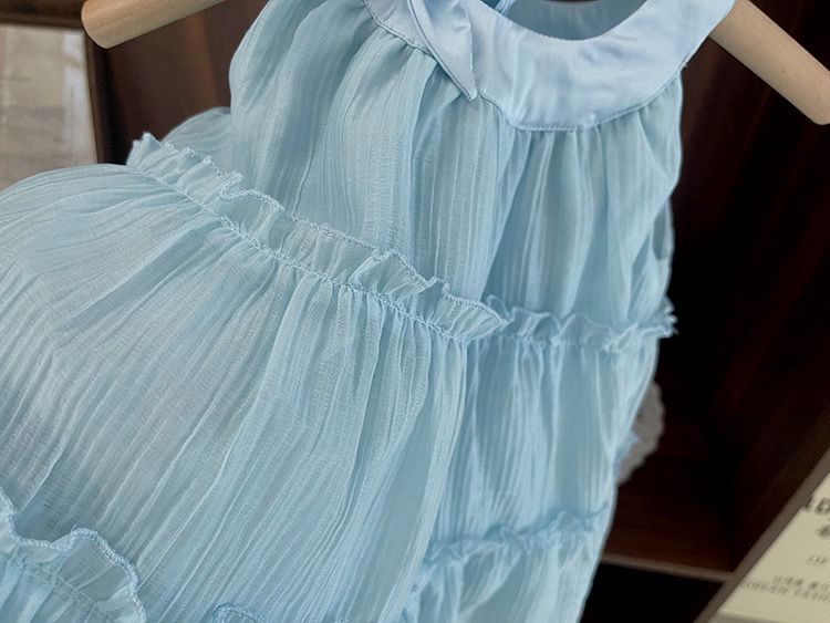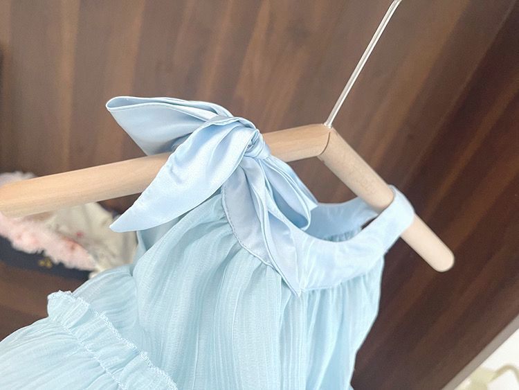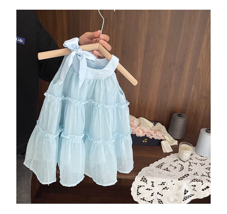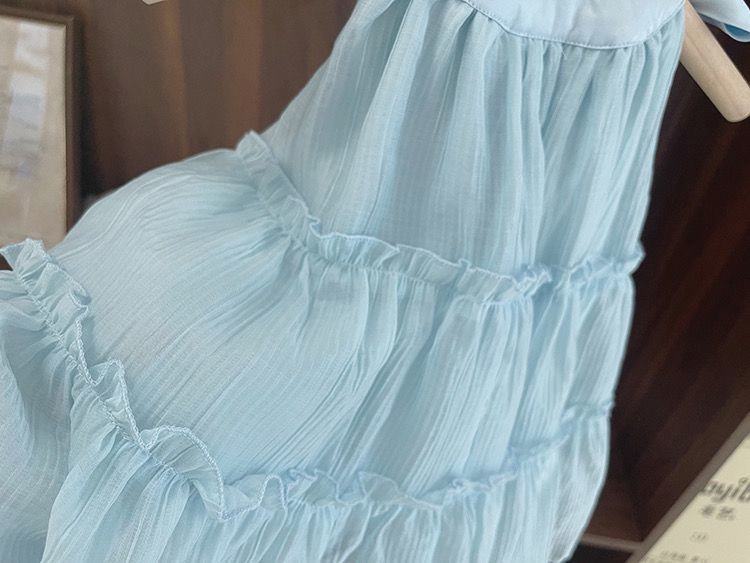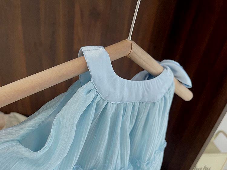 아기 공주 원피스 소녀의 여름 쉬폰 원피스 2024 달콤한 새로운 민소매 스트랩 스타일리스트 조끼 스커트스토어 가기
