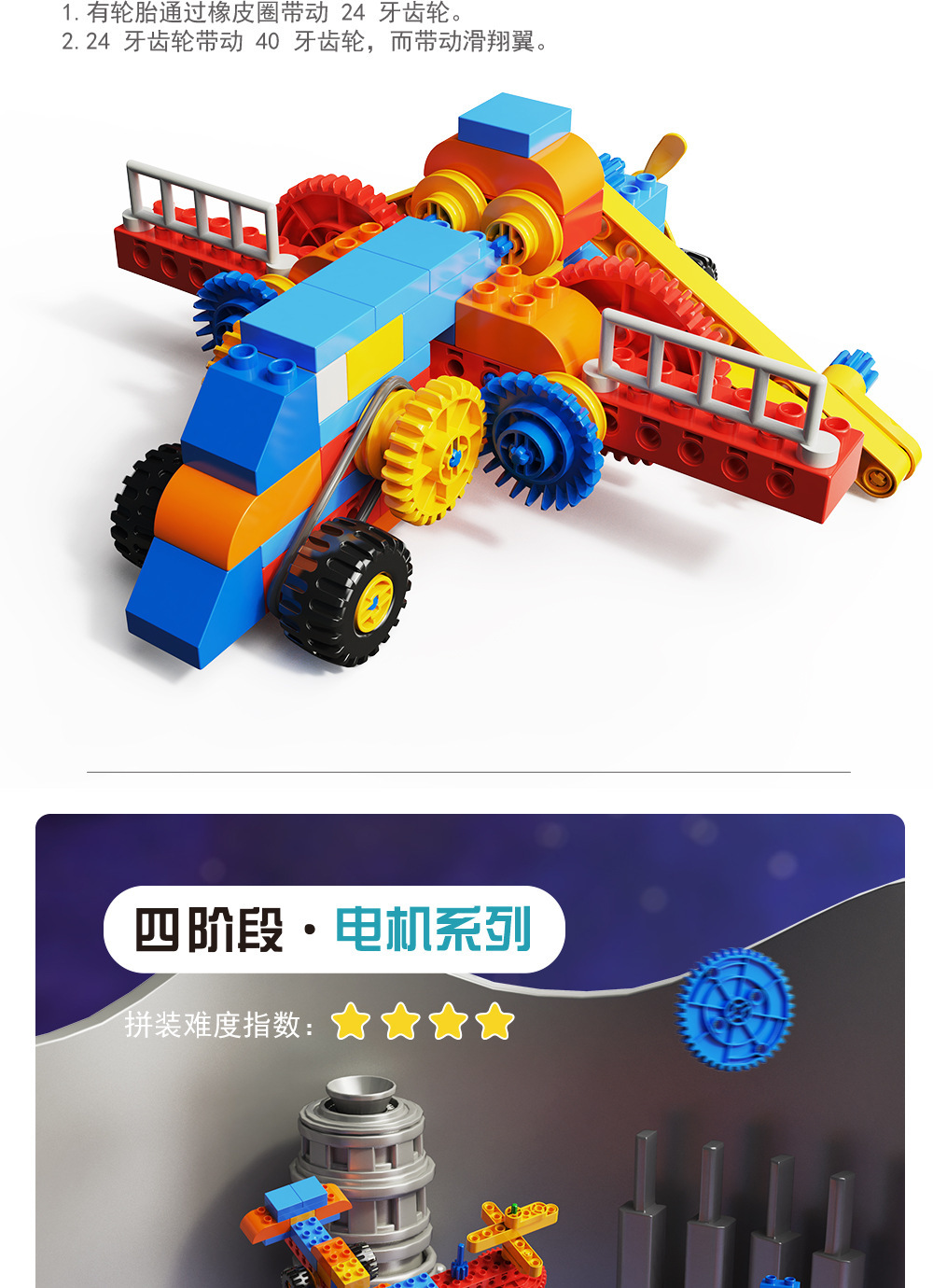 • 원격 제어 모터 단계 1-3 [300 입자, 2 바닥 판, 2 어린이