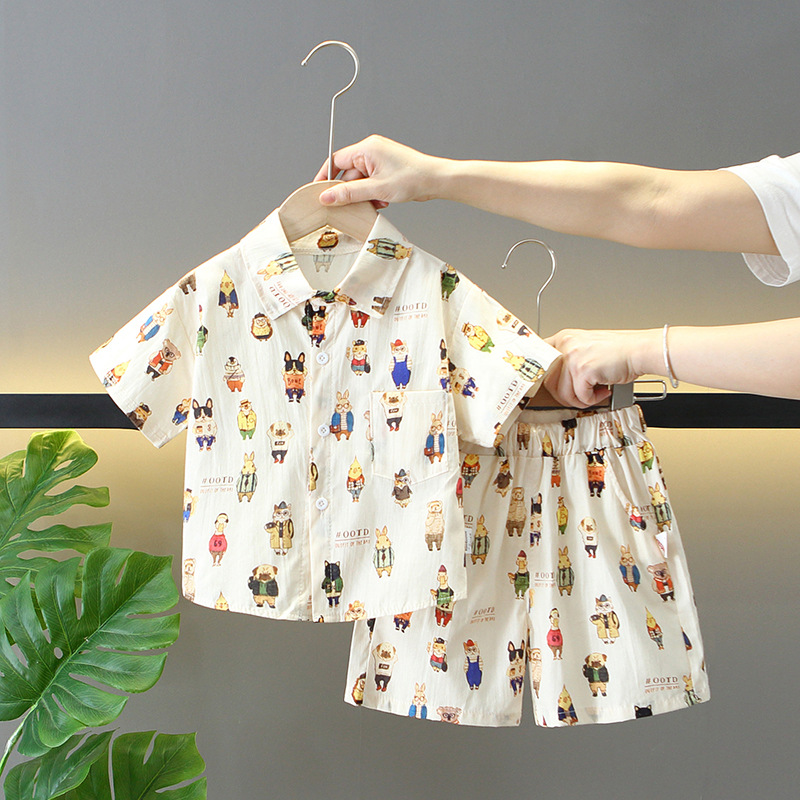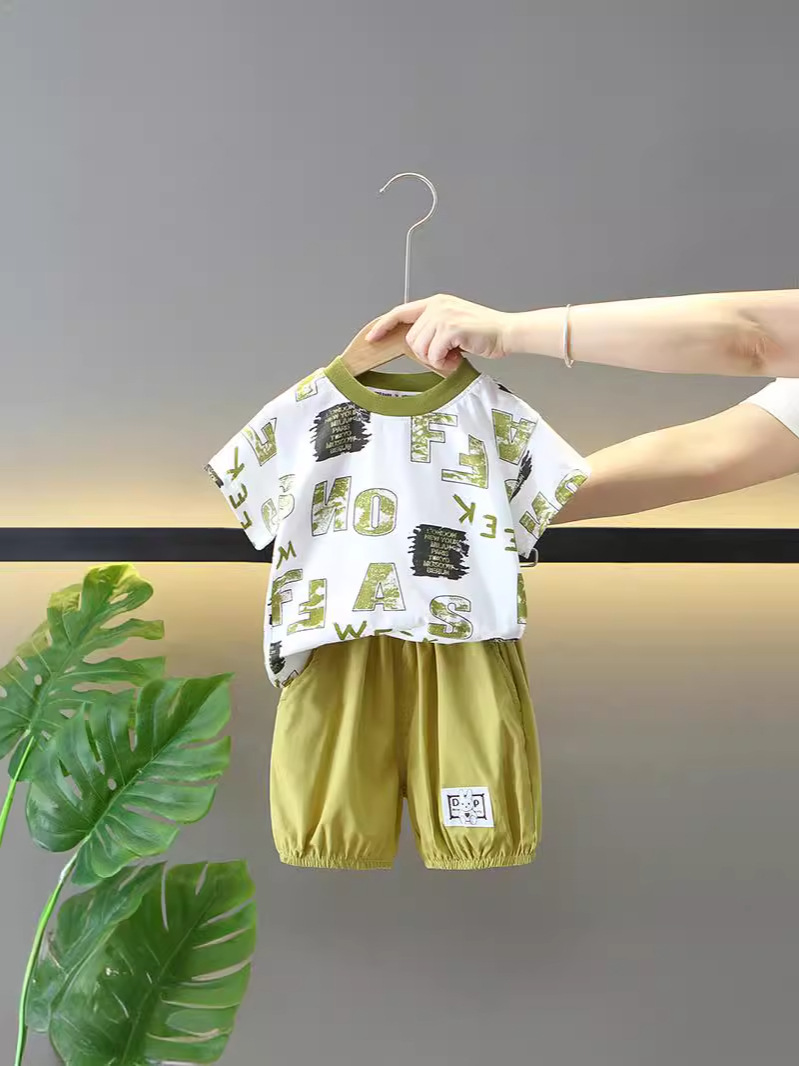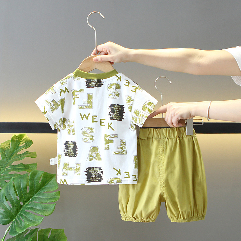 남자들의 여름 반팔 세트 2024 새로운 유행 어린이 아기 옷 아기 어린이 유행 잘 생긴 투피스 세트스토어 가기