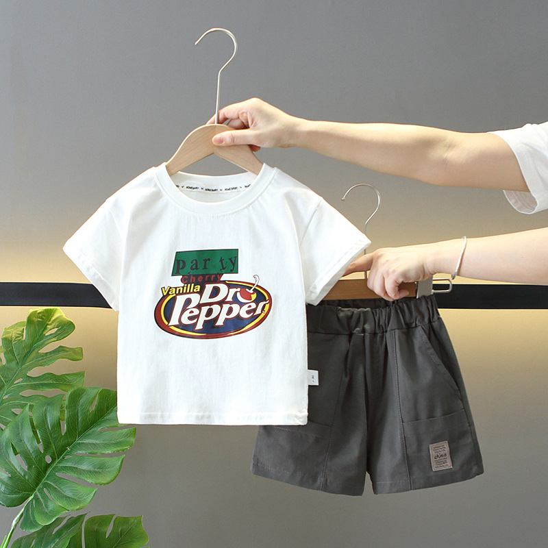 남자들의 여름 반팔 세트 2024 새로운 유행 어린이 아기 옷 아기 어린이 유행 잘 생긴 투피스 세트