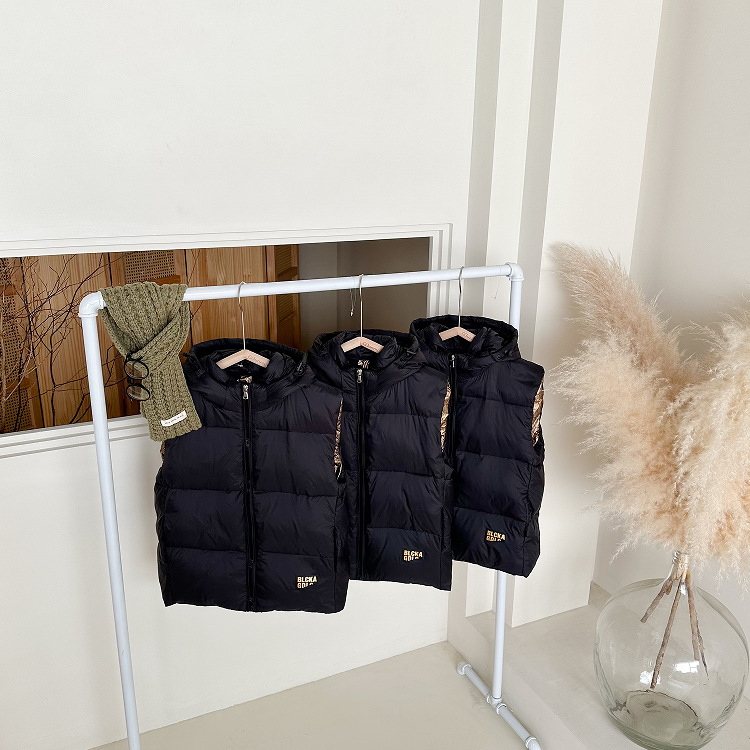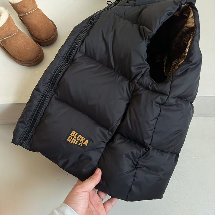 어린이용 깃털 조끼, 블랙 골드 조끼, 겨울용 남아 여아 중대형 어린이용 보온 두꺼운 조끼, 내외부 착용 가능, 배송 대행스토어 가기