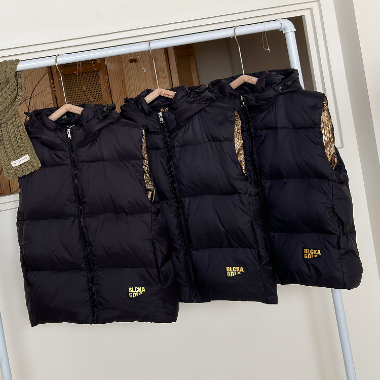 어린이용 깃털 조끼, 블랙 골드 조끼, 겨울용 남아 여아 중대형 어린이용 보온 두꺼운 조끼, 내외부 착용 가능, 배송 대행