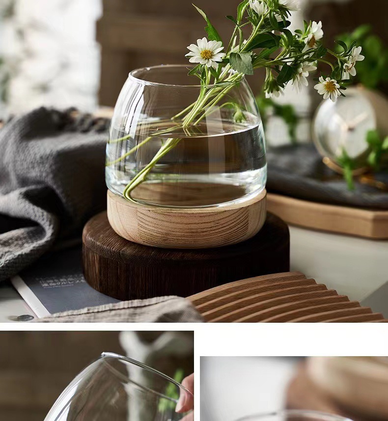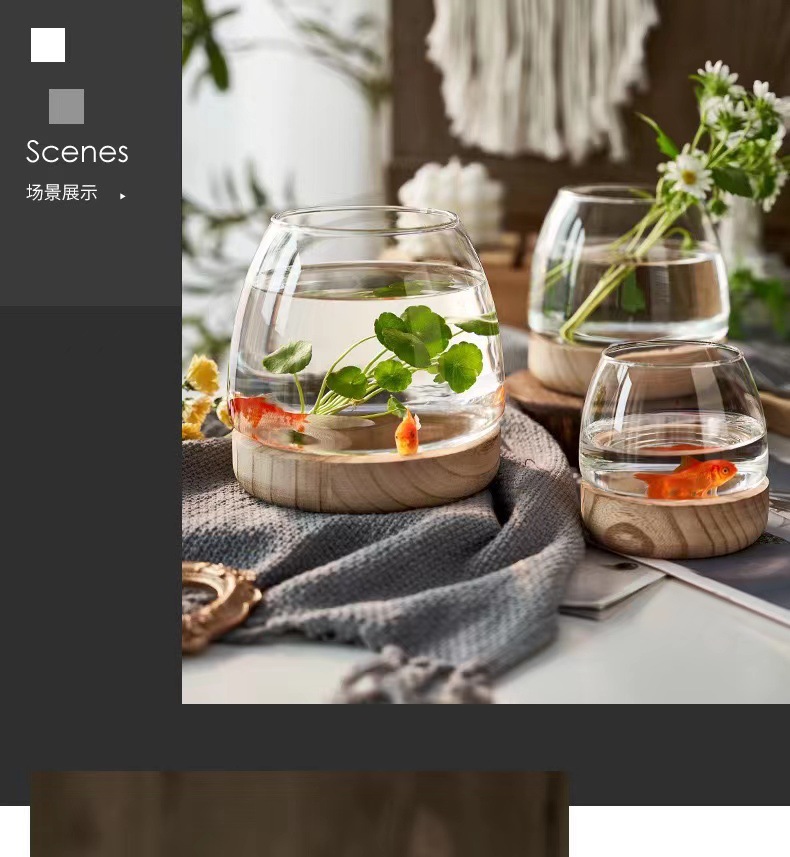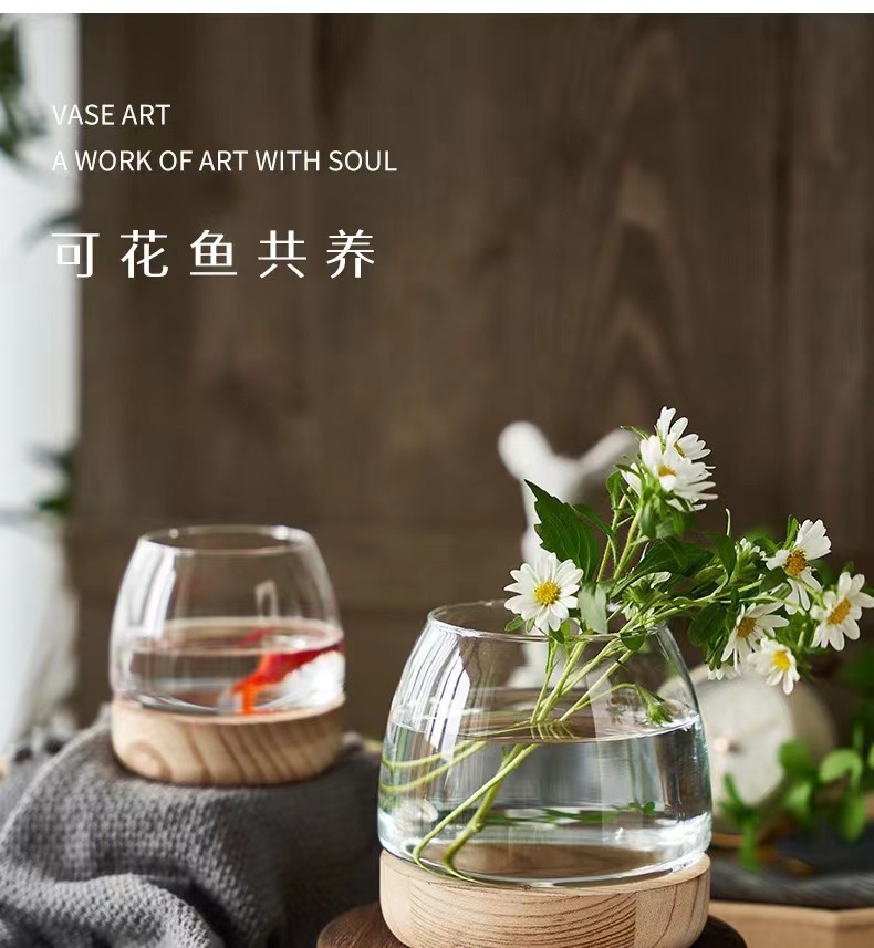 일본식 꽃병 투명 유리 꽃꽂이 장식품 수경재배 녹색 식물 동전풀 탁상 생태 어항 금붕어 어항