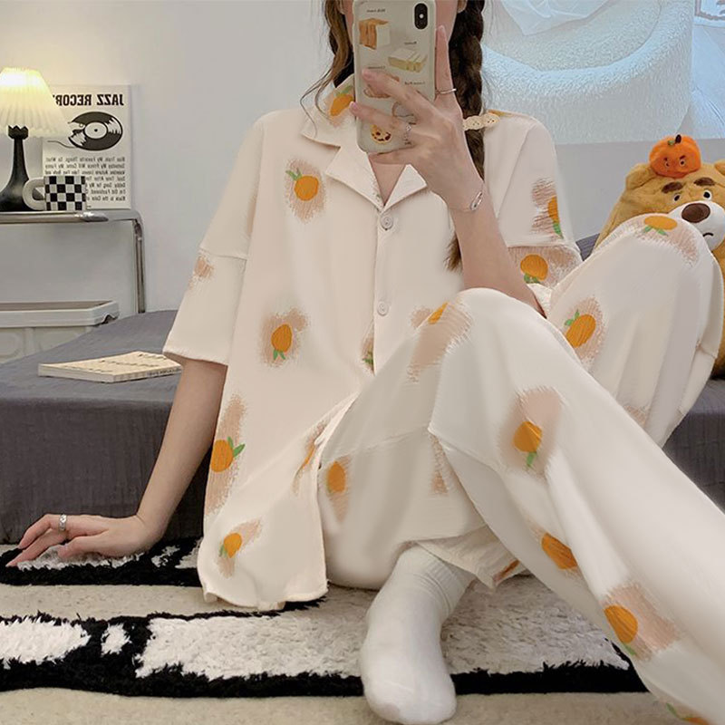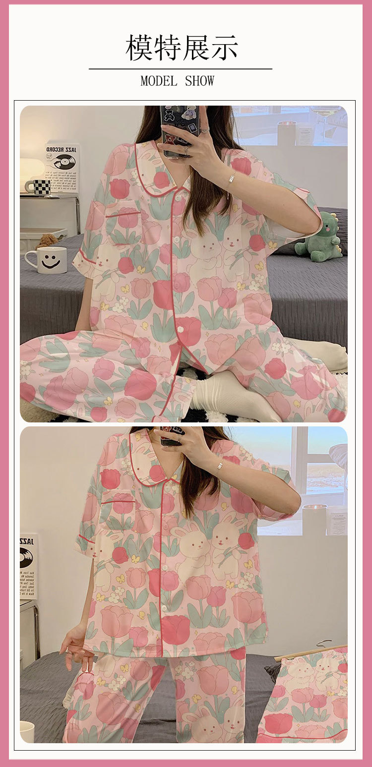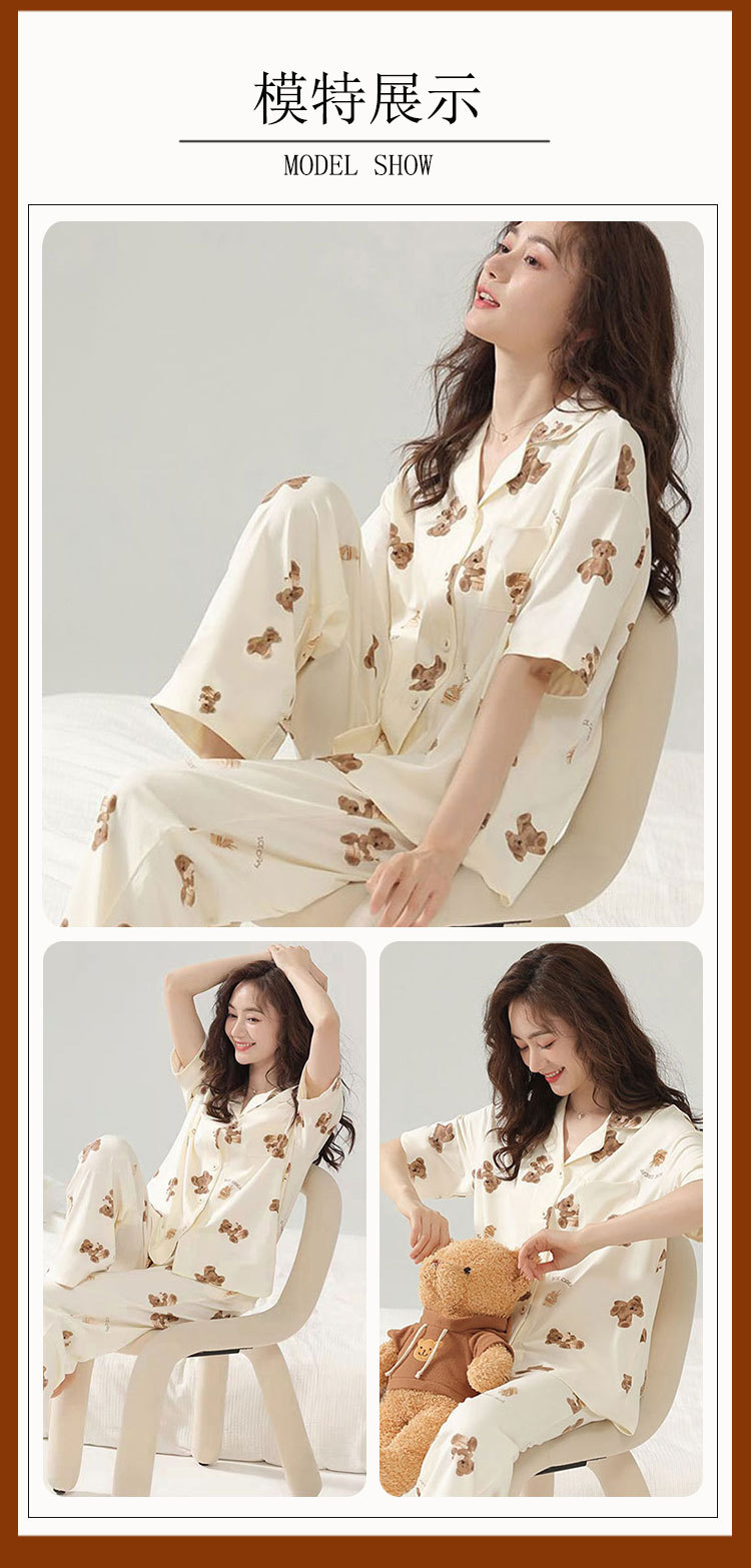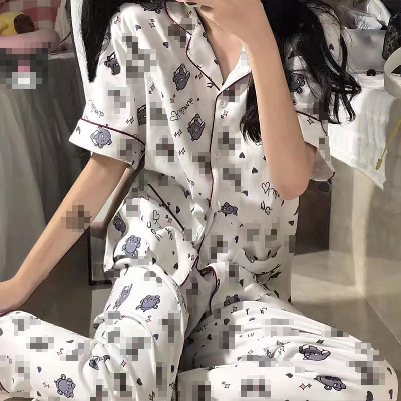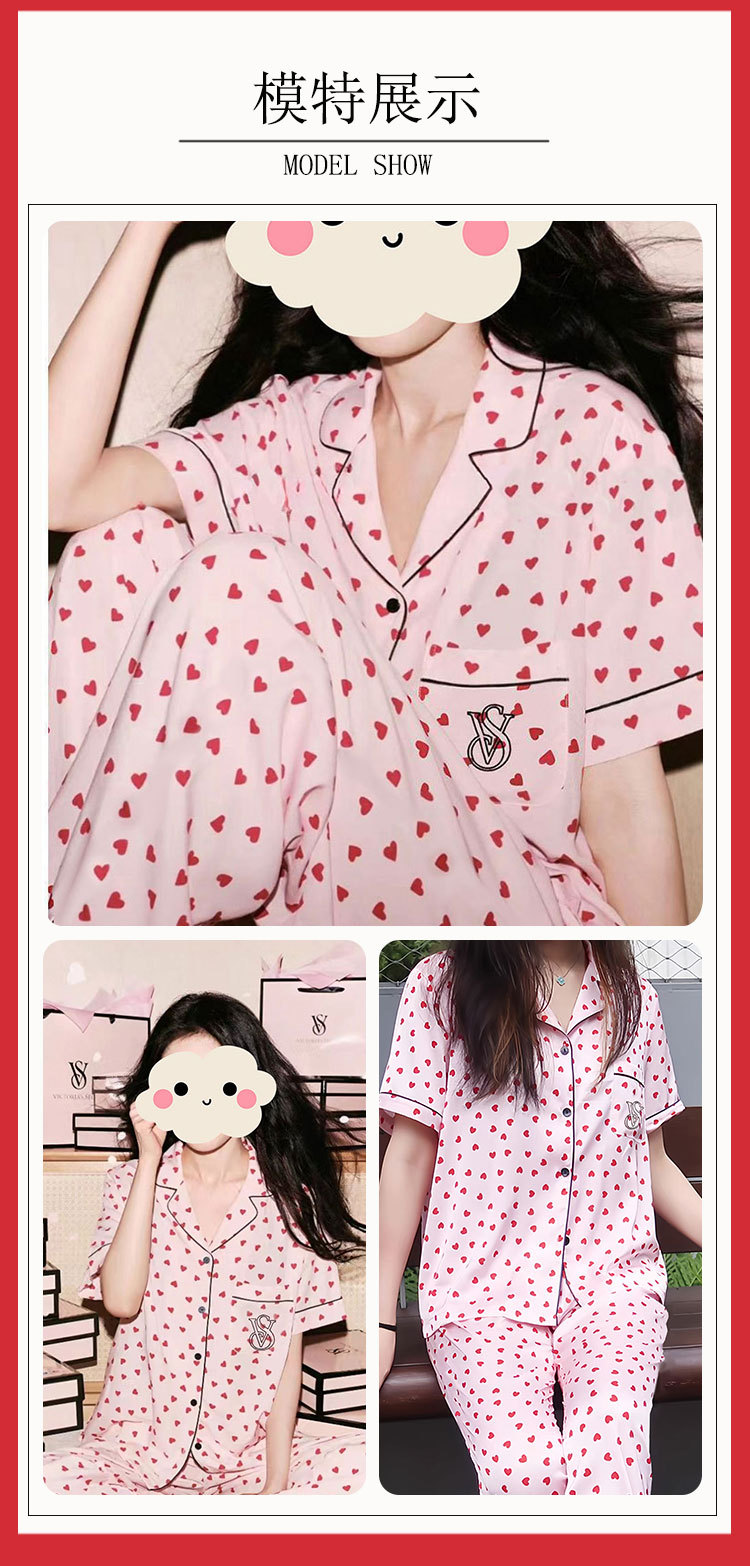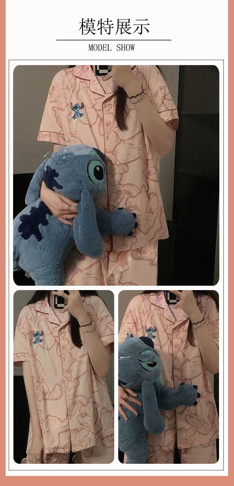 새로운 여성용 수출 잠옷, 달콤하고 귀여운 스타일의 핑크 물방울 무늬 가디건, 면 반팔 긴바지 홈웨어 세트스토어 가기